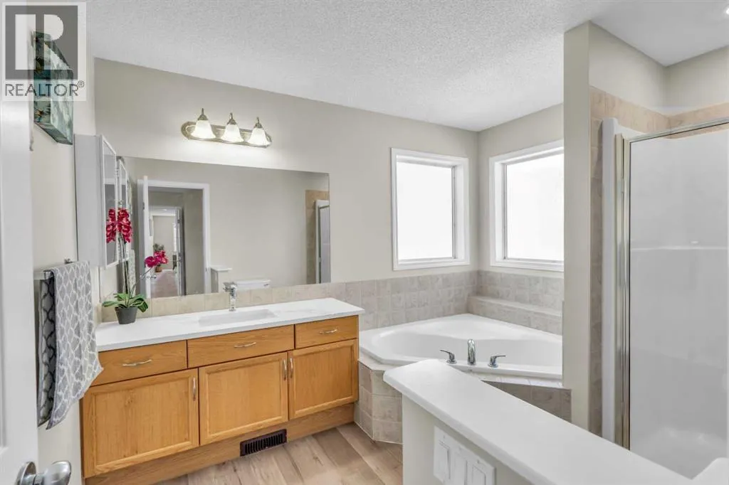 Enjoy the peace and simplicity of a frontage with no intervening public sidewalk space, no hassle of early morning snow shovelling duties, just you and a warm cup of coffee. This serene lifestyle can be yours in the heart of Bridlewood, offering over 2,589 sq ft of thoughtfully designed living space across two levels plus a fully finished basement. Bathed in natural light thanks to its southwest-facing backyard, the home feels bright and uplifting from sunrise to the golden hour. Inside, you will discover brand new luxury vinyl plank flooring, fresh soft, neutral paint, quartz countertops throughout, updated fixtures, and two NEW double glazed Low-E bonus room windows (June 2025) for enhanced comfort and efficiency. The heart of the home is the spacious kitchen, rich in cabinetry, stylishly updated, and ideal for both everyday cooking and hosting family dinners. Sunlight pours in through large windows and patio doors, opening to your sun soaked backyard retreat, the ideal haven for summer evenings, weekend barbecues, and moments of quiet relaxation. Designed with families in mind, this home offers three separate living/family rooms, ensuring everyone has space to unwind, connect, and play. Upstairs, three generous bedrooms include a bright and welcoming primary suite with a 4 pc ensuite. The large bonus room is perfect for movie nights, a cozy reading nook, or a vibrant play space and the upper level laundry adds everyday convenience. The fully developed basement extends your lifestyle options with a fourth bedroom, full bathroom, and a spacious recreation/games room, perfect spot for game tournaments, teenagersâ hangouts, or hosting overnight guests. Exterior enhancements such as beautiful stonework and an extended driveway elevate both curb appeal and functionality offering additional parking and a warm, inviting first impression. The location couldnât be better: just steps from Bridlewood Elementary and Glenmore Christian Academy, minutes to Monsignor JJ OâBrien. Professional services, shopping and dining options are abundant. Endless parks and pathways of Fish Creek Park and nearby Spruce Meadows offer activities for young and old. Quick access to the C-Train, Stoney Trail, and MacLeod Trail make daily commuting and weekend outings effortless. Set within a serene, close-knit community where neighbours become friends, this home offers the perfect setting to build your life, raise your children, and welcome guests with pride. (id:27476)