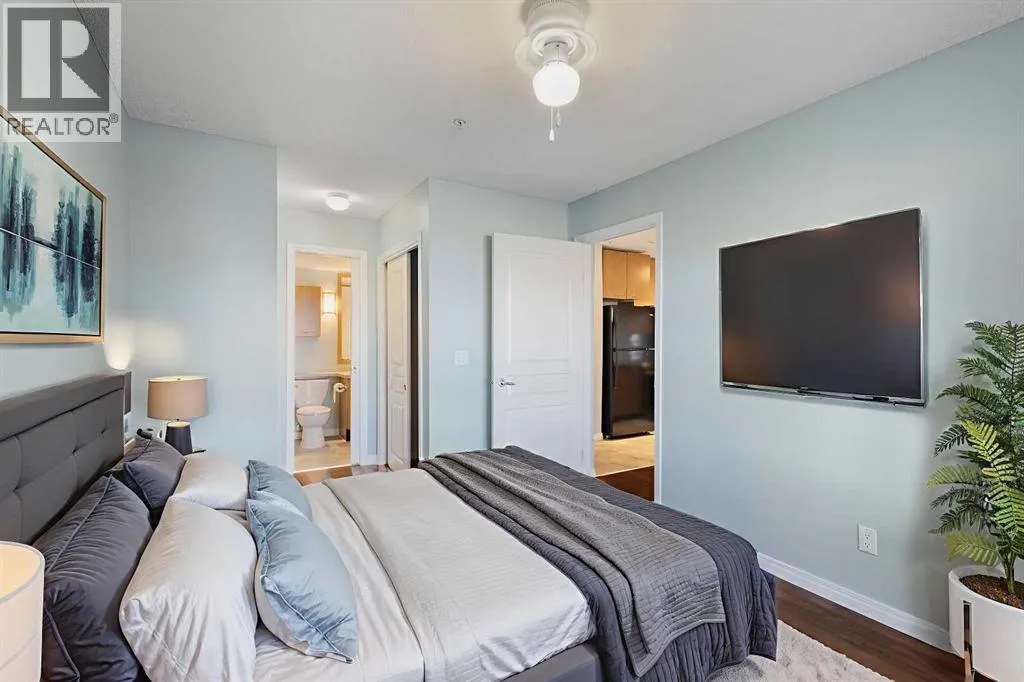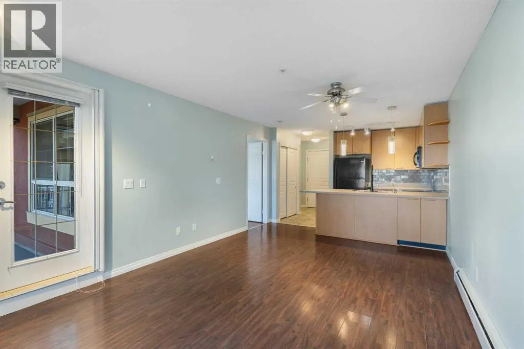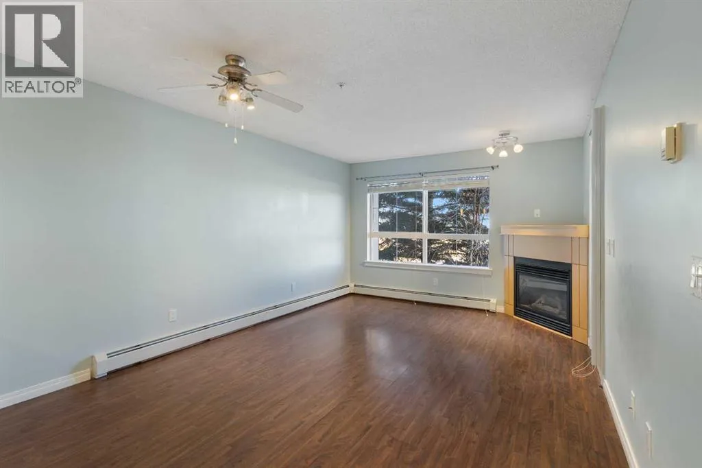 Seize the opportunity to own this sunny, comfortable 2nd-floor, 1-bedroom condo in the highly sought-after Trafalgar House development in Lincoln Park. Its prime location, within easy walking distance to Mount Royal University, makes it an excellent choice for immediate occupancy or a solid rental property. The unit boasts a welcoming open floor plan, maximizing space and light. Natural light streams in through the east-facing living room windows, highlighting the inviting corner gas fireplace, which adds warmth and ambiance. The functional kitchen is designed for efficiency, featuring abundant cabinet storage and generous counter space, perfect for utilizing the convenient breakfast bar. Enjoy a spacious retreat in the bedroom, which offers a dual-access walk-through closet leading directly into the 4-piece ensuite bath. Practicality is enhanced with a dedicated, good-sized laundry/storage room and the security of titled underground parking. Building residents enjoy exclusive access to an on-site fitness facility, a party room with a pool table, a courtyard, and the convenience of an underground car wash. Near major bus routes and quick access to downtown, this is a must-see! (id:27476)