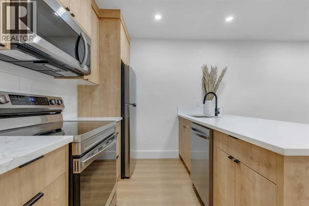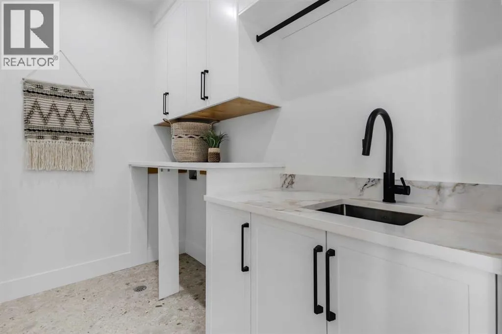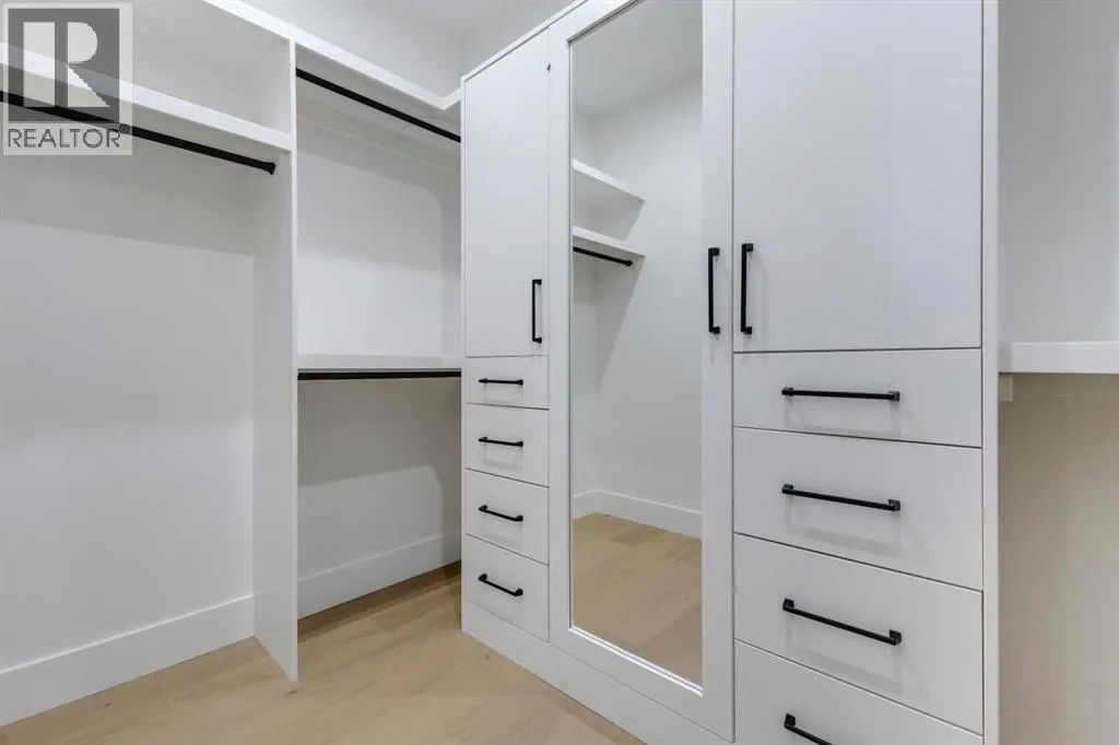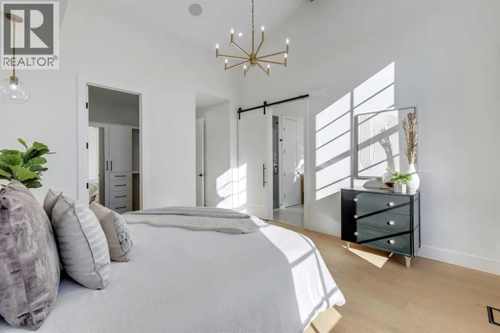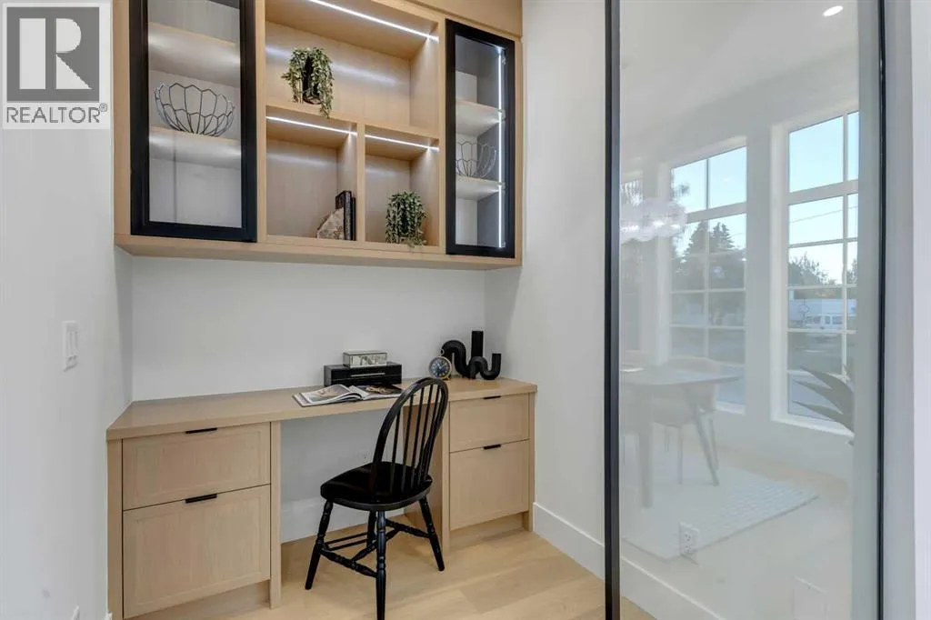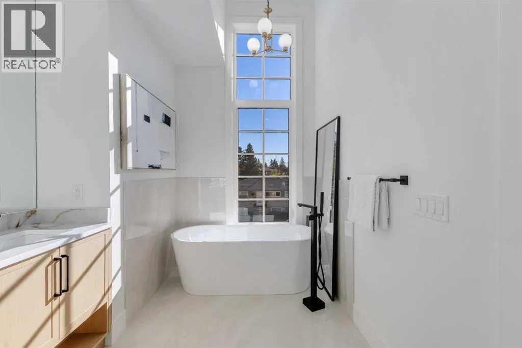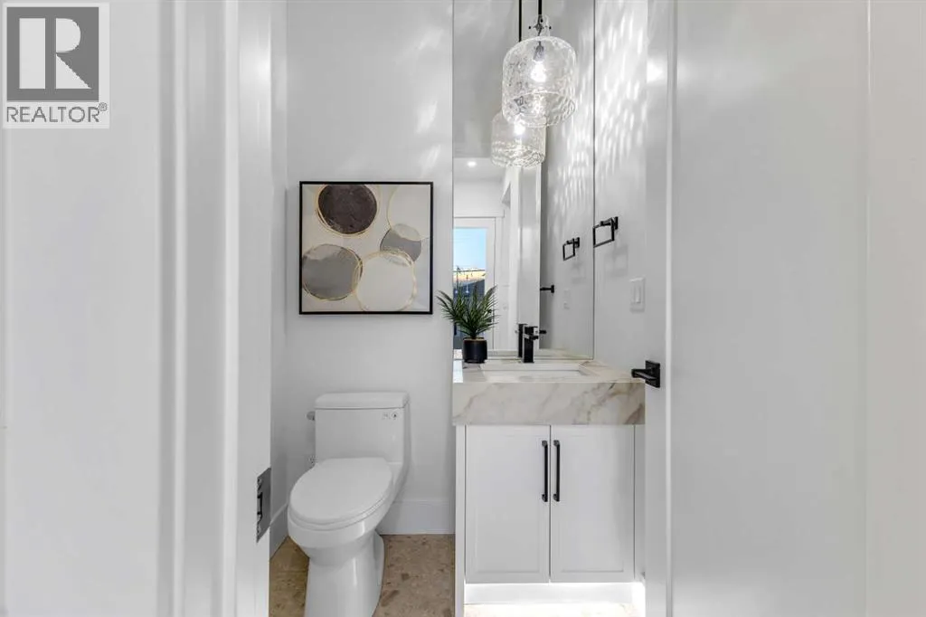 Donât miss this stunning modern infill in the heart of ROSSCARROCK, designed with HIGH-END FINISHES, a WALKTHROUGH BUTLERâS PANTRY, and a RARE 3-BED, 2-BATH LEGAL LOWER SUITE (approved by the city). With a functional open-concept layout, upscale details, and a prime inner-city location, this home delivers a perfect blend of style and practicality. The spacious foyer welcomes you inside with direct access to the formal dining area, bathed in natural light from oversized windows, making it an ideal space for hosting gatherings or enjoying everyday meals. A walkthrough butlerâs pantry seamlessly connects the dining room to the chefâs kitchen, offering custom cabinetry, a beverage fridge, a sink, and additional storageâperfect for entertaining and meal prep. The kitchen itself is a showstopper, featuring ceiling-height cabinetry, quartz counters, a full-height backsplash, and a large central island with bar seating. A stainless-steel appliance package includes a French door fridge, gas cooktop, wall oven, microwave, and dishwasher, ensuring both function and style. More storage is offered by the eye-catching coffee station or wine area, enhanced with LED lighting and glass displays. A main floor home office off the kitchen adds even more convenience for a work-from-home set up. The bright and open living room is designed for comfort and elegance, featuring an inset gas fireplace with a full-height tile surround with built-in cabinetry, and sliding patio doors taking you out to the rear deck. The rear mudroom helps keep daily essentials organized, and an upscale powder room completes the main level. Upstairs, the primary suite is a true retreat with vaulted ceilings, expansive windows, and a spacious walk-in closet. The spa-like 5-pc ensuite is designed for relaxation, featuring heated tile floors, dual sinks, a freestanding soaker tub, and a walk-in shower with full-height tile surround. Two additional secondary bedrooms share a well-appointed 4-pc bath, while a nook on the landing provides the perfect study space and a full laundry room with extra storage ensures everyday convenience. The legal lower suite (approved by the city) is a standout feature, offering a private side entrance and modern finishes as the rest of the home. With 9-ft ceilings, engineered hardwood floors, 2 FULL BATHS AND 3 FULL BEDS, this suite is ideal for tenants, extended family, or additional living space! The 4-pc baths feature tub/shower combos with full-height tile surrounds. The open-concept kitchen and living area include quartz counters, custom cabinetry, a full-size fridge, electric range, and separate laundry. Rosscarrock is a vibrant inner-city neighborhood, offering quick access to downtown via Bow Trail, transit options like Westbrook C-Train Station, and fantastic shopping & dining on 17th Ave! Outdoor lovers will appreciate Edworthy Park, Douglas Fir Trail, and Shaganappi Point Golf Course, plus top-rated schools just minutes away! *Photos from show suite. (id:27476)