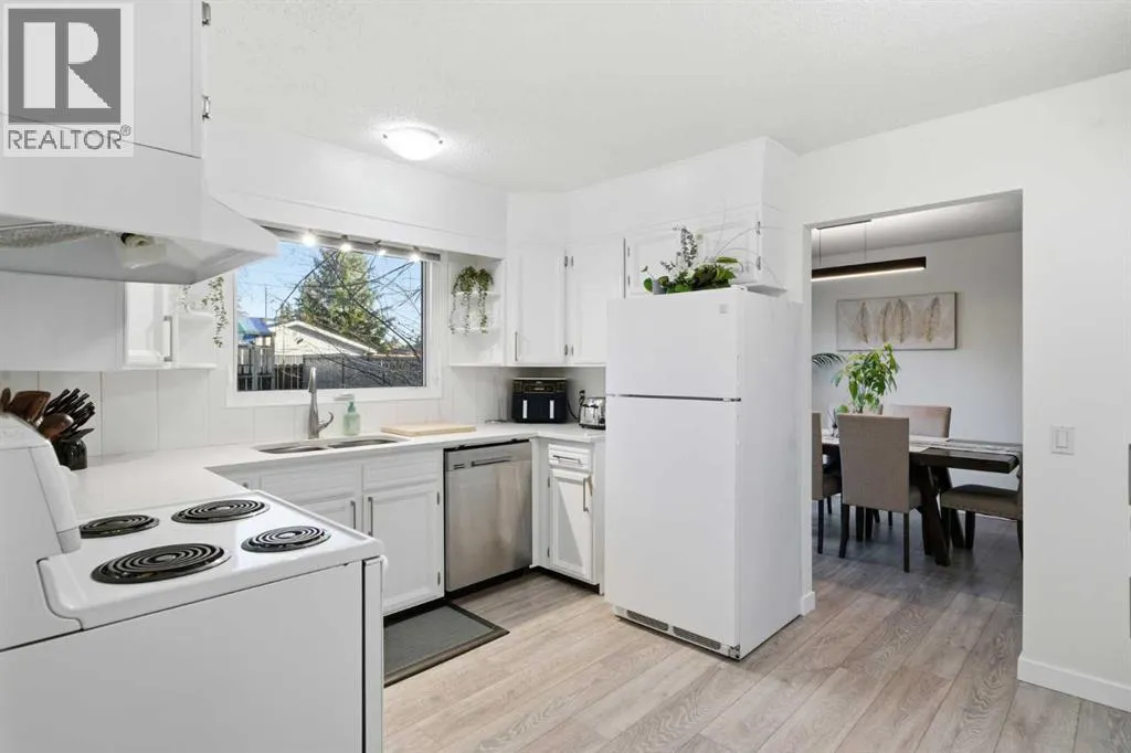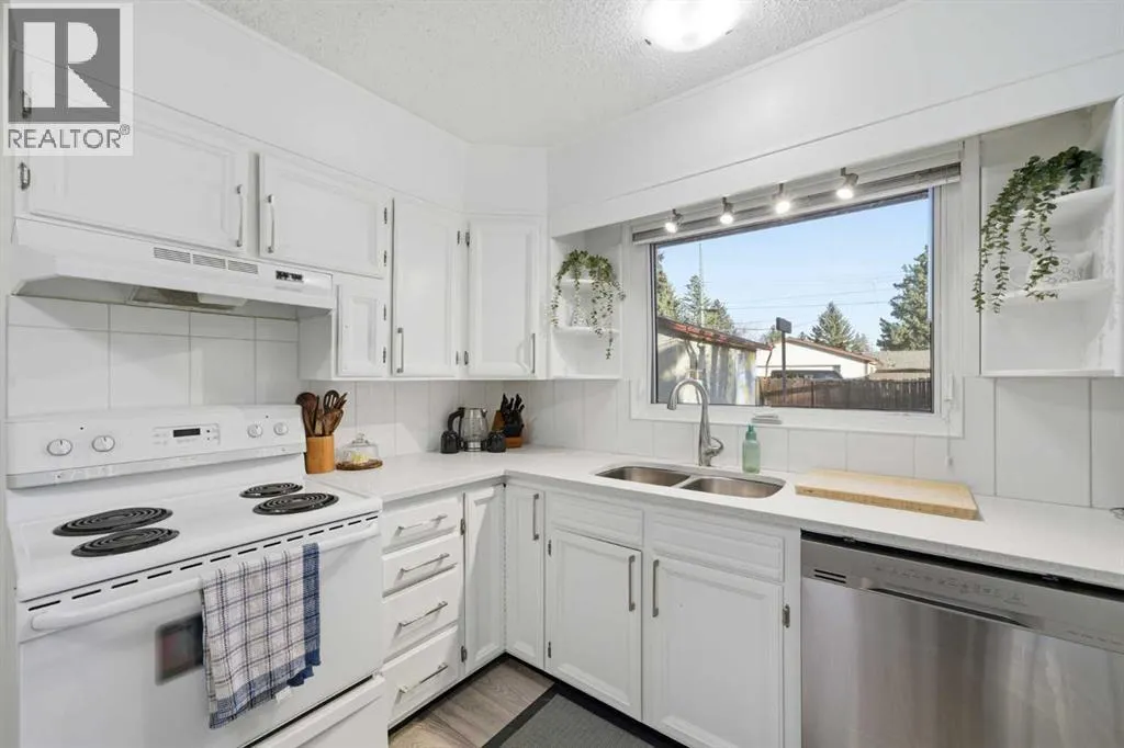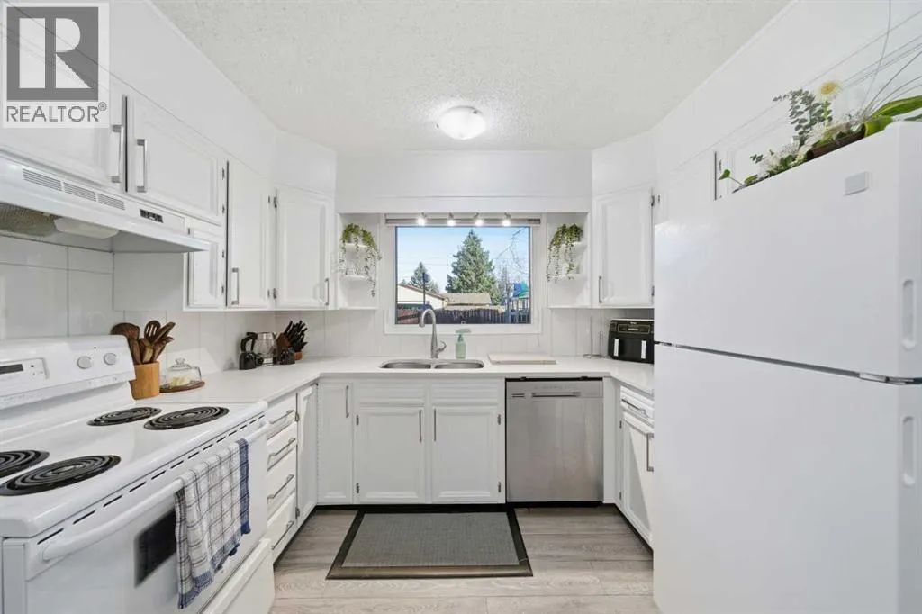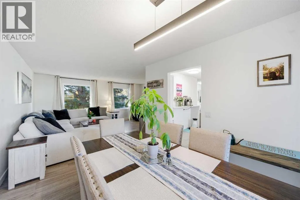 This beautifully updated bi-level home is tucked away on a quiet, family-friendly street in desirable Bonavista Downs. Thoughtfully refreshed throughout, it features modern neutral paint tones and a bright, welcoming atmosphere from the moment you walk in. The upper level boasts excellent flow between the spacious living room, updated kitchen, and large formal dining areaâideal for both day-to-day living and entertaining guests. The kitchen is finished with quartz countertops, ample cabinetry, and a layout that makes cooking and hosting a breeze. The upper floor also offers two generously sized bedrooms, each with large closets, along with a 4-piece bathroom thatâs bright, modern, and stylish. Thanks to the bi-level design, the lower level enjoys large windows and an abundance of natural light, creating a warm and inviting space throughout. Here youâll find a second comfortable family room/rec area, three additional full-size bedrooms, and a brand-new washer and dryer for added convenience. Significant updates add to the value and peace of mind, including a brand-new roof and newer windows throughout the entire home. Outside, enjoy an expansive backyard with a large deck thatâs perfect for summer BBQs and outdoor entertaining, easily accessed via the modern sliding doors. Thereâs also a generous front parking pad that accommodates two vehicles and a double detached garage with alley access at the rear. Offering space, style, and functionality in a quiet, well-established community, this move-in ready home is a rare find in Bonavista Downs. (id:27476)