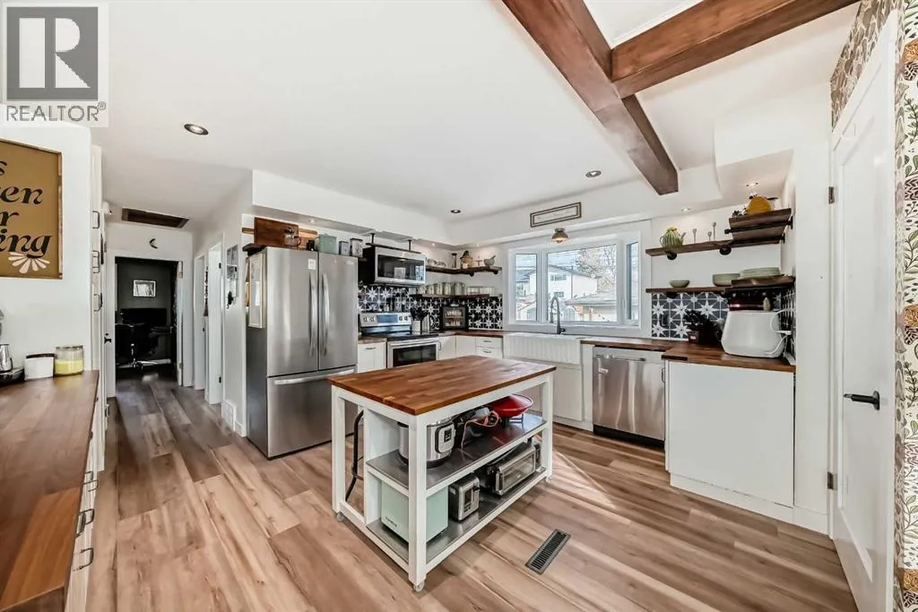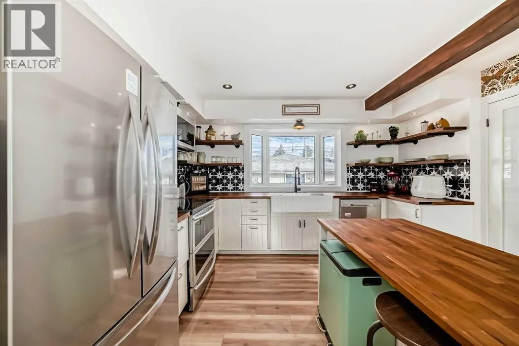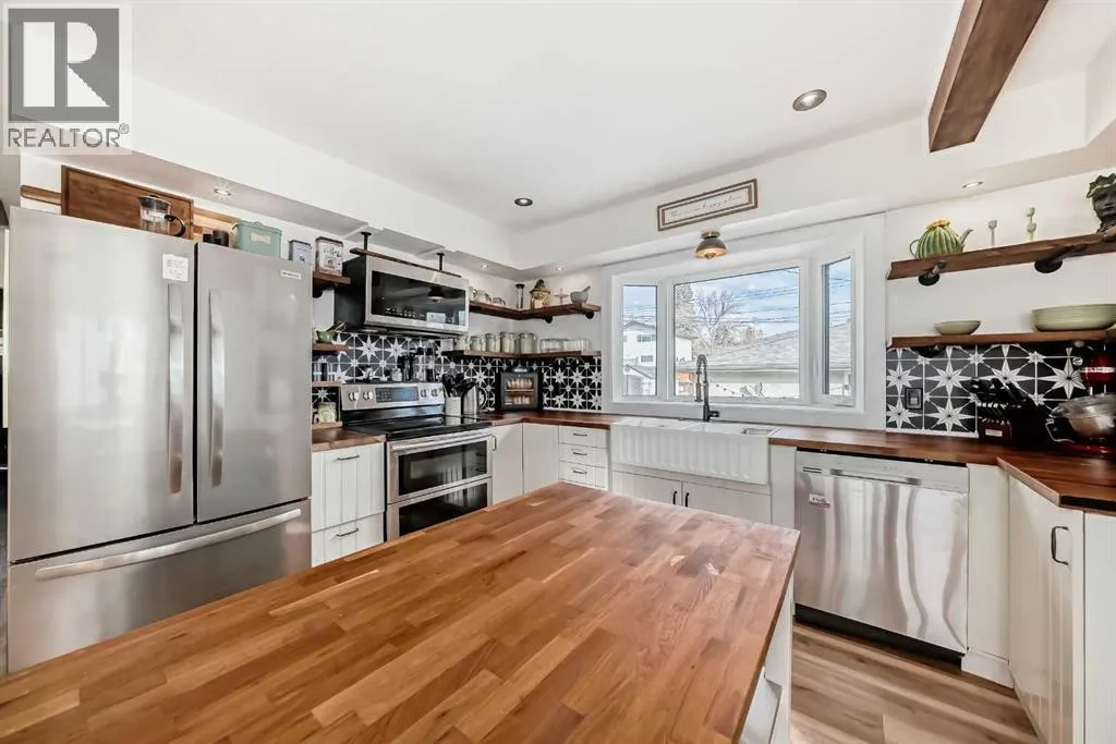 This loved family home has been owned by two generations and is being offered for sale for the first time in 49 years. It sits in a quiet cul-de-sac with a peaceful park right out front. This updated Mayland Heights bungalow is minutes from downtown and has nearly $175K in recent work. New luxury vinyl plank runs throughout the entire house. The main floor offers a dedicated dining area and a redesigned kitchen with stainless appliances, a movable island, a breakfast bar, and a mix of cabinetry and open shelving.There are three thoughtful main floor bedrooms, including a front room with a built-in Murphy bed that folds into a desk, and a second bedroom with a custom live-edge built-in desk. The main bath is fully renovated with heated floors and a laundry chute.The renovated lower level lives like its own suite. It features a large family room with bar, a half bath, laundry with built-in storage, and an oversized bedroom with the original gas stove converted to electric as a feature, a walk-in closet, and a private ensuite with custom tile. Plus extra under-stairs storage. Outside, the east-facing backyard includes a poured concrete patio, garden beds, greenhouse, shed, and fire pit, mature apple tree and raspberries. Big-ticket upgrades include new triple-pane windows (2025), new washer and dryer (2025), high-efficiency furnace (2024), newer hot water tank and softener (2020), updated electrical with hard-wired smoke alarms (2023â2024), new insulation and air sealing (2025), custom motorized blinds (2024), and participation in the Canada Greener Homes program with pre- and post-work ECO inspections. Move-in ready, energy-efficient, flexible layout, inner-city location. (id:27476)