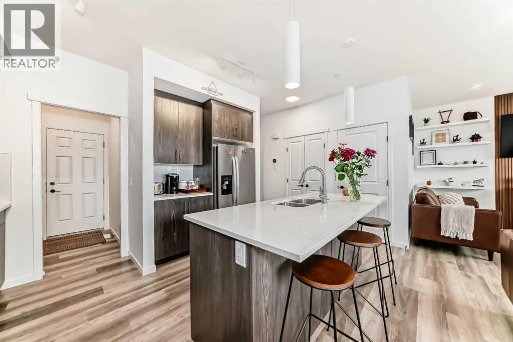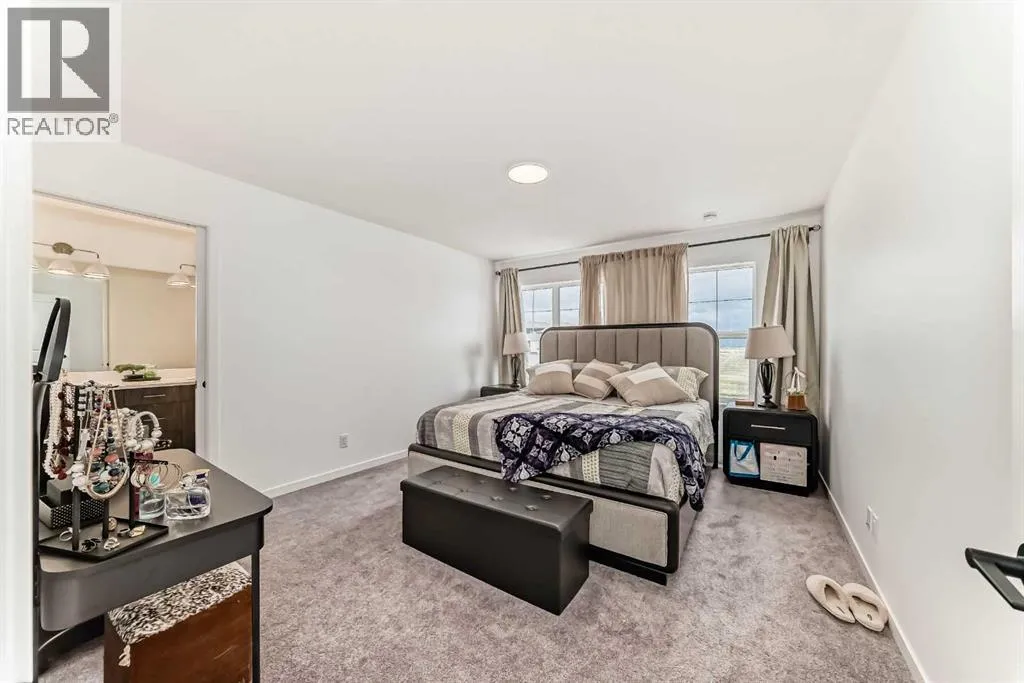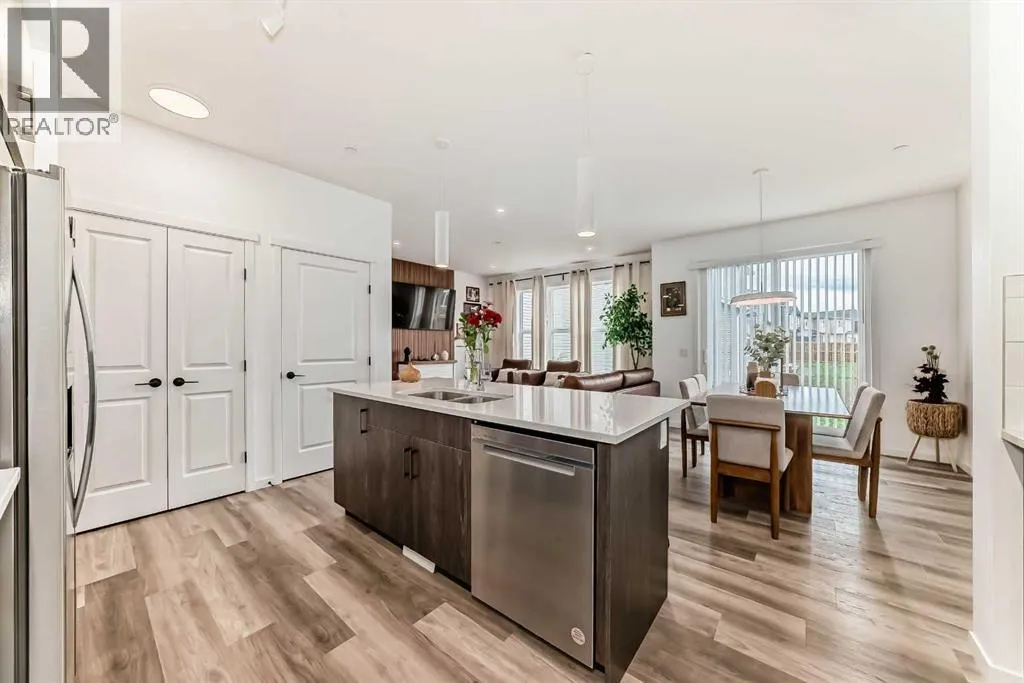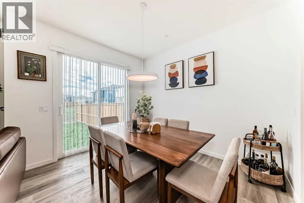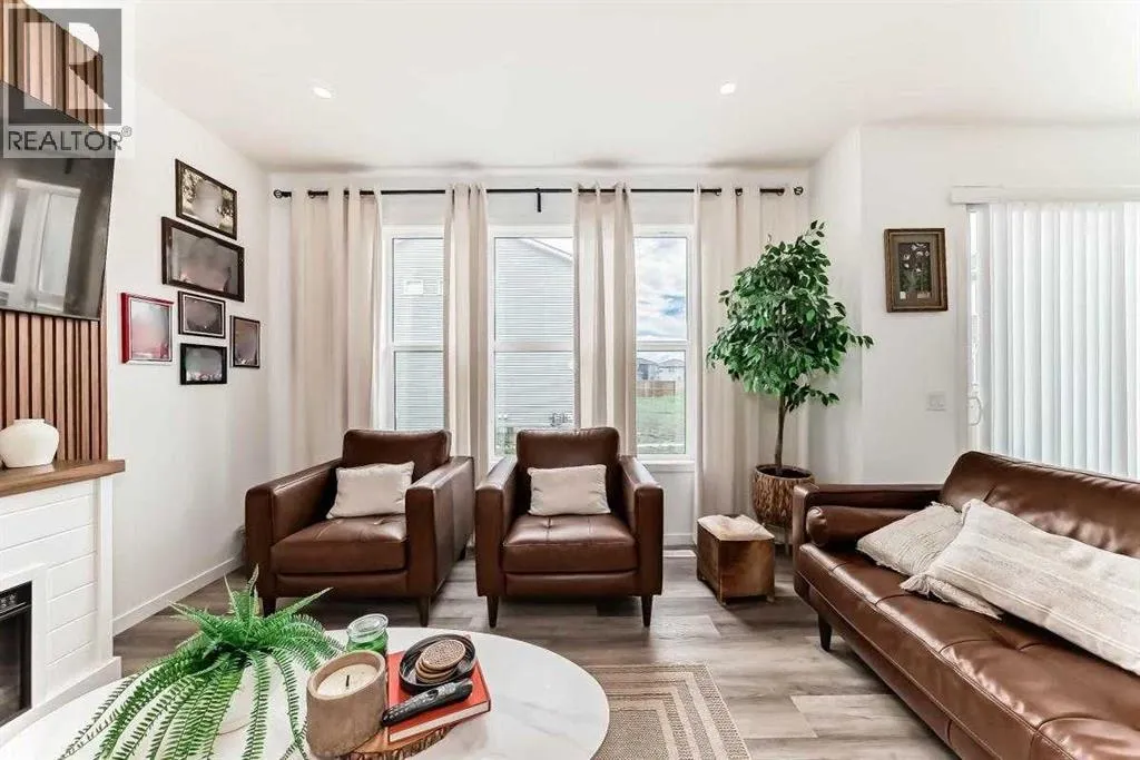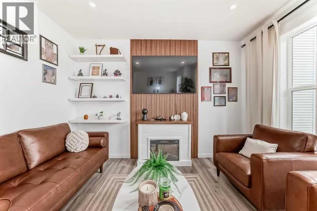 Welcome to this stunning nearly-new two-storey home that perfectly blends modern design, comfort, and functionality. Offering just under 1,700 sq. ft. of thoughtfully planned living space, this beautifully crafted residence is still protected by a comprehensive new home warranty, ensuring peace of mind for years to come. The main floor impresses with 9-foot ceilings and durable luxury vinyl plank flooring, setting the stage for a bright and inviting open-concept layout. A dedicated pocket office provides the ideal workspace for remote professionals or students. The gourmet kitchen is a true showpiece, featuring full-height cabinetry, premium stainless steel appliances, a gas range, and a chimney-style hood fanâcombining everyday practicality with upscale style. Adjacent to the kitchen, the living room offers a cozy retreat highlighted by a stylish accent wall and a portable fireplace, creating the perfect space for relaxing or entertaining. Upstairs, youâll find three well-appointed bedrooms, including a spacious primary suite with a private ensuite bathroom. A versatile bonus room adds extra living or play space, while a conveniently located laundry area enhances everyday functionality. The basement offers exceptional potential with a separate side entrance and a rough-in for a future bathroomâideal for future development or a legal secondary suite (subject to city approval). Located just minutes from East Hills Shopping Centre and offering quick access to Stoney Trail, this home delivers the best of suburban tranquility and urban convenience. A must-see for discerning buyersâschedule your private showing today! (id:27476)