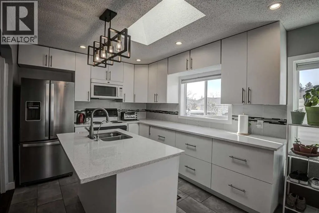 A newly renovated home! Move-in condition! Come & see this beautiful 4-bedrooms bilevel with a huge detached garage! Well-kept and owner occupied home! Greeted by a bright foyer , this home will give you an immediate feeling of comfort and contentment. The bright, spacious and open layout living room, dining room and the kitchen makes this house stand out! The open layout brings the rooms together for easy family communications and entertaining. Kitchen has a quartz island sink, stainless steel appliances and lots of cupboards for organizing & storage. Two spacious bedrooms, full bath and washer/dryer at the main level. From the kitchen, there is a patio door going to a covered deck then leading to a huge 24' x 24' detached garage. The lower level is fully developed with a living room, two good sized bedrooms, full bath, kitchenette, refrigerator, washer & dryer. Perfect for visitors, students. teenagers , in-laws, extended family, home office or whatever plan in place. Roof shingles had been installed October, 2024: Air Conditioner and Furnace in 2023. . This home is perfectly located close to schools, shopping and very easy access to Glenmore Trail & Deerfoot Trail. (id:27476)