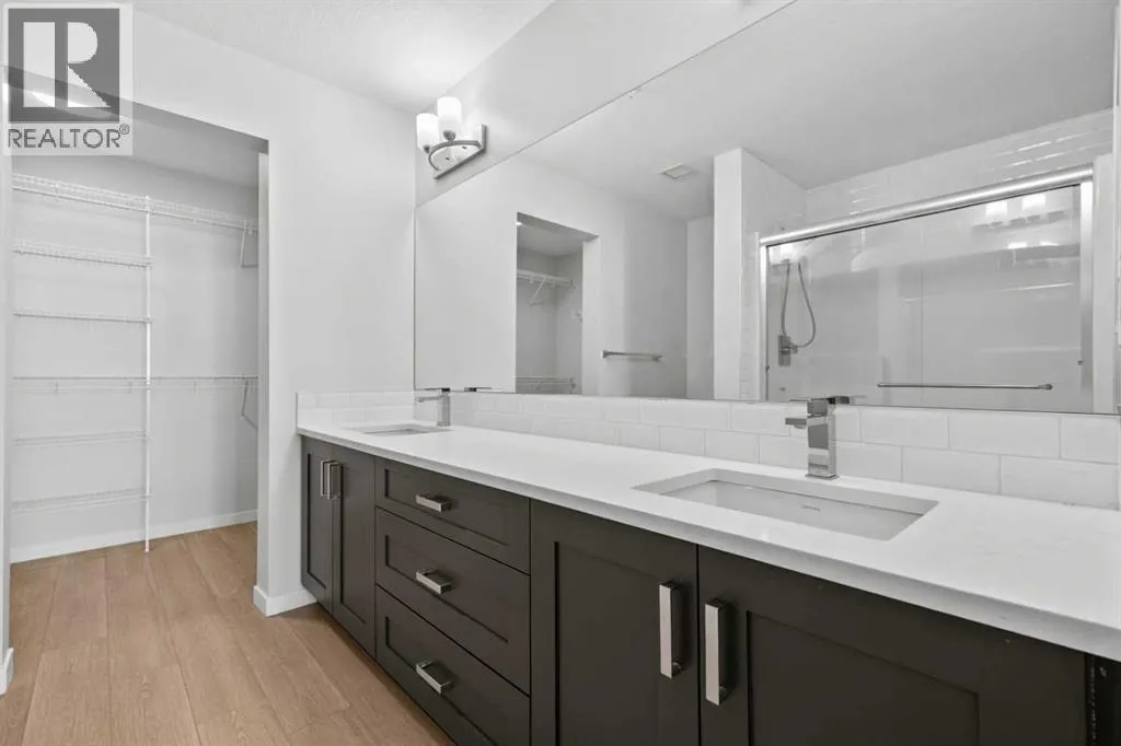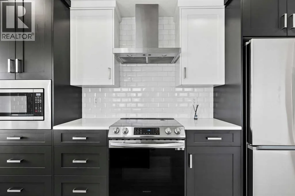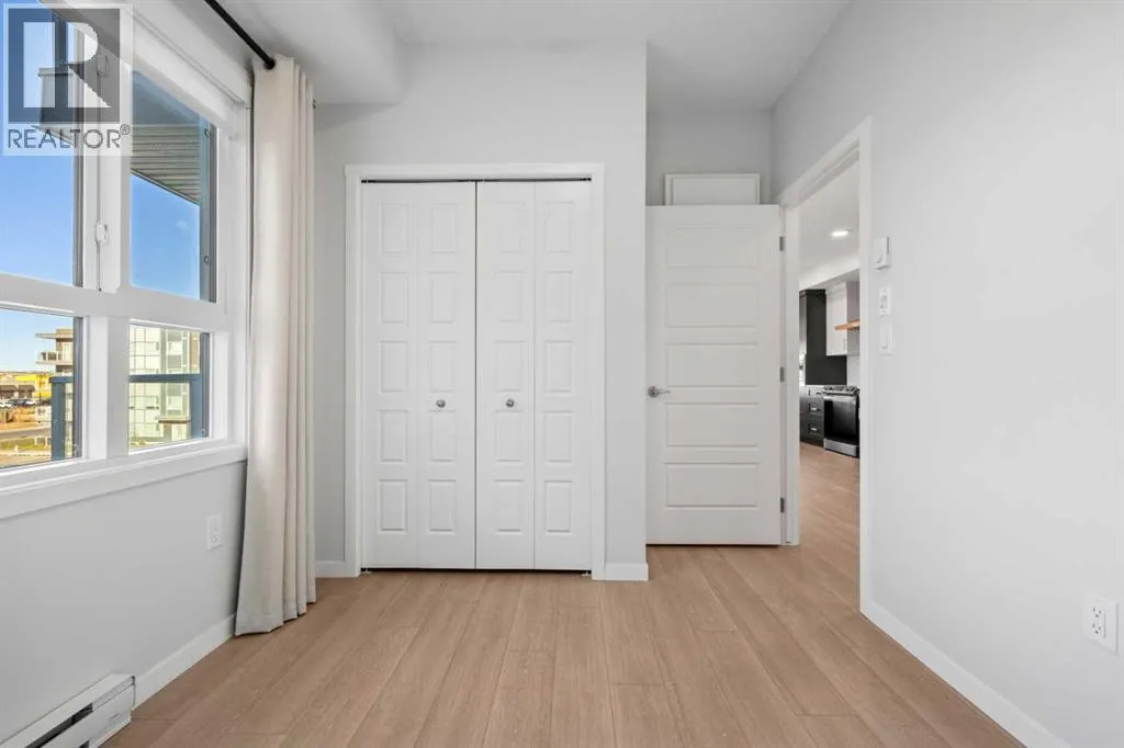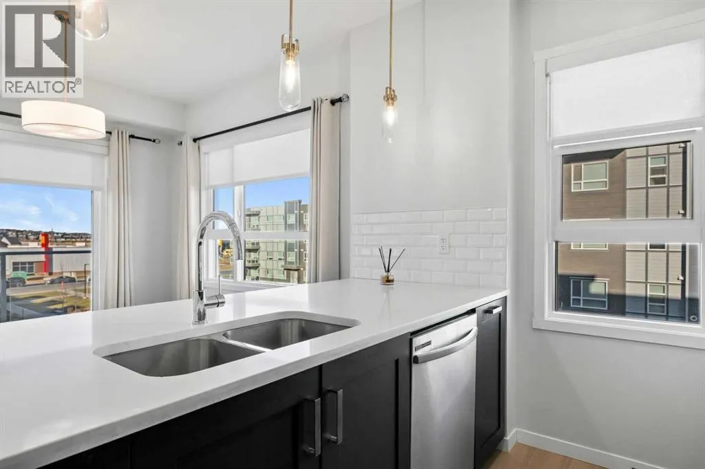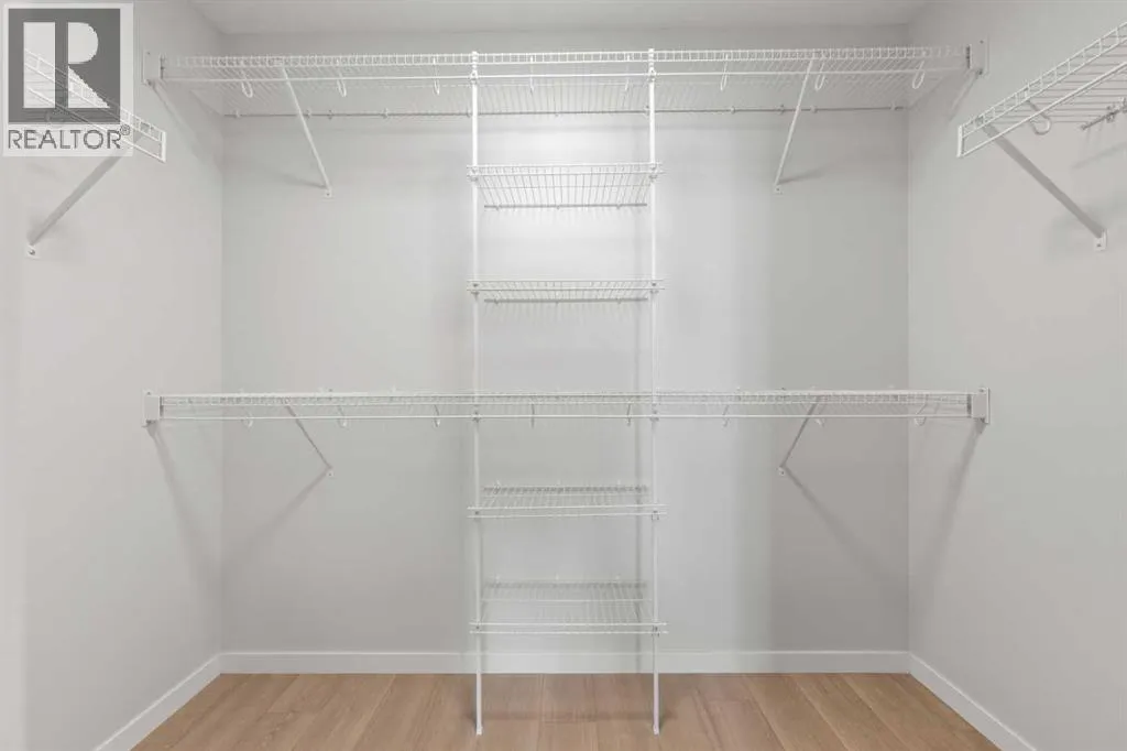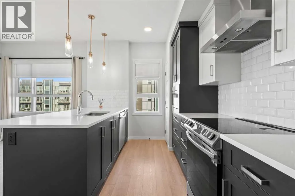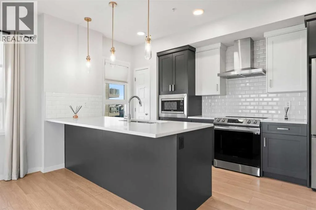 You will feel right at home in this newer condo built by Cedarglen Living Inc. Offering 965.24 sq.ft. RMS (1,043 sq.ft. builder size), this 2 bed, 2 bath unit features an open-concept layout that blends style and functionality with ease. From the moment you step inside, youâll notice the 9 ft ceilings, luxury vinyl plank flooring throughout (NO CARPET), and Low E triple pane windows that enhance comfort and energy efficiency. The expansive kitchen is beautifully appointed with full-height cabinetry, quartz countertops, upgraded pull-out recycling centre, upgraded bank of pot and pan drawers, white subway tile backsplash, corner pantry, and stainless steel appliances: including an upgraded slide-in electric range, chimney hood fan, and built-in microwave. The island with seating overlooks the spacious living room, creating an inviting space for entertaining or cozy movie nights. The two bedrooms are thoughtfully positioned on opposite sides of the home for maximum privacy. The primary suite features its own full ensuite, while the second bedroom has easy access to the main bathroom perfect for guests, roommates, or a home office setup. Air conditioning is included, ensuring comfort year round. A generous laundry and storage room adds everyday convenience. The home also includes one 1 titled underground parking stall and 2x side by side storage lockers, providing ample space for your belongings. Enjoy evenings on the WEST facing balcony, complete with a BBQ gas line. This pet friendly complex is ideally located across from a beautiful park and green space, with a variety of nearby amenities just steps away. (id:27476)