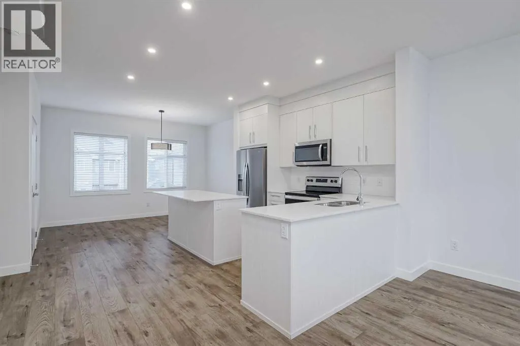 OPEN HOUSE - Nov 15 - (1:00-3:00pm)Luxurious End-Unit Townhome in Desirable Carrington: A Masterpiece of Modern LivingStep into your dream space with this remarkable end-unit townhome, situated in Carrington, one of Calgary's most sought-after and top-selling communities. This property seamlessly blends luxurious living with state-of-the-art design and unparalleled comfort. Mountain Views & Downtown Calgary views!Sophisticated Interior & Design Spanning 1,664 square feet, this home is designed for contemporary family life, featuring four bedrooms (three beautifully appointed on the upper floor) and two-and-a-half sophisticated bathrooms, including a generously proportioned ensuite.Open Concept Living: The home boasts a sleek, fully equipped kitchen ideal for gastronomic ventures, which flows into a spacious open-plan living and dining areaâperfect for hosting gatherings or unwinding.Natural Light: A multitude of expansive windows flood the space with natural light, creating a warm and welcoming ambiance you'll be eager to return to.Outdoor Haven: The crown jewel of this home is the expansive balcony, an ideal spot for morning coffees, sunset dinners, or simply soaking in the sun.Unbeatable Location & ConvenienceThe location is a true showstopper, offering the perfect harmony between suburban tranquillity and city vibrancy:Accessibility: Perfectly positioned within a whisper of Stoney Trail, providing swift and seamless access to major transportation routes, placing you just 25 minutes from downtown Calgary.Amenities: Proximity to a range of shopping destinations, top-rated schools, and leisure facilities ensures your daily life is hassle-free.Storage & Parking: One of the standout features is the sizable double attached garage, providing secure parking and additional valuable storage space.This breathtaking property, with its cutting-edge design, lavish features, and prime location, is an undeniable standout. It's more than just a propertyâitâs t he home that launches your new journey and lifestyle.Don't let this opportunity slip away. Contact us today to schedule your private tour! (id:27476)