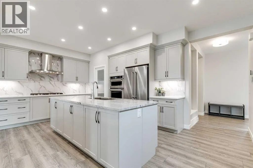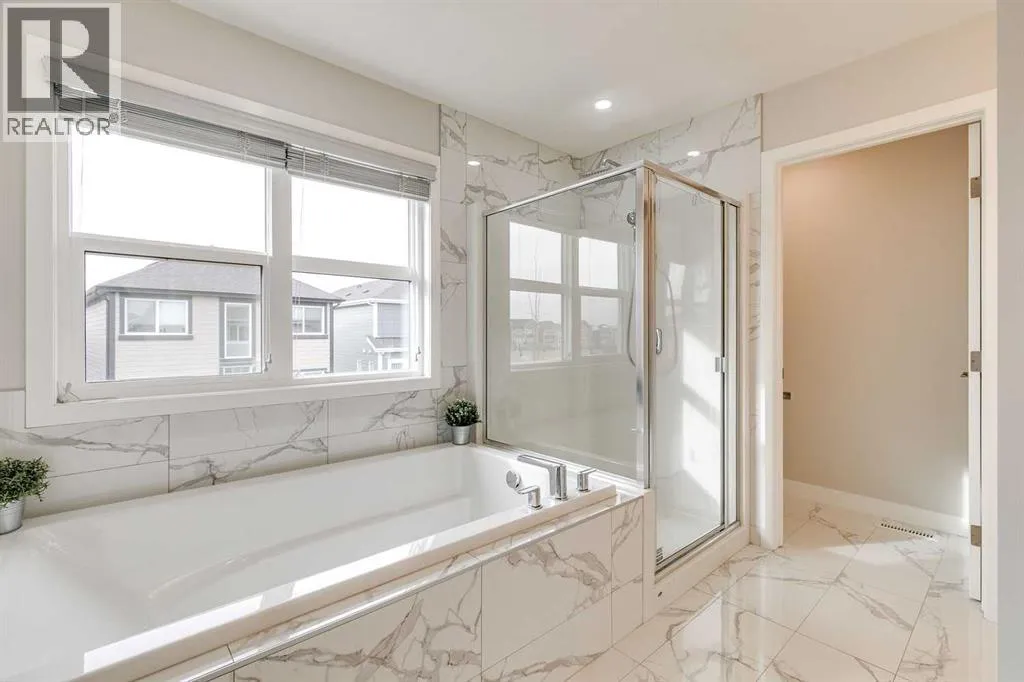 *** OPEN HOUSE SATURDAY NOVEMBER 15TH: 12:00PM - 2:00PM *** Welcome to The Lauren by Jayman, a Built Green⢠Gold Certified home where modern luxury meets the heart of lake living in Mahogany. Perfectly positioned on a beautifully landscaped lot, this thoughtfully designed two storey showcases luxury vinyl plank flooring, upgraded triple pane windows, and an open concept layout filled with natural light. The main level offers a spacious dining area, inviting living room with an electric fireplace, and a chef-inspired kitchen featuring granite countertops, a large island with breakfast bar, pantry, and KitchenAid appliances including a built-in oven, microwave, and gas stove. A stylish two piece bath, oversized entry closet, and direct access to the double attached garage with extra storage complete the main floor, and the garage also includes a 220 plug ideal for EV charging or workshop use. Upstairs, plush carpet leads to a generous primary suite complete with two walk-in closets and a luxurious five piece ensuite featuring dual vanities, marble tile, and a deep soaker tub. Two additional bedrooms, one with its own walk-in closet, a five-piece main bath, upper floor laundry, and a large bonus room create the perfect layout for family living. The south facing backyard is fully fenced and landscaped for privacy, complete with a full width 26' x 9' deck ideal for relaxing or entertaining. The basement features nine-foot ceilings, rough-ins for a wet bar and bathroom, and an upgraded 200 amp electrical panel offering ample power for future development or home projects. This energy-efficient home also includes a 1.5 kW six-panel solar system, a two stage air conditioning system, programmable color changeable lighting, full height bathroom mirrors, and durable, high performance construction throughout. Located just minutes from the Mahogany Beach Club, residents enjoy four-season recreation including swimming, kayaking, fishing, tennis, and skating, with easy access to local shops, restaurants, and schools. Experience the best of Calgary lake living at 57 Magnolia Heath SW, where quality, comfort, and community come together beautifully. Book your Showing today! (id:27476)