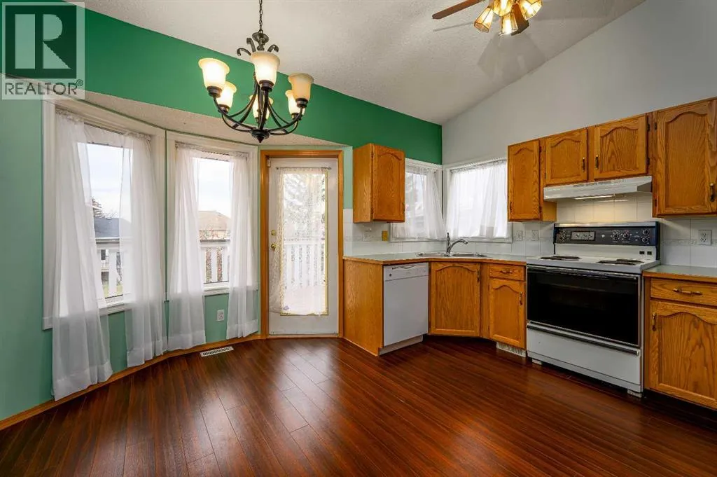 Opportunity knocks! This solid walkout bungalow with double attached garage in family friendly Citadel awaits a new owner that can make this home their very own. The open concept main floor plan features vaulted ceilings, large living room and dining room as well as a bright and sunny kitchen with breakfast nook. Just through the kitchen is access to your sunny south facing balcony. Originally designed as a three bedroom home, one of the main floor bedrooms has been temporarily converted into a main floor laundry room. This could easily be reconverted into a bedroom. The main floor is complete with a 3 piece main bathroom plus a large primary bedroom featuring a 4 piece ensuite bath. Downstairs you will find a large family room with gas fireplace and a supporting 3 piece bathroom. The remaining space is undeveloped and offers significant potential for added bedroom, theatre room etc. Contact your agent today to view! Quick possession available. (id:27476)