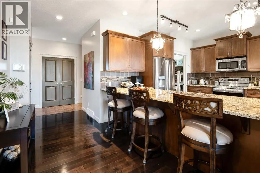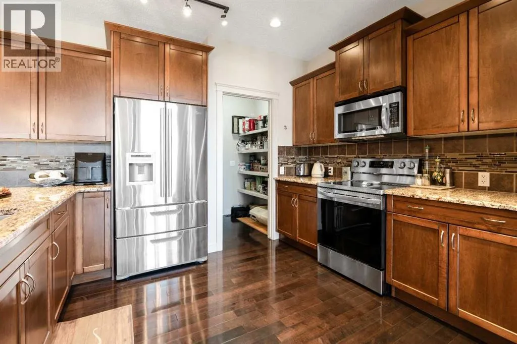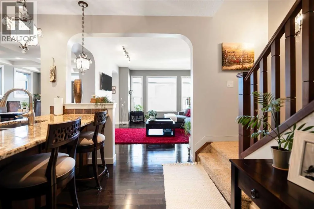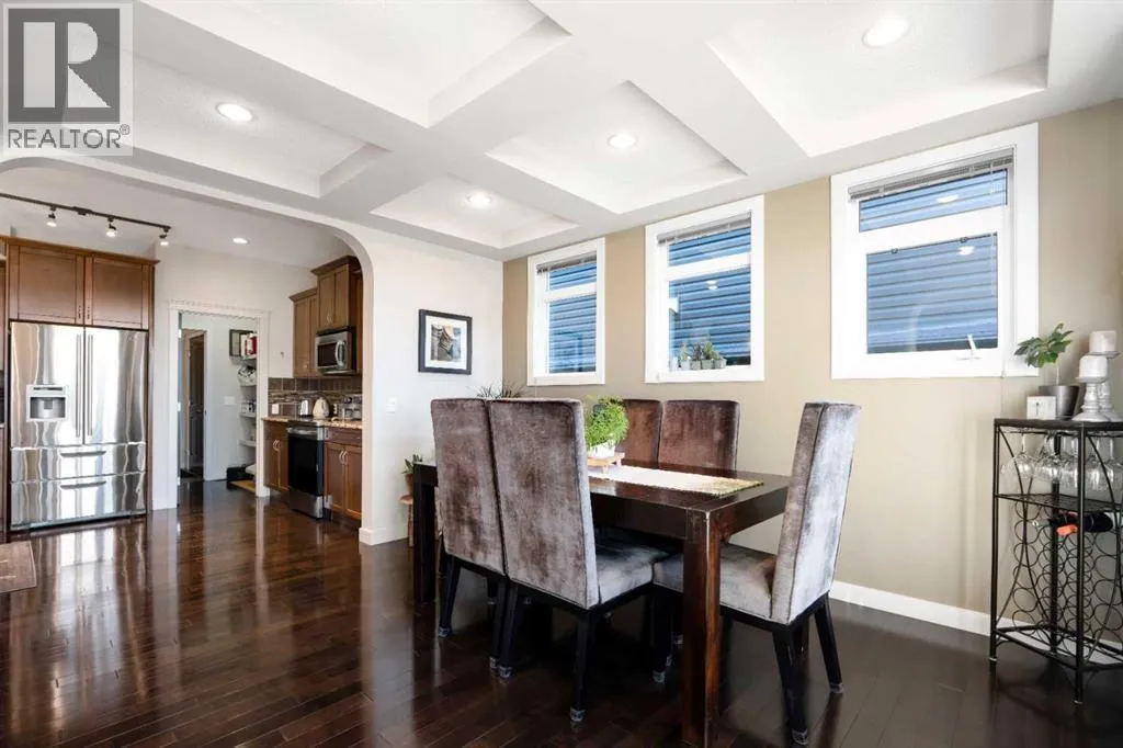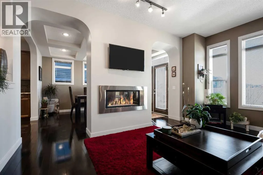 "OPEN HOUSE SUNDAY NOVEMBER 9TH 1-3PM" THIS HOME IS THE DEFINITION OF MOVE-IN READY WITH AN ELEVATED FINISH DESIGNED FOR THE MODERN FAMILY & STYLE SAVVY ENTERTAINERS! Welcome home to 2828 sq ft of developed living space, 4 beds, 3.5 baths of meticulously maintained perfection in beautiful Evanston. Step inside the spacious entry to find gleaming hardwood floors leading into a magnificent open-concept main floor. The massive chefâs kitchen is a culinary dream brilliantly illuminated & features stainless steel appliances, a garburator, and a huge pantry with a convenient bar fridge and hidden appliance counter. Eating bar allows for great conversation with your host, the elegant stools stay with the home. The kitchen flows seamlessly into the gorgeous dining room highlighted by a stunning coffered ceiling & anchored by a trendy two-way fireplace that casts a beautiful warm glow, perfect for adding intimate ambiance to your meal or fueling conversation in the adjacent cozy living space. Oversized windows bathe the entire space in natural light during the day. Upstairs, escape to your private retreat. The stunning primary bedroom offers views and features a spa-like 5-piece ensuite with a deep soaker tub and separate showerâyour ultimate hideaway from a hectic day. The upper level also features two generous secondary bedrooms, a 4pc shared bath, a convenient dedicated laundry room (washer/dryer included) and a large versatile bonus room ready for your family's needs. The professionally finished lower level (with all permits) boasts a massive rec room or a media room, a 4th bedroom & 4pc bath, ideal for guests or teens. Enjoy peace of mind knowing this home features some major recent updates. New roof & eavestroughs (2024), updated A/C Unit (2023) and a water softener. Wait! Also enjoy year-round curb appeal and simplified holidays with newly installed permanent exterior LED lights! The fully fenced, west-facing backyard is beautifully landscaped and ready for outdoor li ving. Gather friends and family on your spacious deck for sunny BBQs and late-day downtime. This immaculate & superbly maintained home simply must be seen! Call your favorite realtor and enjoy a private tour. (id:27476)