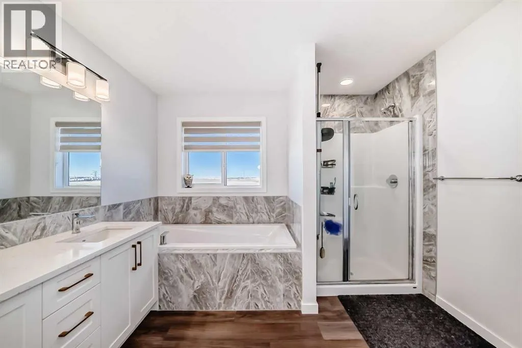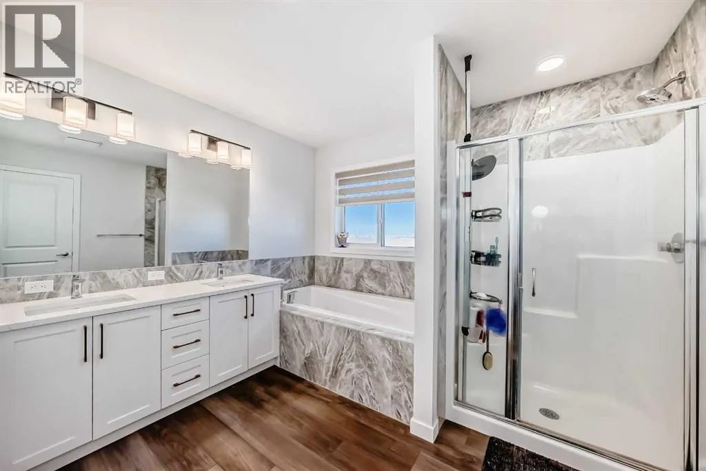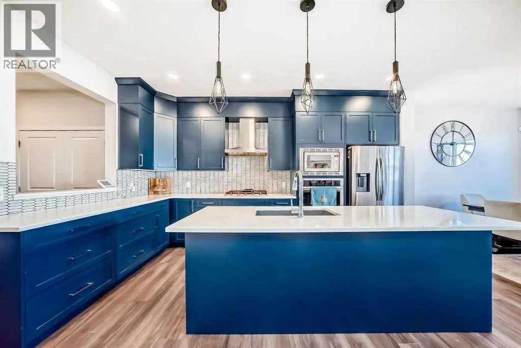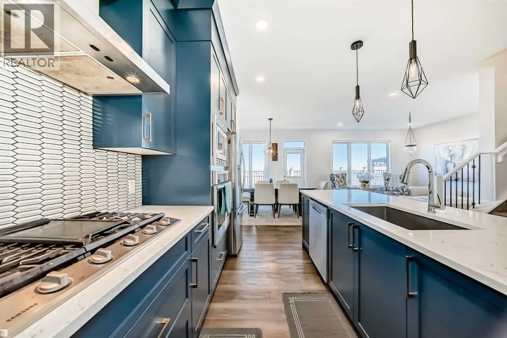 Step into modern elegance in the heart of Mahogany, Calgaryâs premier lake community! This beautifully crafted 2-storey home blends luxury finishes with everyday comfort, offering over 2,250 sq. ft. of stylish living space. The main floor welcomes you with an inviting open layout, where the designer kitchen shines with built-in stainless appliances, a gas range, ceiling-height cabinetry, and a spacious quartz island perfect for family gatherings. A walk-through pantry, main floor office, and sleek open railings add both function and flair. Upstairs, you will find three large bedrooms including a serene primary retreat with a spa-inspired ensuite featuring a deep soaker tub and oversized shower. Both secondary bedrooms include walk-in closets, while the convenient upper-level laundry makes daily living a breeze. The basement awaits your creative touch with 9-ft ceilings and rough-in for a future bathroom. Outside, enjoy a fenced and landscaped backyard with stone accents and no neighbours behind. Enjoy lake access privileges with four-season lake living and just minutes from Mahogany Lake, parks, playgrounds, South Health Campus and YMCA. Easy access to 88 Street and stoney Trail ensures a smooth commute to any part of the city. Quick possession available! (id:27476)