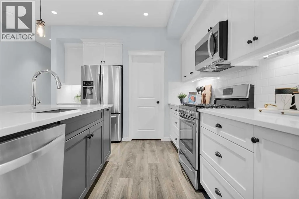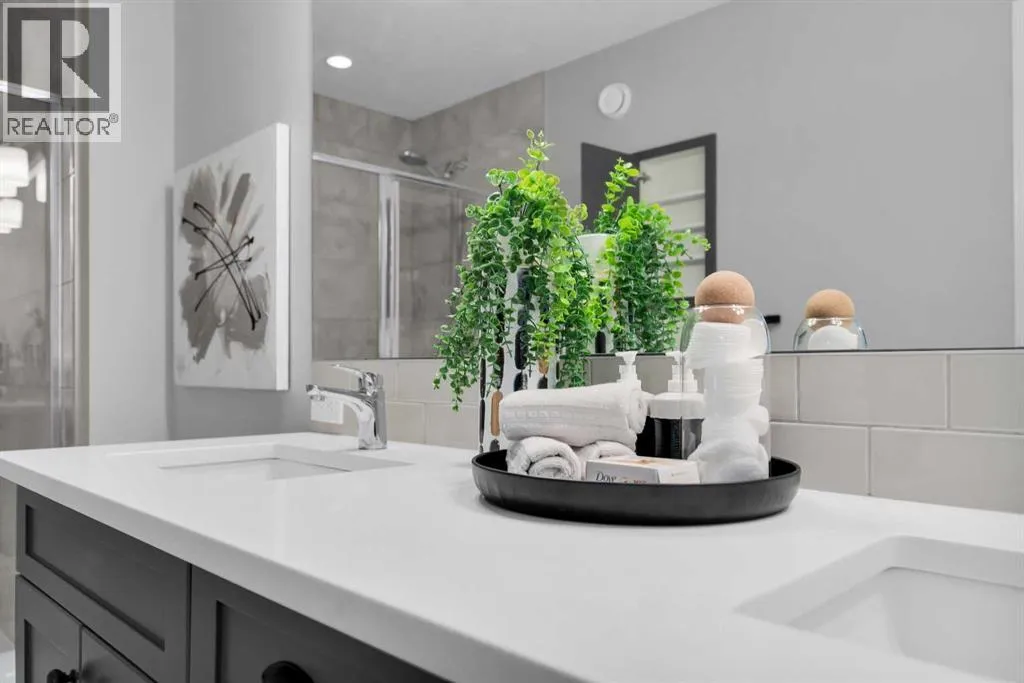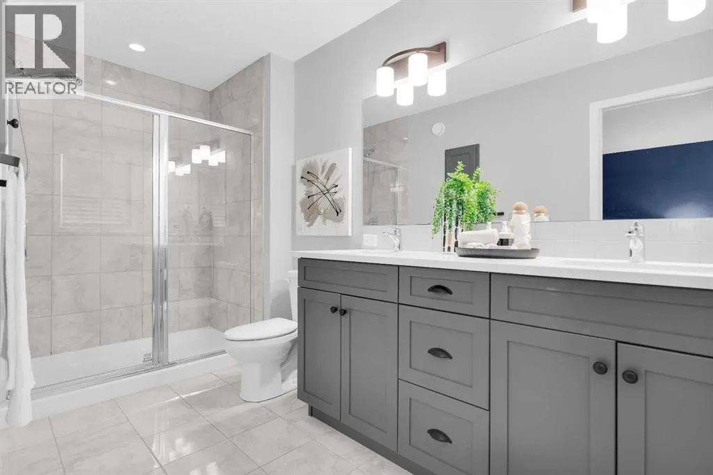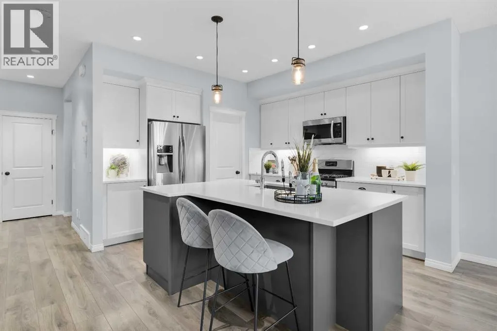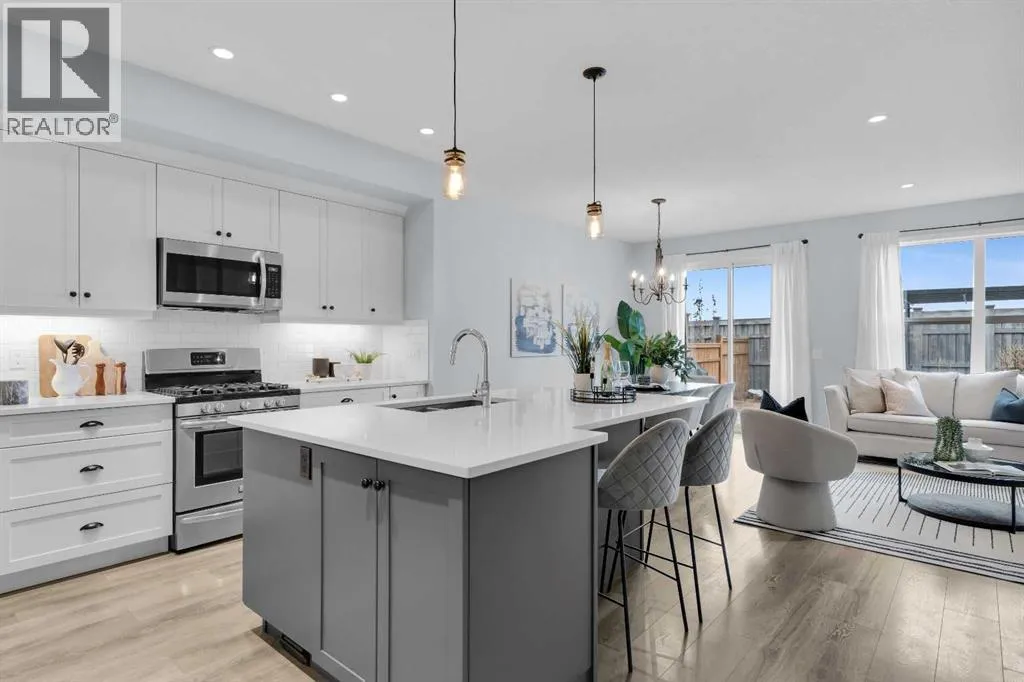 Welcome to LAKE PRIVILEGES | BONUS ROOM | LOADS OF UPGRADES | 23â DEEP GARAGE. This stylish 1,940 sq. ft. 4-bedroom, 4-bathroom home, built by award-winning Hopewell, is sure to impress! This home has never been smoked in and no pets have ever lived here. The main floor features 9â ceilings, a spacious front entry, a mudroom off the garage, and a convenient shoe cabinet by the entrance. The upgraded kitchen offers stone countertops, an undermount sink, a stainless steel gas stove, a double-door fridge with water and ice dispenser, under-cabinet lighting, and full-height soft-close cabinets and drawers. A beautiful wide staircase with wrought iron railing leads to the upper level, which boasts a large family room with two skylights, an upper laundry room, and a primary suite large enough for a king bed. The ensuite includes dual sinks and a walk-in shower, and thereâs also a walk-in closet. Two additional bedrooms and a full bathroom complete the upper level. The basement features 9â ceilings and has been professionally developed with permits, including a living area, bedroom, and full bathroom. The backyard is beautifully landscaped with stone, and includes a solid fence, deck, BBQ, and patio furniture â all in excellent condition. Although this is a single attached garage, the extra-wide driveway easily accommodates two additional vehicles, offering ample parking space. Donât miss this beautifully upgraded home with lake access and exceptional features throughout! (id:27476)