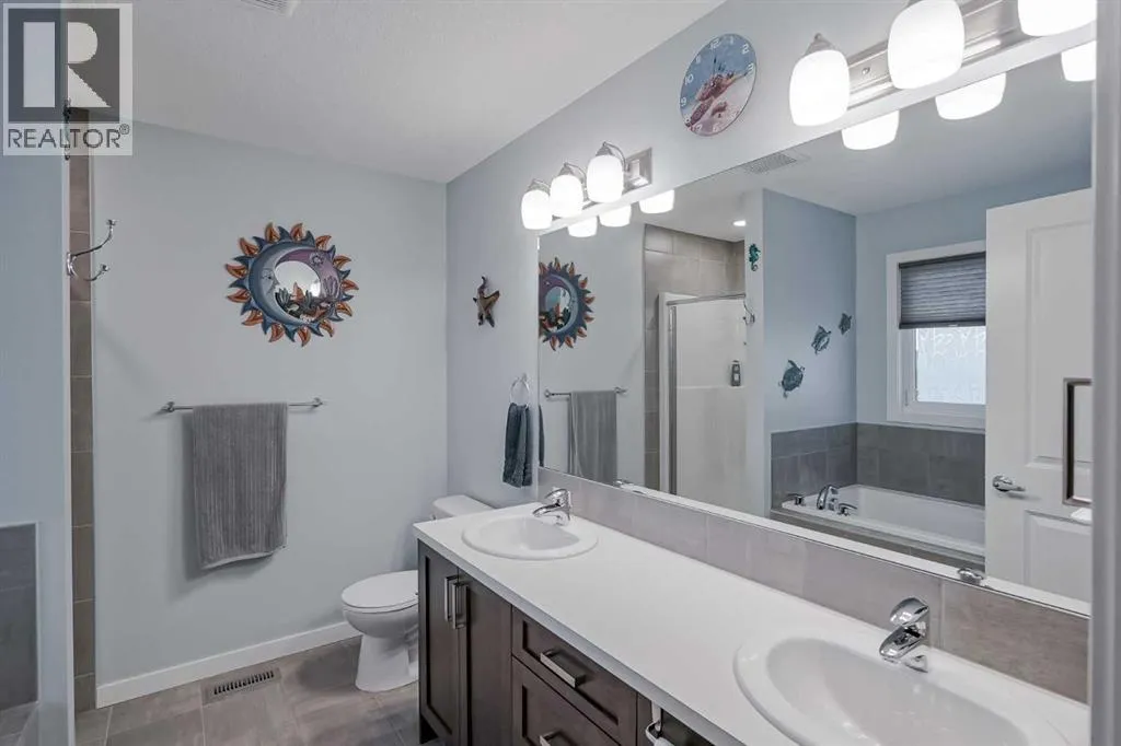 Discover the exceptional quality and care poured into every corner of this air-conditioned family home. Perfectly positioned on a sunny corner lot at the top of a quiet cul-de-sac in highly sought-after Walden, this residence is not just a houseâit's a finished sanctuary ready for your arrival.The moment you step inside, the homeâs quality shines through, featuring 9-foot ceilings on the main level and elegant hardwood floors. Impressive Features & Thoughtful Design including a Chef's Kitchen: Entertain with ease in the main floor kitchen, equipped with a GE Café dual-fuel range (new 2022) and a stainless steel dishwasher with a tall tub and 3rd rack. Convenience is doubled with a walk-in pantry and a secondary pantry/storage area. A fabulous living room and eating area with an open concept, perfect for family gatherings. Ownerâs Sanctuary, The primary suite is a generous retreat featuring a walk-in closet and a luxurious ensuite with a soaker tub and separate shower. Family Comfort on the upper level also provides two more large bedrooms, a large bonus room, a generous laundry room, and a family bathroom showcasing a custom shower. Exterior Oasis has a stunning south-facing landscaped yard is fully fencedâperfect for children and pets. Enjoy outdoor living on the two-level deck, complete with a custom patio cover for relaxing shade. A small utility shed is tucked away for extra storage.The owners have gone above and beyond to ensure this home offers true peace of mind, making significant investments in core systems and structural improvements: The basement is well on its way to completion, featuring professionally wired electrical and OSB on the walls and laminate flooring, offering an ideal space for future development. Plus, the home is roughed-in for future solar installation! With an Unbeatable Location, Move right in and don't worry about a thing! You are just blocks from premier shopping in Legacy and enjoy the parks and multiple color coded parks for your ki ds to play at, enjoying neighborhood walkability and family-friendly amenities within minutes. This home truly stands out! (id:27476)