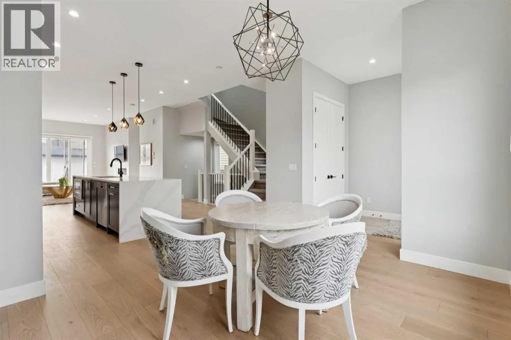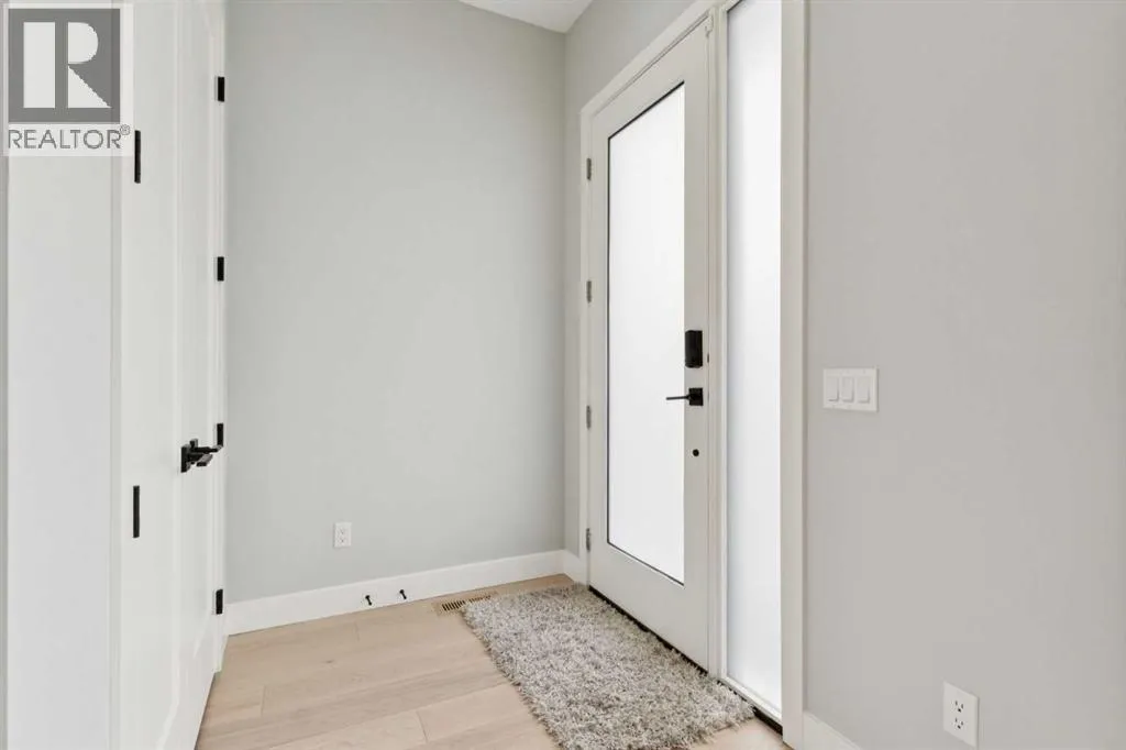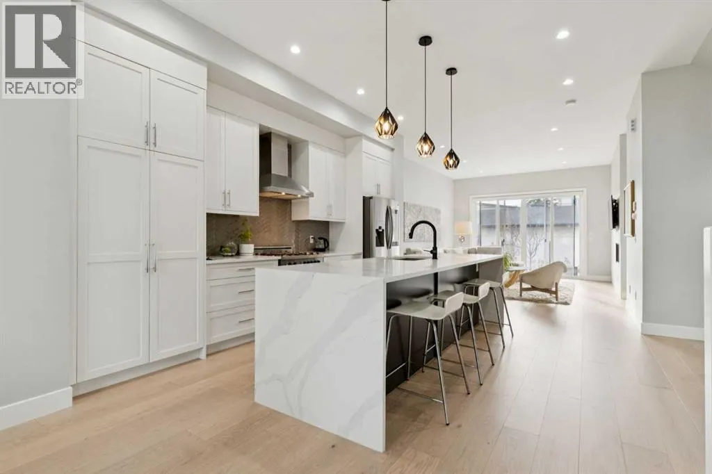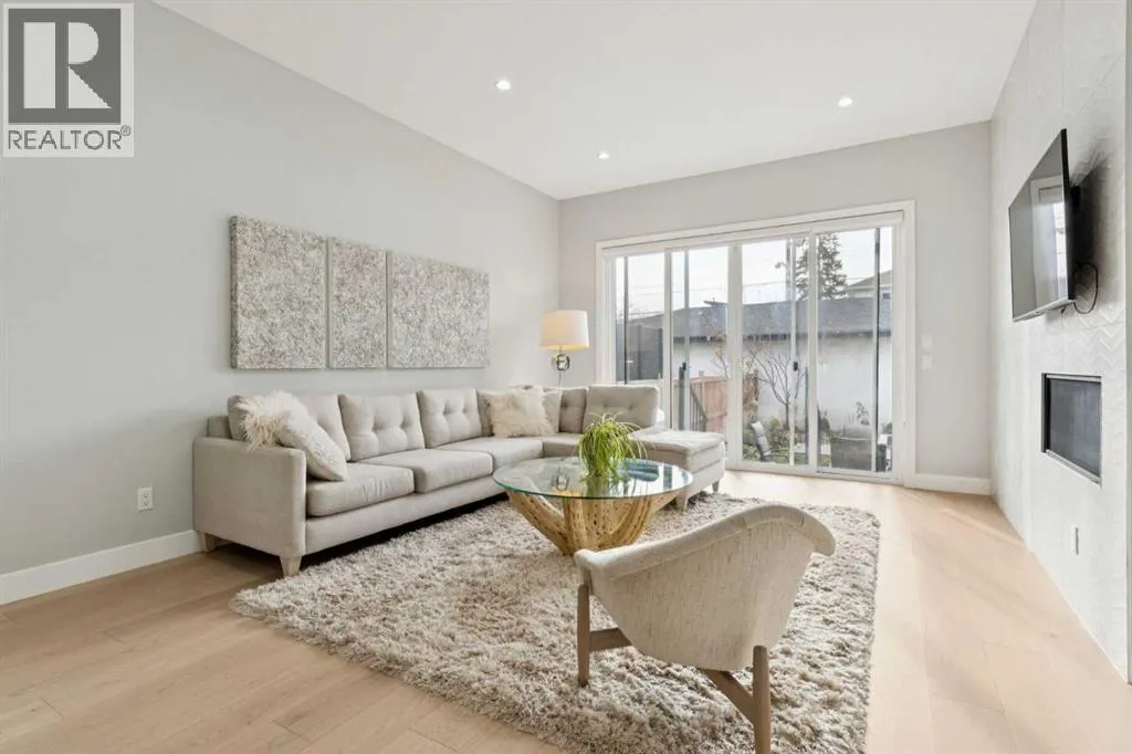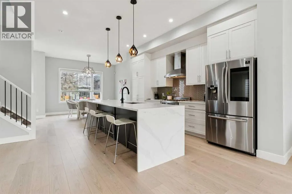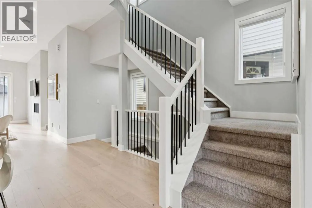 This sophisticated, contemporary semi-detached infill in Capitol Hill offers exceptional value with over 2,700 square feet of functional living space featuring 4 bedrooms, 3 and half bathrooms, premium finishes, and a south facing yard. The main floor boasts brand new engineered wide plank oak hardwood flooring, ten-foot ceilings, and generously proportioned living areas. These include a formal dining room, a living room with a sliding glass door to the rear yard, and a modern kitchen equipped with stainless steel appliances and shaker-style cabinetry. A tiled mudroom provides direct access to the double detached garage and includes built-in millwork for organized storage. A privately situated powder room completes this wonderful main floor. The upper level comprises three spacious bedrooms, two full bathrooms, and convenient second-floor laundry. The master suite features a sizable walk-in closet and a private five-piece ensuite with a freestanding soaker tub, a separate water closet, and an oversized glass shower. The fully finished basement includes a large recreation room with a wet bar, a fourth bedroom, and a fourth bathroom. Finally, the home is complete with air conditioning, charming landscaping, a very useful at-grade concrete patio, and irrigation. Book your private tour today. (id:27476)
