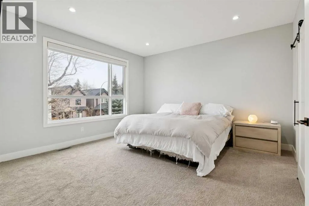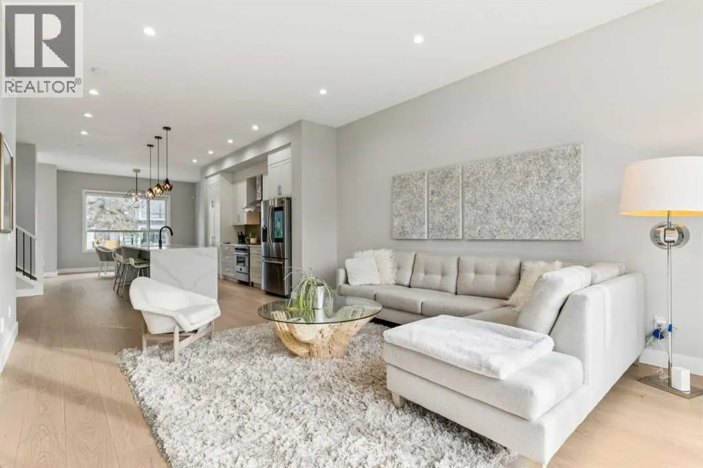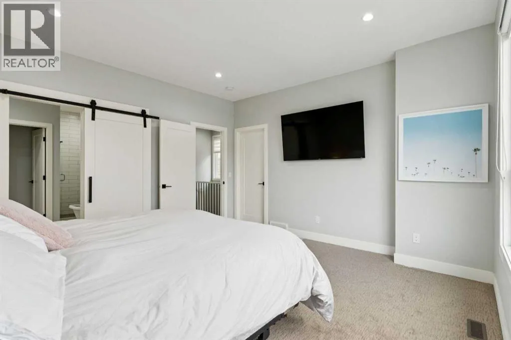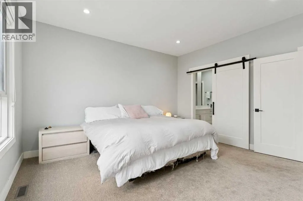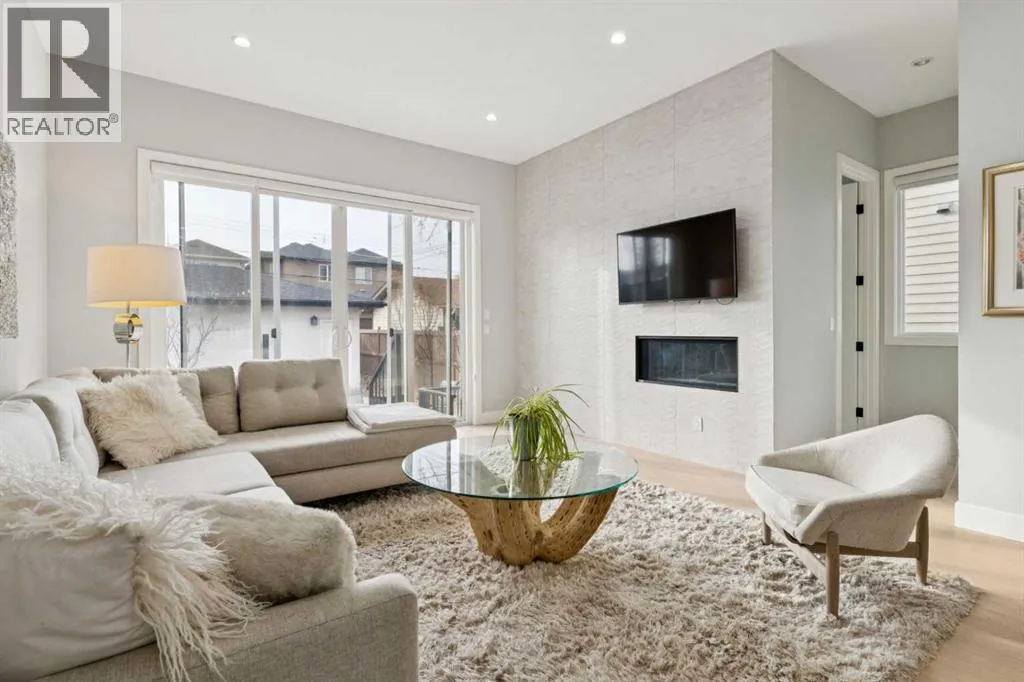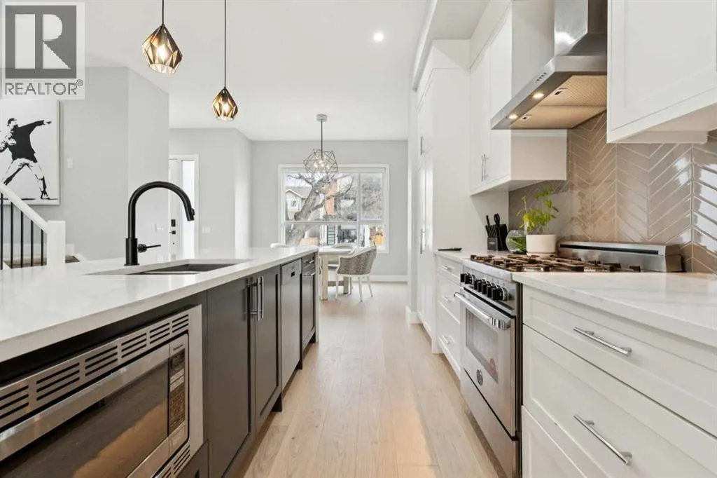 This sophisticated, contemporary semi-detached infill in Capitol Hill offers exceptional value with over 2,700 square feet of functional living space featuring 4 bedrooms, 3 and half bathrooms, premium finishes, and a south facing yard. The main floor boasts brand new engineered wide plank oak hardwood flooring, ten-foot ceilings, and generously proportioned living areas. These include a formal dining room, a living room with a sliding glass door to the rear yard, and a modern kitchen equipped with stainless steel appliances and shaker-style cabinetry. A tiled mudroom provides direct access to the double detached garage and includes built-in millwork for organized storage. A privately situated powder room completes this wonderful main floor. The upper level comprises three spacious bedrooms, two full bathrooms, and convenient second-floor laundry. The master suite features a sizable walk-in closet and a private five-piece ensuite with a freestanding soaker tub, a separate water closet, and an oversized glass shower. The fully finished basement includes a large recreation room with a wet bar, a fourth bedroom, and a fourth bathroom. Finally, the home is complete with air conditioning, charming landscaping, a very useful at-grade concrete patio, and irrigation. Book your private tour today. (id:27476)