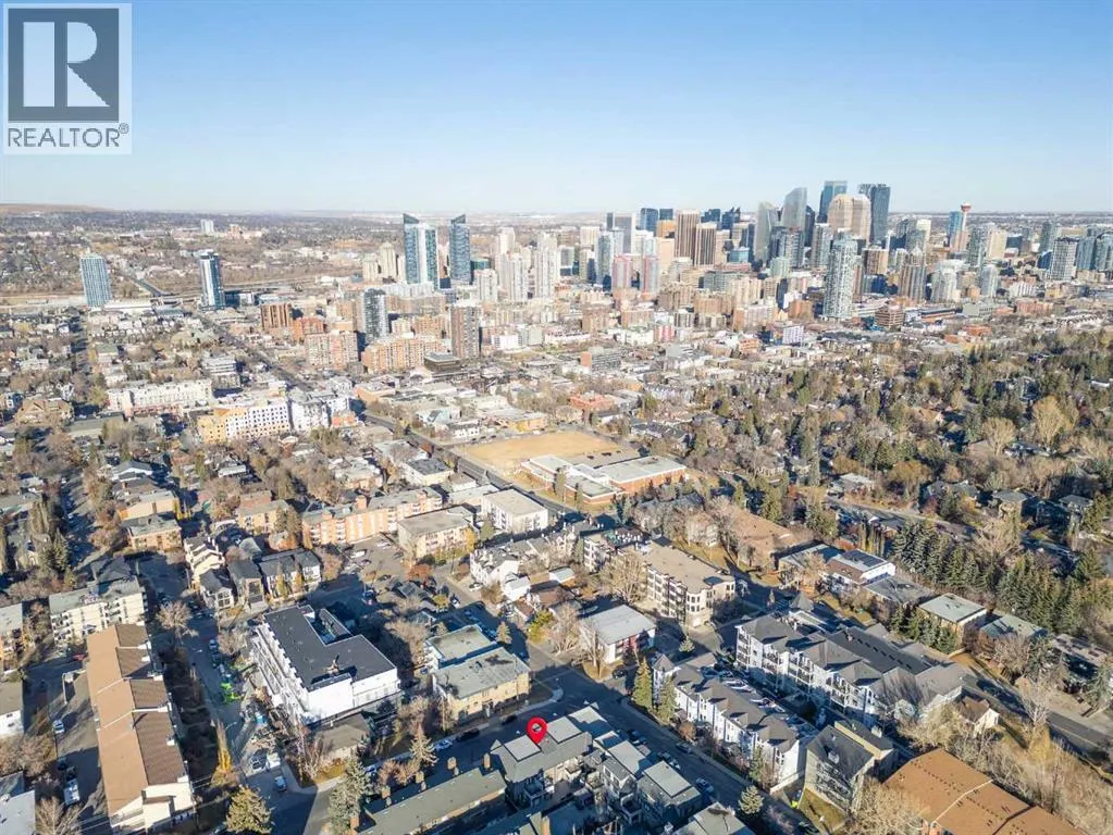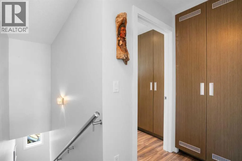 This stylish and sun-filled townhouse in Bankview offers the perfect blend of modern design, functional space, and unbeatable value. Featuring two heated and secure underground parking stalls, this home stands out with thoughtful upgrades and a layout ideal for both everyday living and entertaining. The open-concept main floor is anchored by soaring 9-foot ceilings and durable laminate flooring throughout. A spacious living room offers plenty of room to relax or host guests, while the kitchen is a true showpiece with a large waterfall quartz island, undermount sink, stainless steel appliances, gas range, and a deep pantry with both open and closed storage. The adjacent dining area is surrounded by two walls of south-facing windows, filling the space with natural light. Just outside, a shared patio with gas hookup creates a perfect spot for summer evenings and weekend lounging. A convenient two-piece bathroom completes the main level. Upstairs, both bedrooms are generously sized and feature their own private ensuite bathrooms and built-in wardrobes. The primary suite is oversized with excellent storage and a sleek 4-piece bath. The secondary bedroom features a five-piece ensuite, additional closet space, and its own private south-facing balcony overlooking the courtyard. The upper level also includes the laundry machines, conveniently located near both bedrooms for added ease and efficiency. With secure underground parking, modern finishes, and a location close to transit, shopping, parks, and the university, this home is the total package. Monthly condo fees include everything except electricity, offering true peace of mind in this turnkey property. (id:27476)