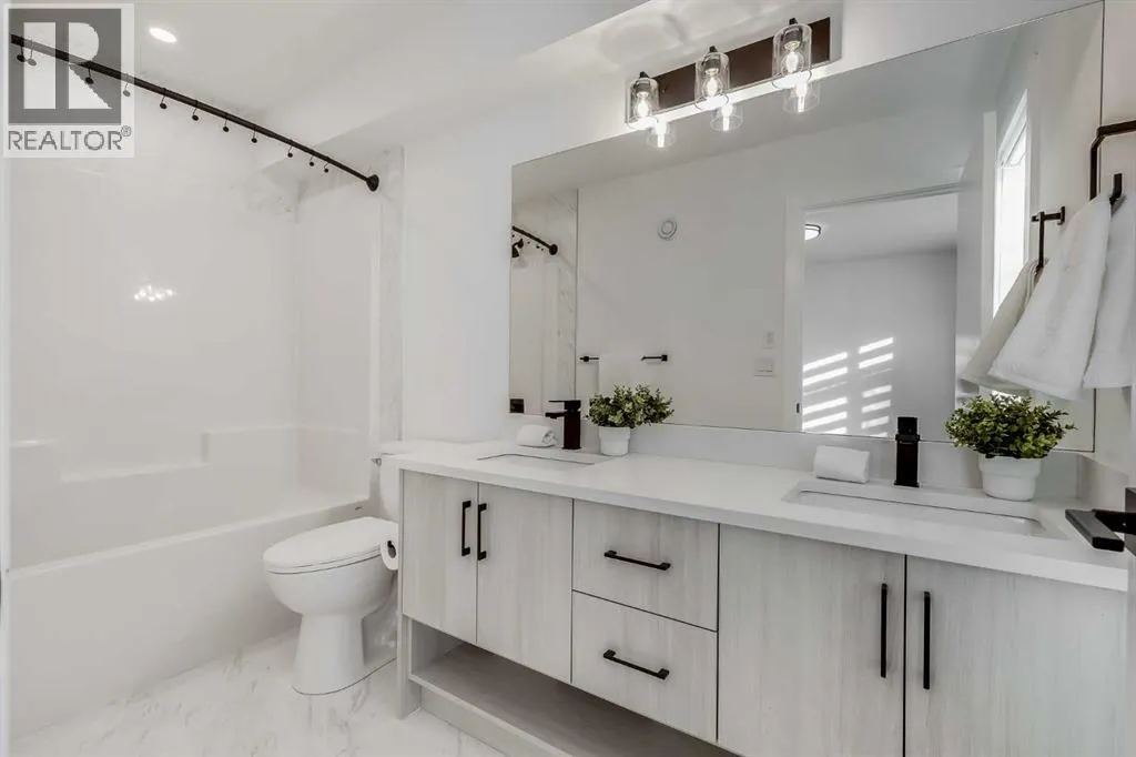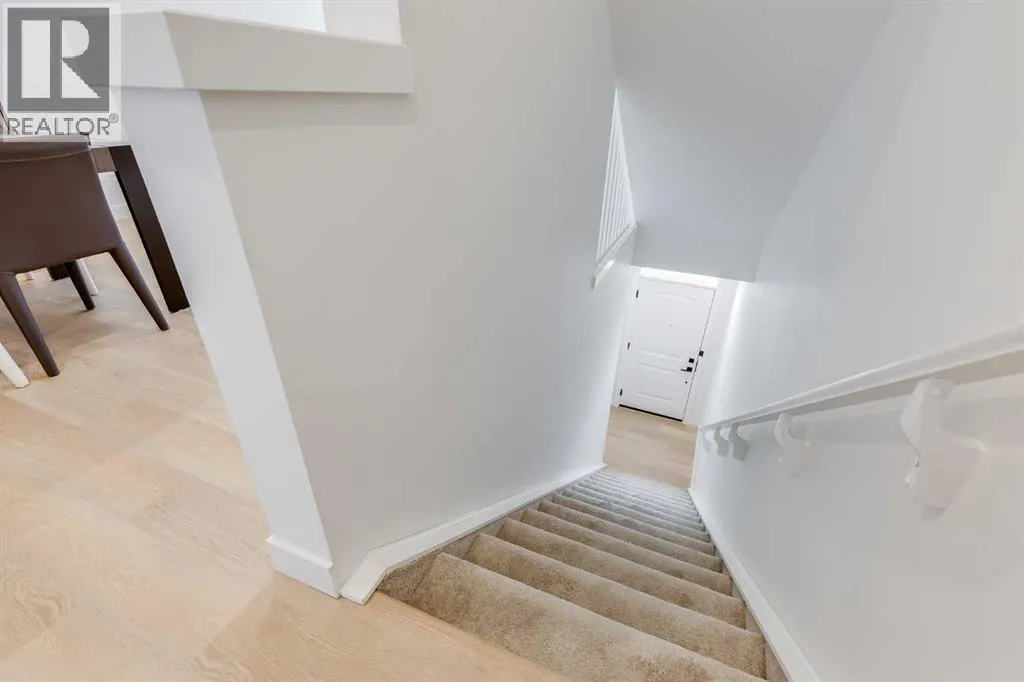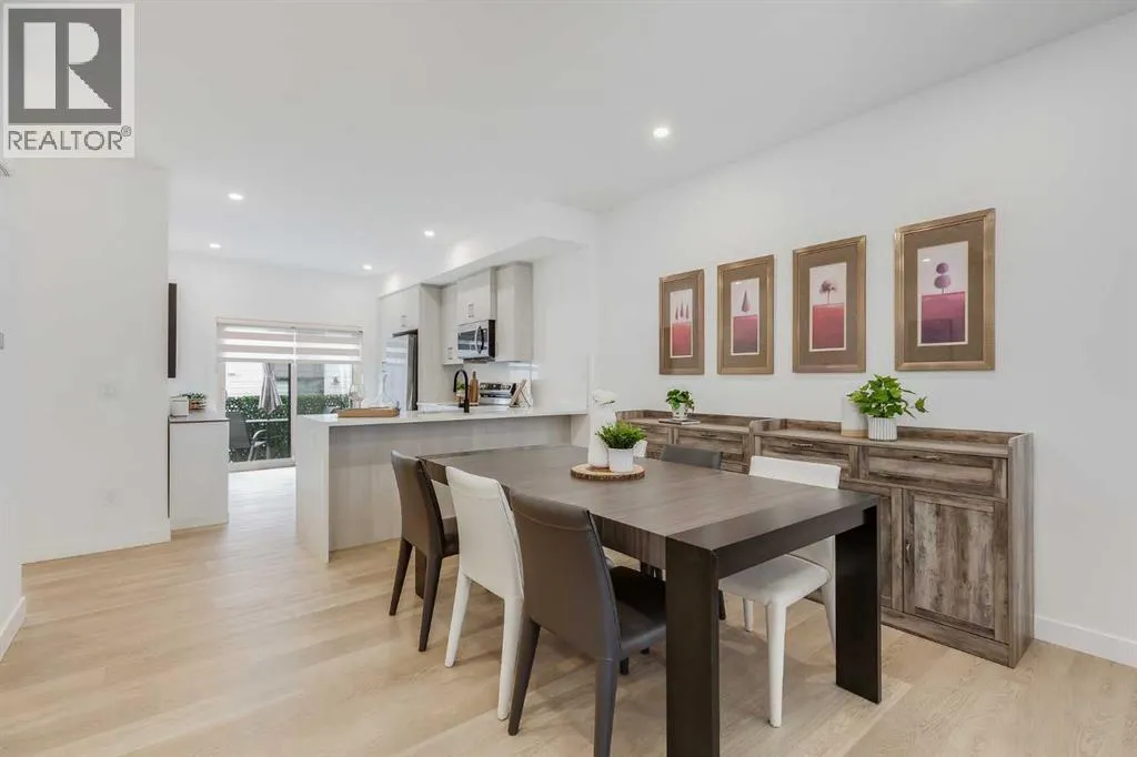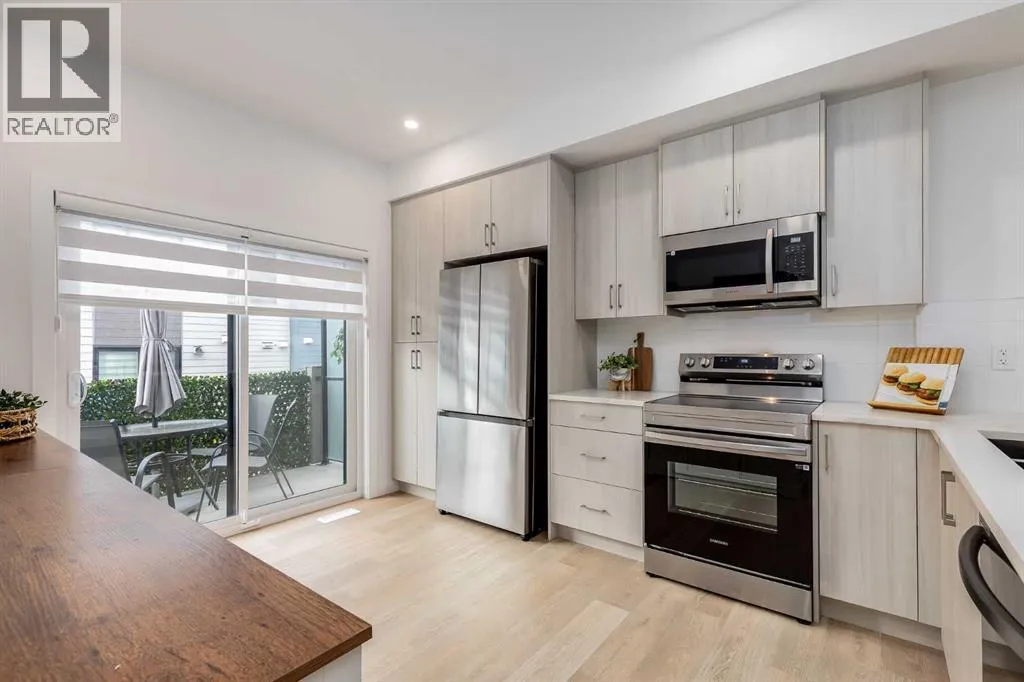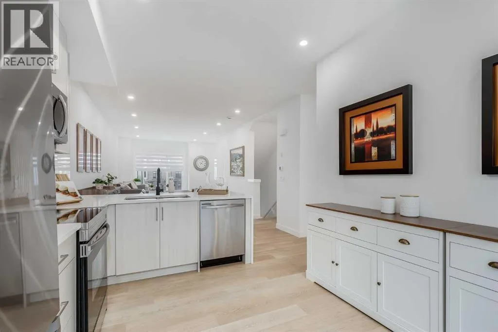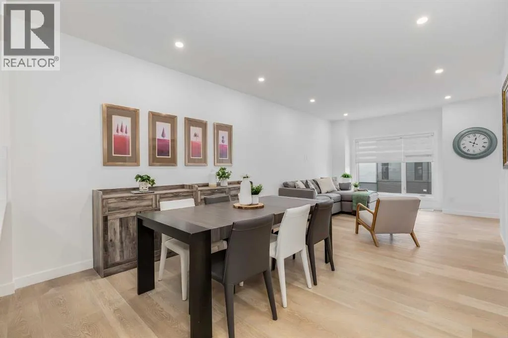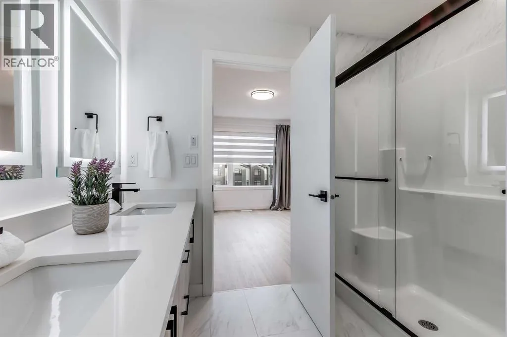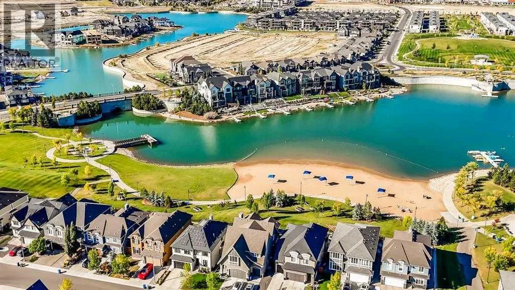 Nestled in the desirable lake community of Mahogany, this 2024-built three-storey townhouse by Mountain Pacific Homes combines modern design, high-end finishes, and functional living spaces. With over 1,500 square feet and lake access, this home offers comfort, convenience, and a vibrant lifestyle.The main level is designed for both everyday living and entertaining. Sunlight fills the open-concept kitchen, dining, and living areas, highlighted by sleek luxury vinyl plank flooring and 9-foot ceilings. The kitchen at the heart of the home features quartz countertops, upgraded stainless steel appliances, ample storage, and a breakfast bar for casual meals. A balcony just off the kitchen provides a perfect spot for morning coffee or evening relaxation. The dining area flows naturally into the living room, creating a seamless space for gatherings, and a conveniently located two-piece powder room completes this level. Upstairs, comfort and privacy take center stage. Both primary bedrooms feature walk-in closets and ensuite bathrooms, each with dual sinks for added convenience. One ensuite showcases a spa-inspired five-piece layout with an oversized shower and built-in bench, while the other offers a stylish and well-appointed four-piece design. Vinyl plank flooring continues throughout, and an upstairs laundry area adds practical convenience. The entry-level floor is designed with both functionality and flexibility in mind. A tandem garage with built-in shelving provides abundant storage, and part of the space could easily be adapted into a home gym or hobby area. The storage and utility room adds convenience, and direct access to the backyard makes moving between indoor and outdoor spaces effortless. Step outside to a private retreat in the fully fenced backyard, featuring a concrete patio and privacy glass. Modern features include air conditioning, automated blinds, a high-efficiency furnace, and a 50-gallon electric hot water tank, while durable construction with engin eered floor joists, 30-year architectural shingles, R42 attic insulation, Hardie Board siding, and aluminum soffits ensures long-term peace of mind. As a new build, the home includes warranty coverage, smart home features, electronic blinds, and the option to purchase an extra outdoor parking stall. There is no waiting for possession, ongoing construction, or additional costs for landscaping, fencing, or window treatments because everything is already complete. Residents enjoy a vibrant lakeside lifestyle, with a 15-minute walk to Mahogany Beach Club, sandy beaches, a non-motorized marina, swimming, paddleboarding, kayaking, fishing, and year-round recreational activities. West and Central Beaches feature sports courts, playgrounds, picnic areas, and fire pits, while the communityâs wetlands are nearby. Local amenities include Mahogany Village Market, Westman Village, restaurants, Seton YMCA, Calgary Public Library, and schools. Easy access to 52nd Avenue and Stoney Trail ensures simple commuting. (id:27476)