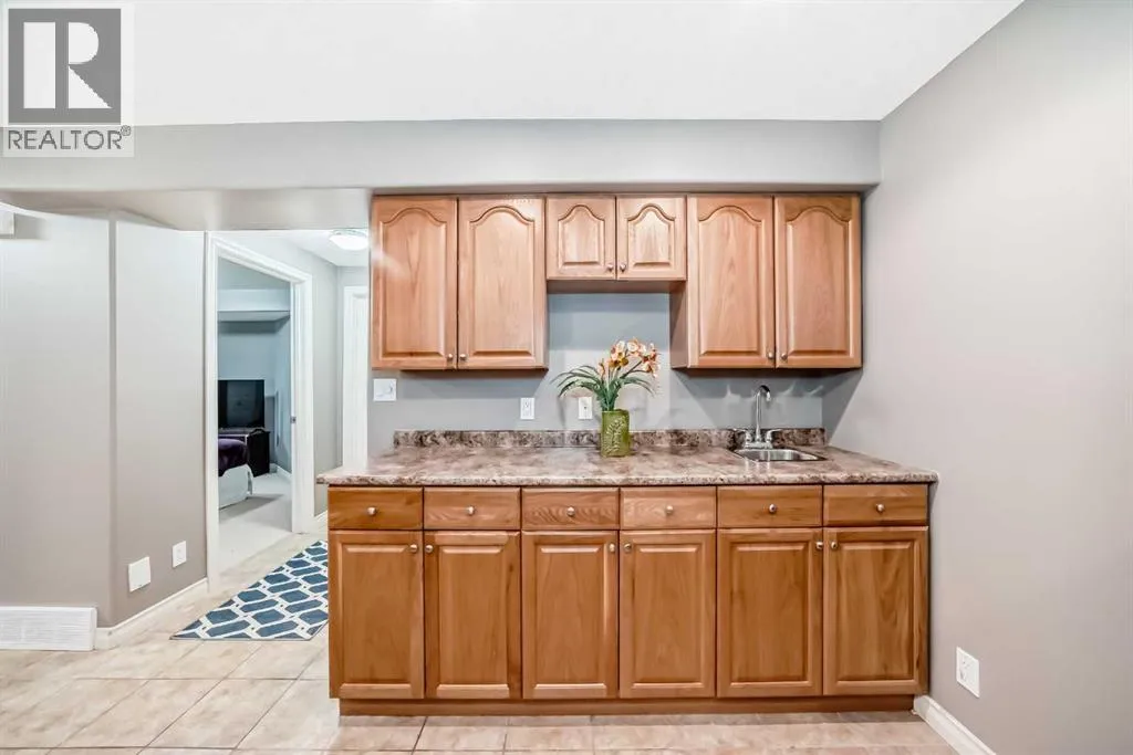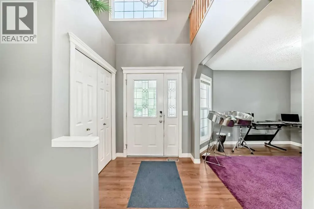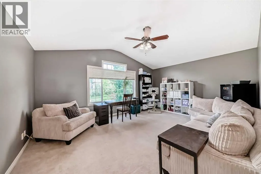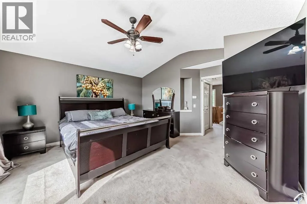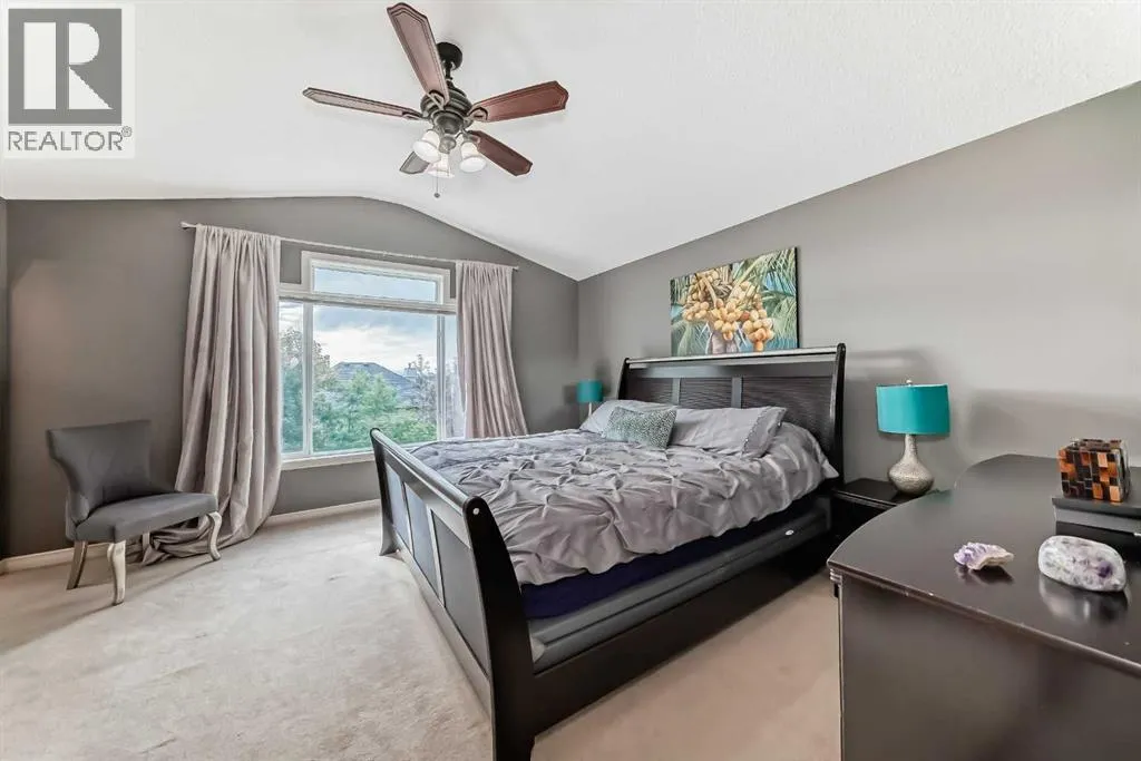 Welcome to this large family home sitting on a walkout lot with views of the Rocky Mountains! Just under 3000 total sq ft with a fully finished walkout basement. The main floor is wide open with upgraded kitchen cabinets and gleaming granite countertops. There is hardwood floors through to the kitchen, dining room & home office/den. The centre island is massive with dual undermount sinks and extra storage. There is plenty of cabinets and drawers plus a large corner pantry! Overlooking the front of the house is an oversized home office or den area~ perfect flex area for whatever you need. The garage is drywalled, insulated and heated. Upstairs you will love the custom wood railings and the huge Bonus room~ amazing entertainment space will hold any sized furniture. The Primary Bedroom has vaulted ceilings, a large walkin closet, a nice mountain view and an incredible 5 pce luxurious ensuite boasting dual sinks in the vanity, granite countertops, a deep corner soaker tub, a cozy stand up shower with corner seat and tiled floors. The two spare bedrooms are a good size (one has a handy walkin closet) and they can share the main 4 pce bathroom. The walkout level is fully finished with tiled flooring, knockdown ceiling with recessed lighting and large windows. There is a corner wet bar with upper & lower cabinets. The living room has a gas fireplace for extra comfort. There is one huge bedroom (the 4th one) and a large den (no closet but does have a stand up armoir & a big window). The basement has a full 4 pce bathroom as well. There is a good sized brick patio at the walkout entrance, a stone sidewalk comes from the front for easy access to the back. The private west facing backyard is a good size. The home has central AC, builtin vacuflo and can include the two spare fridges and the stand up freezer too. This is a great family for a large extended family. Easy walk to the Crestmont Community centre. Quick drive to get to the 16th Ave, Stoney Tr and downtown. (id:27476)