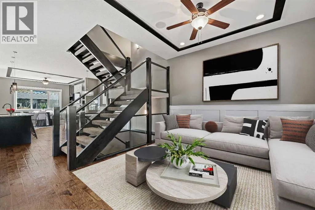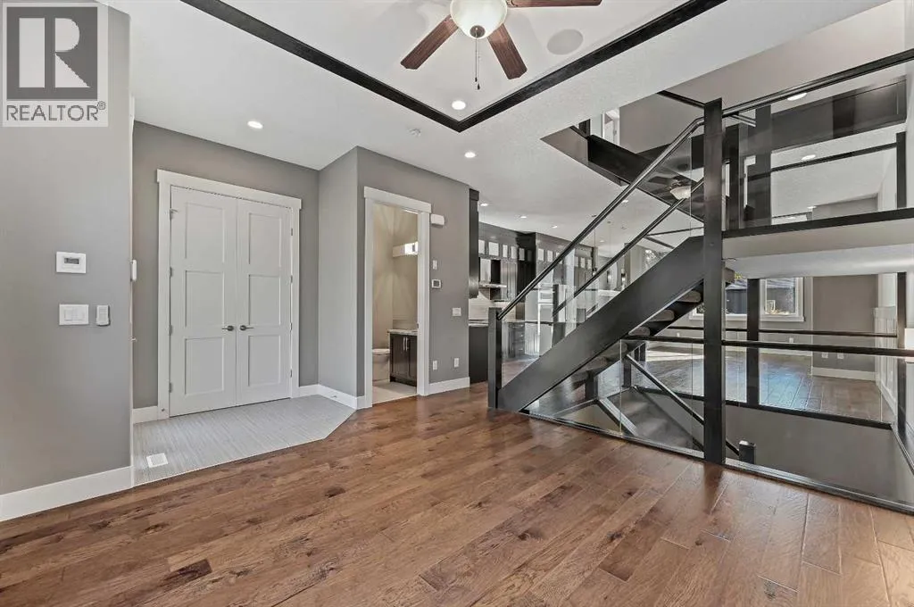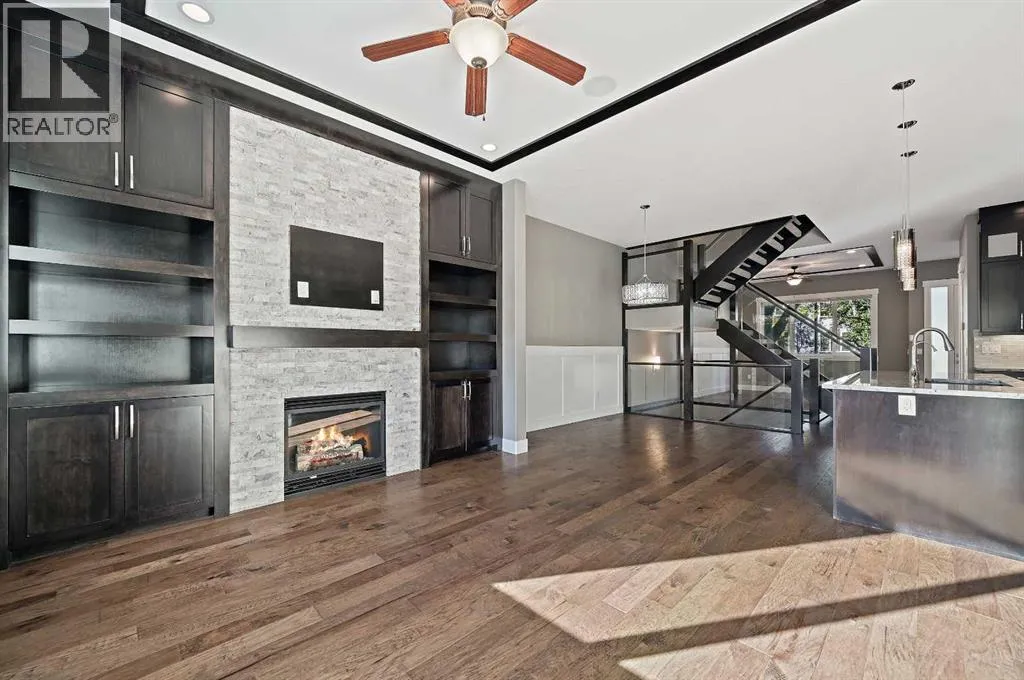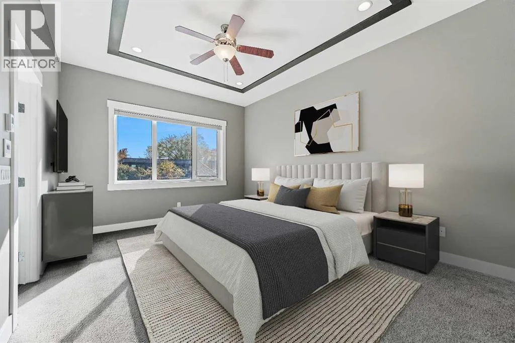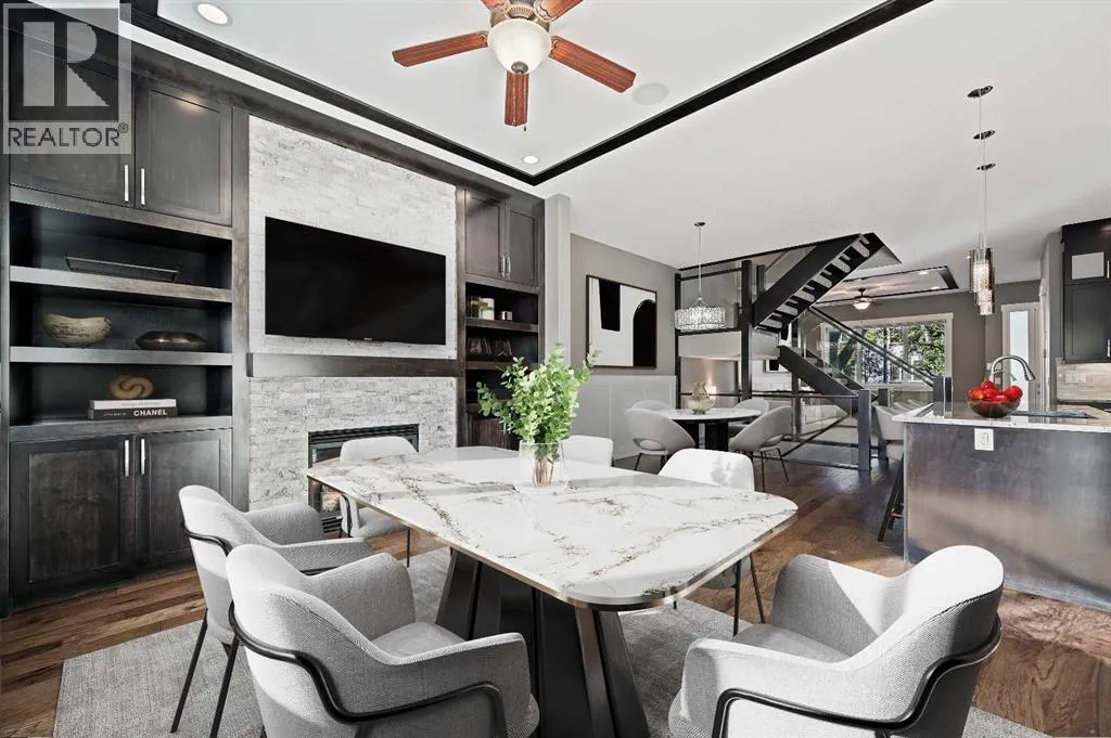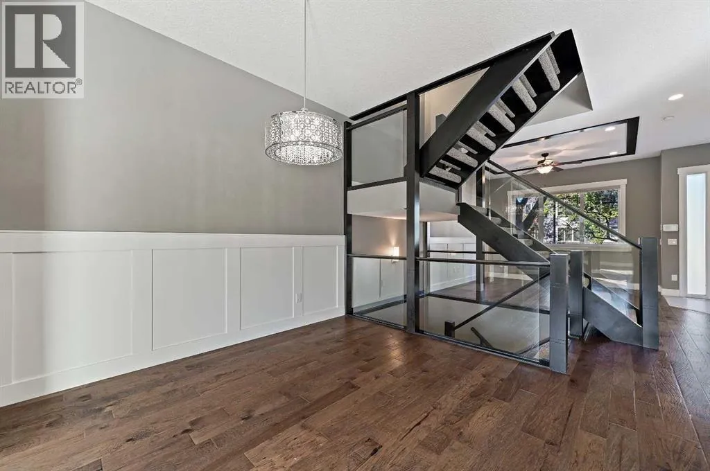 Upscale semi-detached home in Mount Pleasant offers a blend of sophistication and functionality with nearly 3000 Sq.Ft. of thoughtfully designed living space on a quiet, tree-lined street in Calgaryâs inner city.High ceilings on all three levelsâincluding the fully developed basementâ and large windows provide natural light for the open floor plans.. The main floor features textured hardwood, detailed millwork, and an architecturally striking open staircase. The gourmet kitchen, finished with granite countertops and rich dark cabinetry includes a full package of stainless Jenn-Air appliances, and dedicated water purification, centering the main level with style and practicality. Upstairs, the primary retreat includes a large customized walk-in closet and a spa-inspired 5-piece ensuite with a large jetted tub, walk in shower and dual vanity. Two additional bedrooms, central 4-piece bath, and a well-appointed laundry room complete the upper level.The lower level offers a spacious rec room, fourth bedroom, beautifully finished 3-piece bath with walk-in shower, and a sleek wet barâideal for guests and entertaining, along with in floor heat throughout. The professionally installed solar panel system (SkyFire Energy) helps to reduce energy costs while adding long-term value. Gutter protectors (Gutter Doctor) and high-quality finishings throughout speak to the care and attention invested in the home.Outdoors, the south-facing backyard offers a private retreat with two productive garden plots, a shaded patio area along the garage, and a charming garden strip that runs along the walkway and fence.Set on a quiet avenue framed by a mature tree canopy, this location balances serenity with walkability. Ãcole de la Rose Sauvage and St. Josephâs School are just steps away. Walk to Linaâs Market, Safeway, Confederation Park, and local favourites like 4th Spot, Our House, and Turca. Transit access is quick and convenient with nearby BRT and local routes.Minutes to downtown an d just 15 minutes to the airportâthis home delivers upscale inner-city living without compromise. (id:27476)