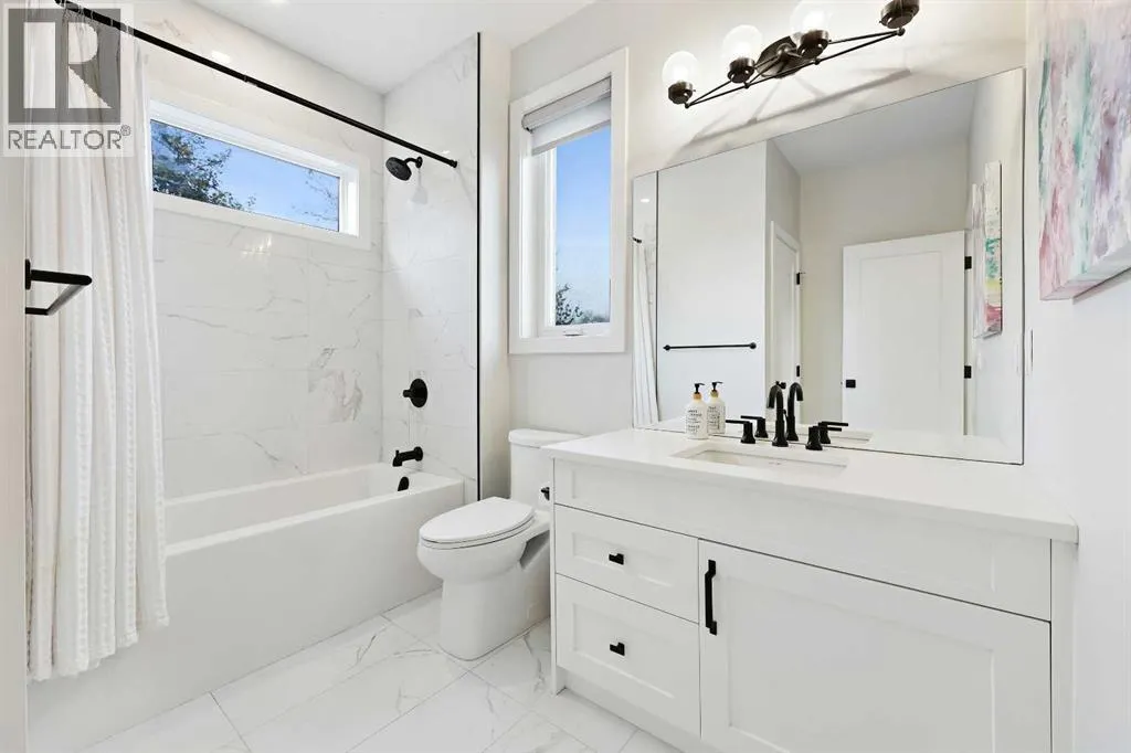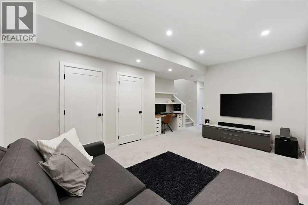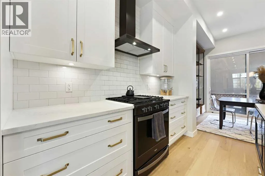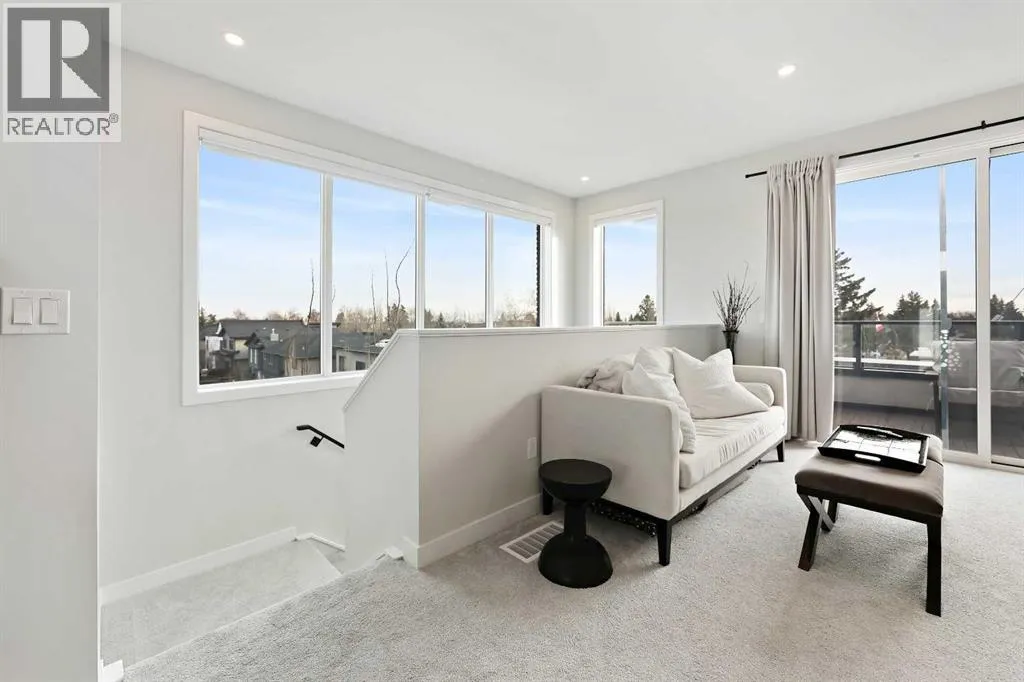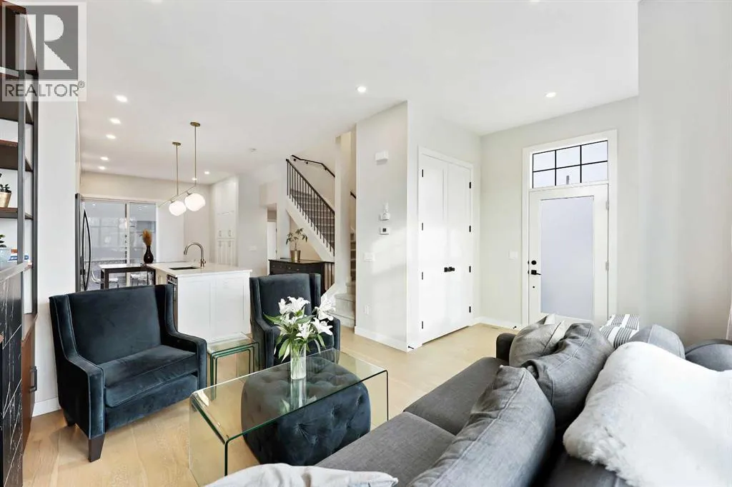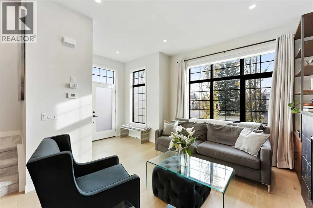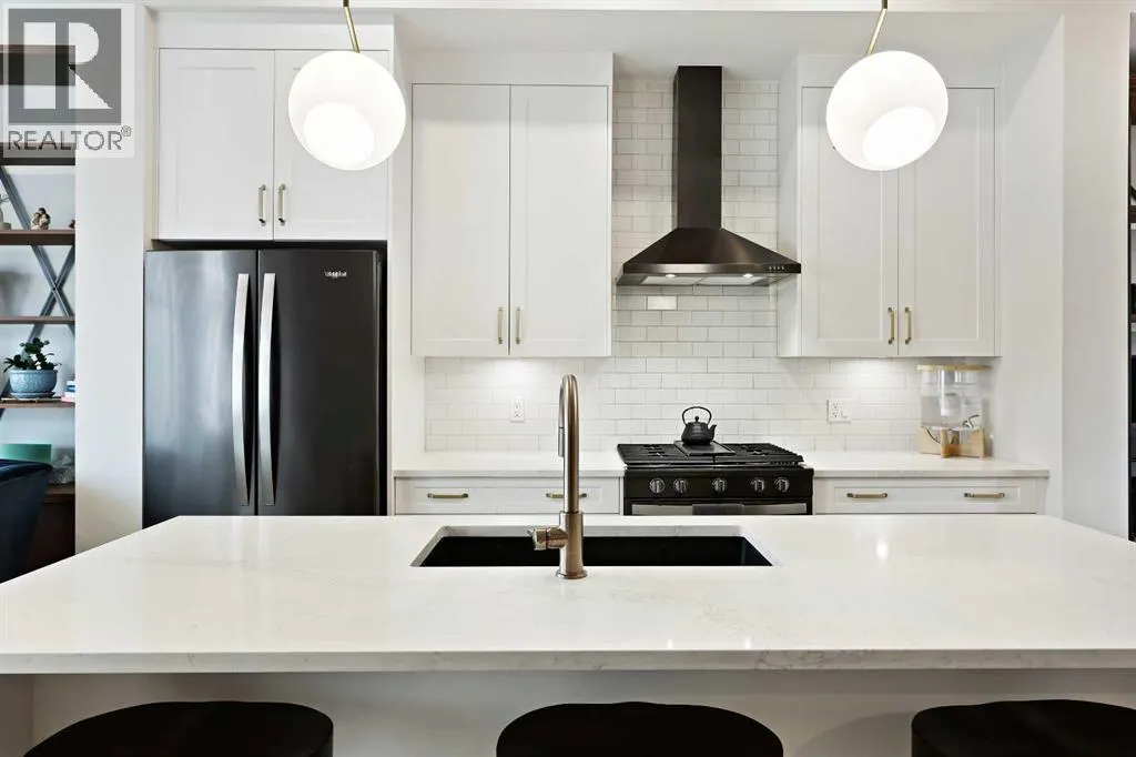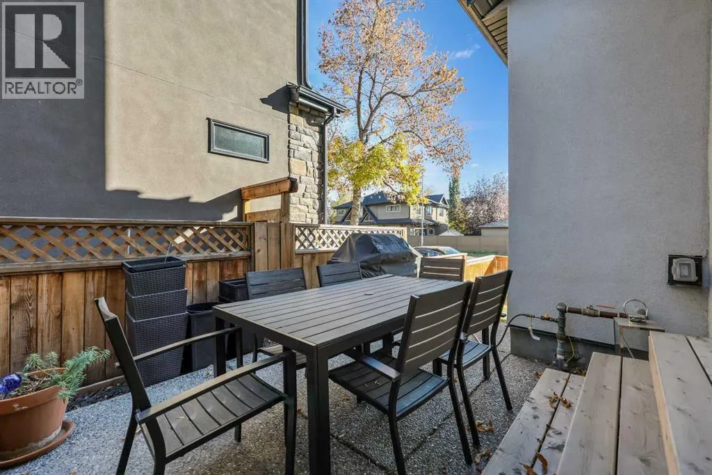 In Altadore, itâs rare to find the perfect blend of an inner city lifestyle and true outdoor living, a private backyard and a garage, but this home checks all of the boxes! Set in a location that truly maximizes lifestyle, you are just minutes from the boutiques, dining, coffee shops, and gyms of Marda Loop. Outdoor enthusiasts will love having Sandy Beach and endless pathways nearby! This community has top rated schools, convenient transit options and access to major roads, making commutes a breeze. This corner unit townhome delivers elevated style, thoughtful upgrades, and urban convenience all wrapped in charming brick architecture. Inside, 10 ft. ceilings and oversized windows create a bright, sophisticated atmosphere. Hardwood floors flow through the open main level, where a welcoming living room centers around a sleek gas fireplace. The dining space is designed for entertaining, while the chefâs kitchen stands out with quartz counters, premium appliances including a gas range, a sleek backsplash, and a rare upgrade, an additional full pantry! This level is complete with a 2 piece powder room, just off the kitchen. Upstairs, the primary retreat includes a generous walk-in closet with upgraded shelving and a serene ensuite featuring dual sinks and heated floors, an everyday luxury. A second spacious bedroom and convenient laundry complete this level, with remote controlled ceiling fans in the bedrooms adding extra comfort year round. The top floor flexes to suit your lifestyle! A family room, home gym, office, or additional bedroom, enhanced with motorized electronic blinds and a bar rough-in. From this floor, you have direct access to your private rooftop patio showcasing sweeping city and mountain views. A must see for the best sunsets! The fully developed lower level extends your living space with a recreation area, office niche, another full bedroom, and a 4-piece bathroom. Throughout the home, custom closet organizers and premium window coverings further el evates everyday function and finish. Step outside to one of Altadore's most desirable features, a private, fully fenced backyard, perfect for pets, play, or summer nights, complete with a gas line for your barbecue. A single detached garage offers secure parking and storage. This is the best of Altadore! Urban energy, walkability, modern living, without sacrificing space, privacy, or comfort. Welcome home. (id:27476)