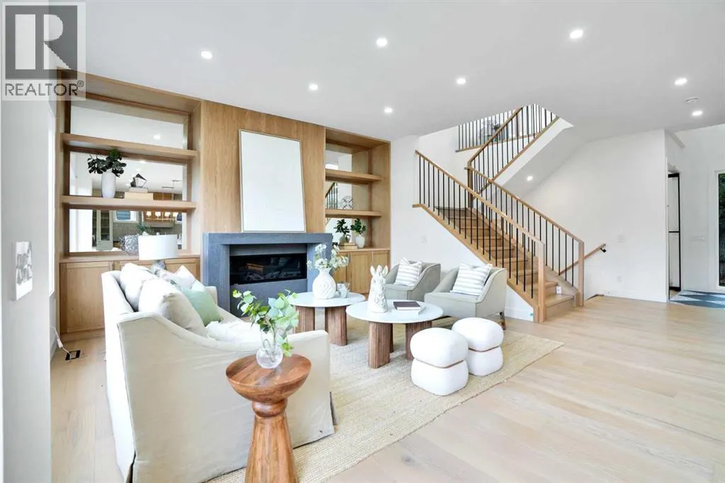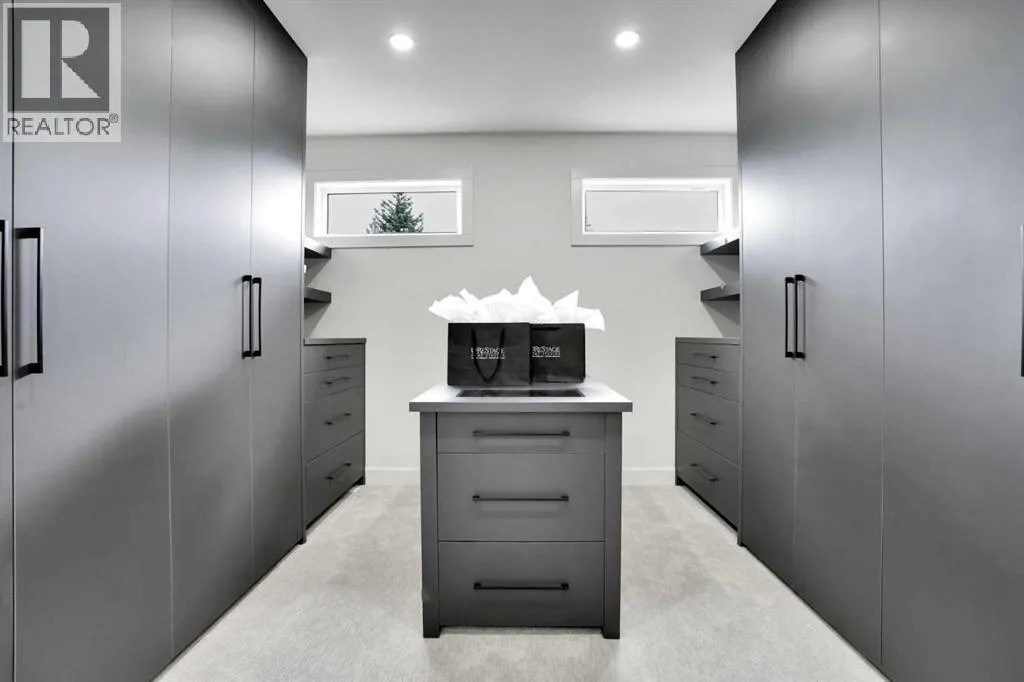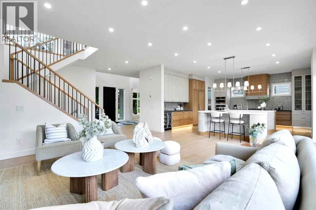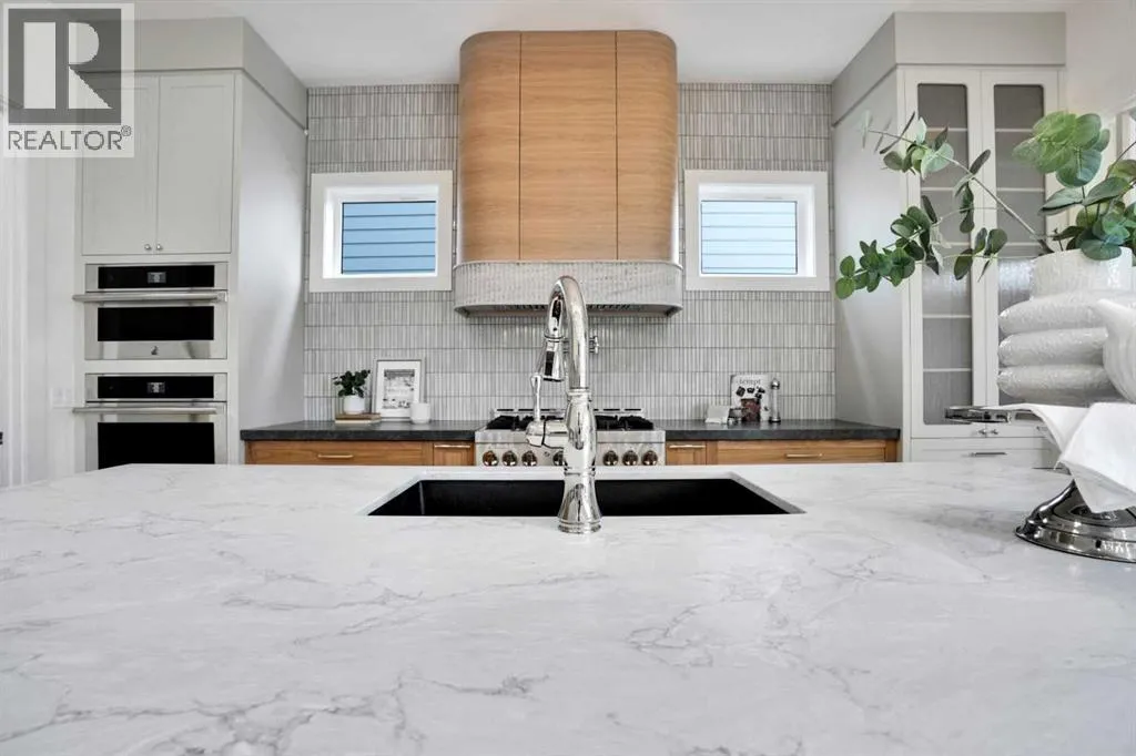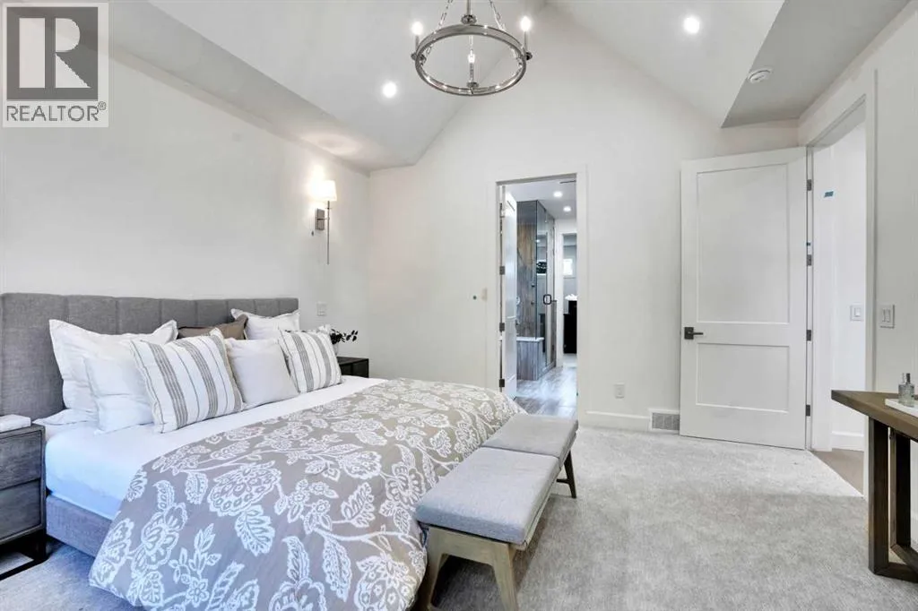 ***OPEN HOUSE Sunday Nov.16 from 2pm-4pmThis NEW Luxurious & Modern home Built by Craft Haven Homes and creatively designed by Maxime Chin is built for the discerning family. This architectural masterpiece offers a well thought out bright and airy functional layout. Located on the quiet tree lined Lacombe Way in the family friendly prestigious community of Lakeview. Boasting over 4,700 sq. ft. of luxury living on 3 levels. With 5 bedrooms & 5 Bathrooms This is a must-see home, showcasing many features including natural materials, bold design, and an exceptionally functional layout and conveniently located steps to shopping, coffee shop and restaurants. The welcoming exterior showcases a sophisticated mix of natural stone, Hardie shingles, and expansive black-framed windows, creating a bold yet timeless first impression. Upon entering the Grand Entrance, you are flanked by a formal dining room and private office at the front of the home. The open-concept sun filled main floor boasts 10-ft ceilings, expansive windows, creating an airy and inviting atmosphere. Chef inspired Kitchen features two custom stone wrapped waterfall islands with quartz counters. Upgraded JENNAIR built-in appliance package includes, a gas cooktop, built in range & microwave ovens, paneled fridge/freezer, and custom oak cabinetry, and two bar fridges. A convenient butlerâs pantry adds convenience and storage leading to the formal Dining Room. The expansive living room centers around a striking stone gas fireplace with built-ins and floor-to-ceiling windows. Large patio doors blend the Indoor-Outdoor Connection leading to the rear deck and landscaped fully fenced backyard ideal for summer gatherings, or quiet evenings. You will love the spacious mudroom with custom built-ins and bench seating connects directly to the oversized TRIPLE ATTACHED GARAGE. Heading upstairs the peaceful Bonus room greets you at the top of the stairs along with 3 bedrooms. The primary suite boasts vaulted ceilings, spa-i nspired ensuite with heated floors, steam shower with rain feature, freestanding soaker tub, dual vanities, and an oversized walk-in closet with custom storage. Two additional bedrooms each feature walk-in closets; one includes a private ensuite with waterfall quartz vanity. A vaulted-ceiling bonus room, full dual-vanity bathroom, and a laundry room with custom cabinetry complete this level. The Fully Developed Basement is designed for both entertainment and comfort, featuring a spacious rec room with custom wet bar, a dedicated home gym with rubber flooring, two additional bedrooms with walk-in closets, and a full bathroomâperfect for guests or extended family. This home is more than a residenceâit is a modern sanctuary, blending innovative design, luxurious finishes, and an unbeatable Lakeview location close to Glenmore Reservoir, Weaslehead pathways, top-rated schools, and quick access to the Ring Road and downtown is only 12 minutes away. LOOK FOR VIRTUAL TOUR LINK FOR DETAILED PICTURES AND FLOOR PLAN (id:27476)