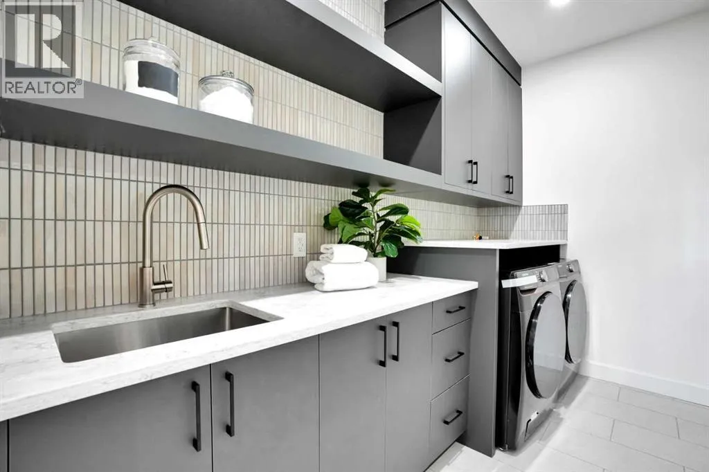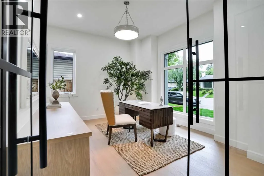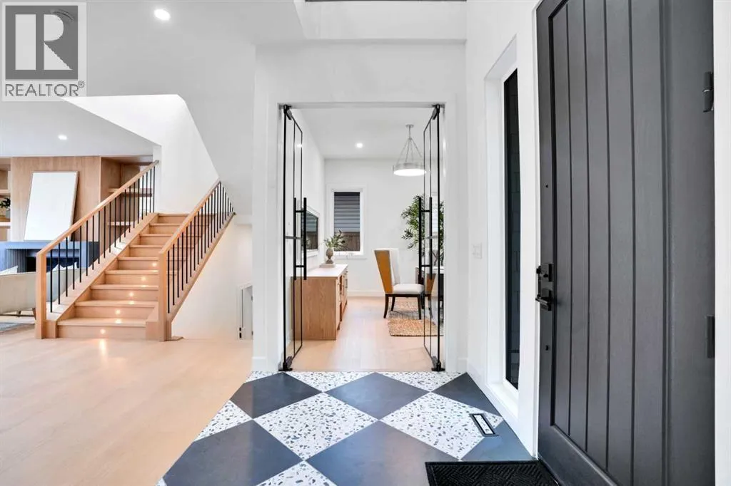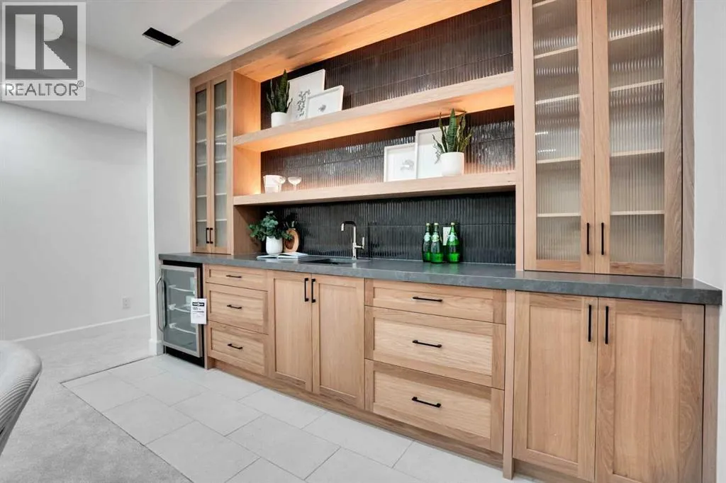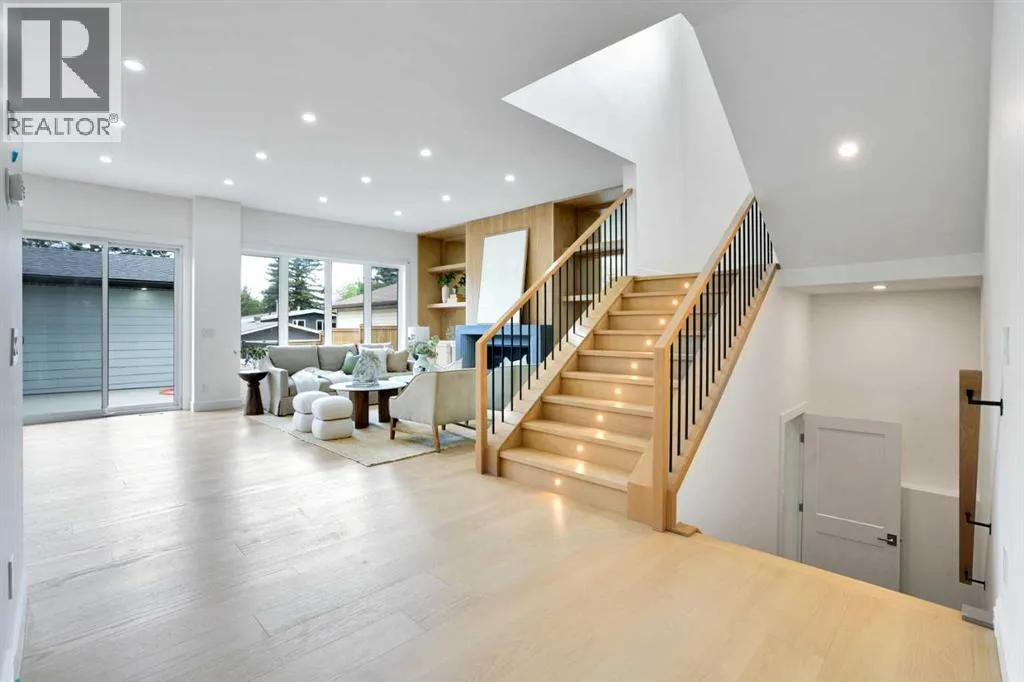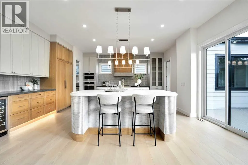 ***OPEN HOUSE Sunday Nov.16 from 2pm-4pmThis NEW Luxurious & Modern home Built by Craft Haven Homes and creatively designed by Maxime Chin is built for the discerning family. This architectural masterpiece offers a well thought out bright and airy functional layout. Located on the quiet tree lined Lacombe Way in the family friendly prestigious community of Lakeview. Boasting over 4,700 sq. ft. of luxury living on 3 levels. With 5 bedrooms & 5 Bathrooms This is a must-see home, showcasing many features including natural materials, bold design, and an exceptionally functional layout and conveniently located steps to shopping, coffee shop and restaurants. The welcoming exterior showcases a sophisticated mix of natural stone, Hardie shingles, and expansive black-framed windows, creating a bold yet timeless first impression. Upon entering the Grand Entrance, you are flanked by a formal dining room and private office at the front of the home. The open-concept sun filled main floor boasts 10-ft ceilings, expansive windows, creating an airy and inviting atmosphere. Chef inspired Kitchen features two custom stone wrapped waterfall islands with quartz counters. Upgraded JENNAIR built-in appliance package includes, a gas cooktop, built in range & microwave ovens, paneled fridge/freezer, and custom oak cabinetry, and two bar fridges. A convenient butlerâs pantry adds convenience and storage leading to the formal Dining Room. The expansive living room centers around a striking stone gas fireplace with built-ins and floor-to-ceiling windows. Large patio doors blend the Indoor-Outdoor Connection leading to the rear deck and landscaped fully fenced backyard ideal for summer gatherings, or quiet evenings. You will love the spacious mudroom with custom built-ins and bench seating connects directly to the oversized TRIPLE ATTACHED GARAGE. Heading upstairs the peaceful Bonus room greets you at the top of the stairs along with 3 bedrooms. The primary suite boasts vaulted ceilings, spa-i nspired ensuite with heated floors, steam shower with rain feature, freestanding soaker tub, dual vanities, and an oversized walk-in closet with custom storage. Two additional bedrooms each feature walk-in closets; one includes a private ensuite with waterfall quartz vanity. A vaulted-ceiling bonus room, full dual-vanity bathroom, and a laundry room with custom cabinetry complete this level. The Fully Developed Basement is designed for both entertainment and comfort, featuring a spacious rec room with custom wet bar, a dedicated home gym with rubber flooring, two additional bedrooms with walk-in closets, and a full bathroomâperfect for guests or extended family. This home is more than a residenceâit is a modern sanctuary, blending innovative design, luxurious finishes, and an unbeatable Lakeview location close to Glenmore Reservoir, Weaslehead pathways, top-rated schools, and quick access to the Ring Road and downtown is only 12 minutes away. LOOK FOR VIRTUAL TOUR LINK FOR DETAILED PICTURES AND FLOOR PLAN (id:27476)
