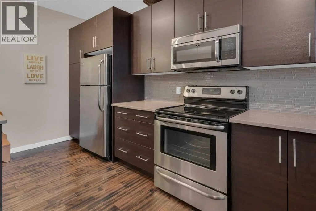 Step into contemporary elegance with this stunning, move-in-ready 4-bedroom 2.5 bath townhome with double attached garage in the highly desirable community of New Brighton. Offering over 1600 sq. ft of sophisticated living space, this property is perfectly suited for modern families, professionals, or first-time owners seeking comfort, convenience and quiet. Upon entry, the bright, open-concept main floor, showcases the gleaming hardwood floors and an abundance of natural light. The spacious living room flows seamlessly into the dining area and a chef-inspired kitchen, highlights stainless steel appliances, quartz countertops and ample cabinetry. Glass doors off the dining area lead out to your west-facing patio for effortless grilling and outdoor relaxation. Upstairs, you'll find three well-proportioned bedrooms. The generous primary suite is a true retreat, boasting a large walk-in closet and a luxurious 4-piece ensuite bath. Two additional well-sized bedrooms are perfect for children or guests, serviced by a second full bathroom with the convenience of a dedicated upper-floor laundry area. The lower level extends the living space with a fourth bedroom/office space/flex room and additional utility room with storage. Added convenience with a double attached heated garage plus guest parking directly across from the townhome. Located in a well-managed, pet-friendly complex, you're just moments from local schools, various parks, and sports fields and the renowned New Brighton Community Centre, offering year-round fun from splash parks to outdoor hockey, is a short drive away. Plus, the nearby shops, services, and dining of High Street in McKenzie Towne ensure everything you need is close at hand. Don't miss the chance to own an upgraded, stylish home in one of Calgary's most vibrant communities. Schedule your private viewing today! (id:27476)