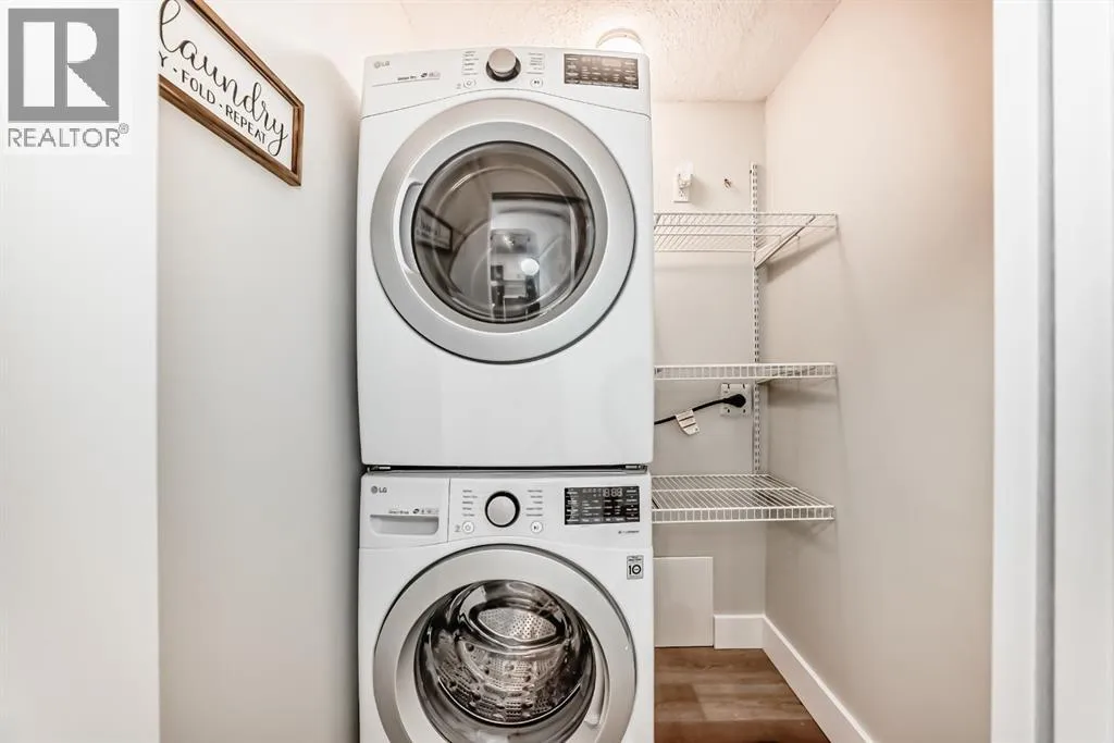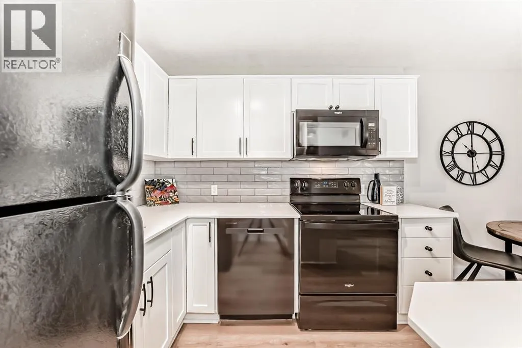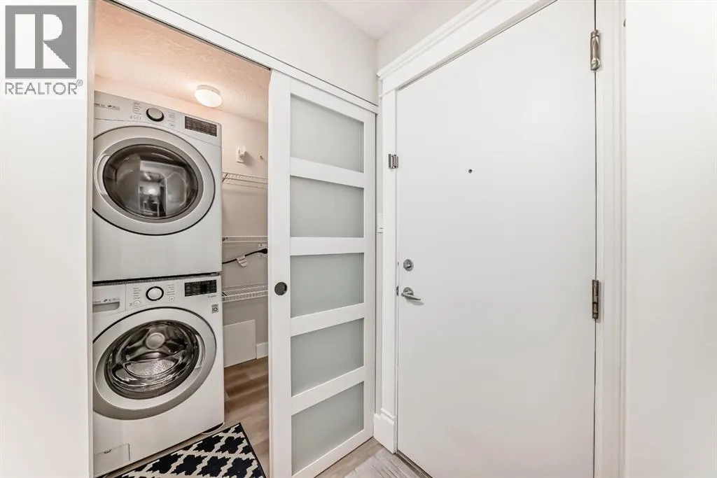 "" OPEN HOUSE: THURSDAY, , NOVEMBER 13, 4:00 - 6:00 PM "". Welcome to The Kitsilano â ideally situated on a quiet, tree-lined street just one block from vibrant 17th Avenue, offering easy walking access to renowned restaurants, pubs, boutique shops, and local services.This beautifully renovated one-bedroom suite features new luxury vinyl plank flooring throughout, quartz countertops, fresh paint, and new tile in both the kitchen and bathroom. The open-concept layout is thoughtfully designed, with a modern kitchen showcasing professionally painted maple shaker cabinets that open seamlessly to the dining and living areas. From there, step out onto your north-facing balcony overlooking the charming front street.The suite also includes an in-suite front-loading washer and dryer conveniently located in a large storage room off the front entrance. The spacious, updated bathroom offers a deep soaker tub with elegant tile surround. The bedroom provides generous closet space and a large window for natural light.Additional highlights include a dedicated parking stall at the rear of the building and pet-friendly policies (one dog or two cats, up to 15 kg each, with board approval).This well-managed concrete building features very reasonable condo fees that include all utilities except electricity. Offering an unbeatable lifestyle in one of Calgaryâs most desirable locations, this suite is move-in ready.Previously used as a rental prior to the renovation â furniture is available for negotiation. (id:27476)