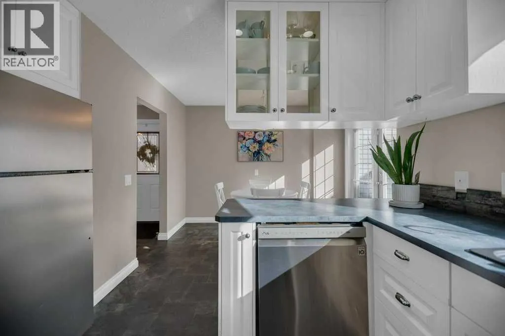 Open House: Nov.9th 2-4pm. Truly a sweet immaculate, upgraded 3 bedroom backsplit (4 levels) on quiet crescent with Lake Access, having great exterior appeal, private treed west yard, 3rd level walk-out and short walk to lake. Enter foyer to living room dining room combination with vaulted ceilings, hardwood flooring and large picture window to treed front yard. Bright kitchen with white cabinets, âUâ shaped counter, lots of cupboards, pantry and adjacent bright eating nook with French doors to composite decking to back yard. Upper level primary bdrm with custom wall unit closet system, 2 good size kids bdrms and closets. Large 3 pc bathroom with 6 ft swirl tub. 3rd level, open and bright family room, brick facing fireplace surrounded by bookcase/curio cabinets and mantle. Large 4th bedroom or office and 3 pc bathroom. Rec Rm in lowest level. Enjoy the attached garage; Note all newer windows, 2023 (except living rm), Added attic insulation 2023, plug-in heat cables for roof/shingle perimeter of home. Great location, walking distance to several parks including the lake with tennis, skating etc and many different community events, schools. Walk to bus to LRT or easy direct drive downtown, Golf nearby within Fish Creek Park with many bike and river walking trails and views. Enjoy all the summer and winter lake activities and trails in Fish Creek Park. (id:27476)
