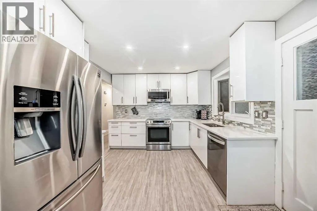 Welcome to this beautifully updated and impeccably maintained home with approx. 2000 sq ft of developed space in the highly sought-after community of Huntington Hills â where modern comfort meets timeless charm in an unbeatable location. Just a short distance from the heart of Calgary, this home offers bright, open-concept living with stylish upgrades throughout. The fully renovated kitchen is a showstopper, featuring quartz countertops, a sleek tile backsplash, stainless steel appliances, and generous cabinetry â a true dream for any home chef.The spacious living room invites relaxation with high-end vinyl plank flooring, recessed lighting, large windows that fill the space with natural light, and a cozy electric fireplace perfect for unwinding at the end of the day.With four bedrooms in total â including a generous primary and secondary bedroom upstairs, plus two additional rooms on the lower level â this home provides flexible living for families, guests, or a home office setup. Both bathrooms have been beautifully renovated to create spa-like experiences, and the lower levelâs large windows make it bright, warm, and inviting. The basement also offers endless possibilities â from a family rec room or fitness area to a comfortable media or hobby space.Step outside to your own private oasis: a fully fenced, low-maintenance, south-facing backyard framed by mature trees â perfect for summer barbecues, morning coffee, or relaxing in the sun.Additional highlights include a single-car garage, a newer furnace, and some updated windows. The location is second to none â within walking distance to multiple schools (Alex Munro, St. Hubert, and Diefenbaker High), as well as parks, shopping, and restaurants. Easy access to Deerfoot Trail ensures effortless commutes and connectivity to all parts of the city.Whether youâre a growing family, a downsizer seeking comfort and quality, or an investor looking for a move-in-ready opportunity, this home truly has it all â space, st yle, and location. Donât miss your chance to own this exceptional property in one of Calgaryâs most established and family-friendly neighborhoods. Book your private showing today and experience why this Huntington Hills gem wonât be available long! (id:27476)