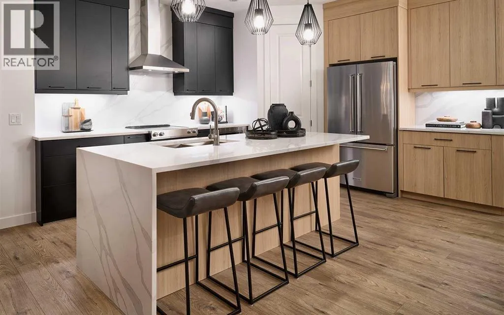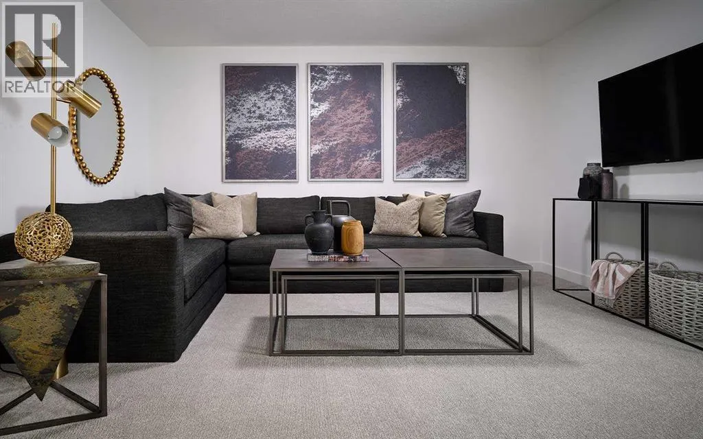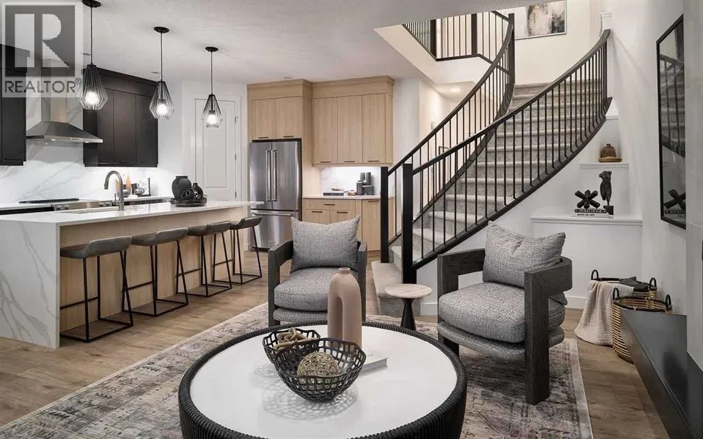 Welcome to the Robson 24 by Brookfield Residential - a stunning, move-in ready home that combines timeless design with modern functionality. Perfectly situated in the heart of Rockland Park, this home sits on a large lot offering additional space and privacy. Boasting nearly 2,300 sq. ft. of beautifully designed living space above grade, this home seamlessly blends open-concept living with thoughtful details throughout. The grand front foyer opens into a bright and airy main level featuring 9-foot ceilings, wide sightlines, and a natural flow between the living, dining, and kitchen areas. The gourmet kitchen is a chefâs dream, complete with a built-in chimney hood fan, built-in microwave, and gas range - all framed by elegant full-height cabinetry, quartz countertops, and a large central island perfect for entertaining. The kitchen overlooks the inviting living room, where a central fireplace anchors the space and creates the perfect setting for cozy evenings. A wall of windows floods the home with natural light, highlighting the spacious dining area that opens to the sunny backyard. A large main-floor office space with a full bathroom provides incredible flexibility for multi-generational living, guests, or a dedicated home office. At the heart of the home, a signature curved staircase creates a striking architectural statement - an elevated design feature rarely seen in todayâs market. Natural wood and iron spindle railings lead to the upper level which opens to a central bonus room, intelligently separating the primary suite from the secondary bedrooms for optimal privacy. Vaulted ceilings in the primary bedroom create an open and spacious room that offers a luxurious 5-piece ensuite with a deep soaker tub, dual vanities, private water closet, walk-in shower with 10mm glass and an expansive walk-in closet. Two additional bedrooms, a full bathroom, and a spacious upper-floor laundry room complete the second level. The undeveloped basement features 9' foundation wa lls, bathroom rough-ins and a 200 amp panel, making future development that much easier. Outside, the backyard is a sun-filled retreat, providing the perfect space for outdoor entertaining and everyday relaxation. Backed by Brookfieldâs comprehensive builder warranty and the Alberta New Home Warranty Program, this brand-new property offers complete peace of mind. With its architectural charm, premium finishes, and unbeatable Rockland Park location, the Robson 24 is the perfect blend of sophistication, comfort, and practicality - ready for you to call home. *Please note: Photos are of a show home model and not an exact representation of the property for sale. Interior finishes shown on photo 2. (id:27476)