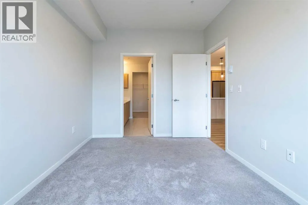 Modern, Private and Spacious (Builder measurement is 904 sqft) | Move-in ReadyWelcome to this brand-new listing in the desirable community of Harvest Hills, Calgary! This spacious 2-bedroom, 2-bathroom apartment offers a perfect blend of comfort and modern style, featuring 9â ceilings, LVP flooring, Low-E triple-glazed windows, electric baseboard heating, a BBQ gas line on the balcony, titled underground parking, and much more.As you enter, youâll immediately appreciate the open-concept layout showcasing a stunning kitchenwith quartz countertops, stainless steel appliances, ample cabinetry, an elegant backsplash, a corner pantry, and a central breakfast island. The kitchen flows seamlessly into the dining area and a bright living room overlooking the green space.Both bedrooms are generously sized, including a primary suite with a walk-in closet and a private ensuite featuring a standing shower. The second bedroom is conveniently located next to the main full bathroom. Youâll also enjoy the convenience of in-unit laundry with extra storage space.Step out onto your large, private balcony â the perfect spot for morning coffee or evening relaxation. The unit also includes AC rough-in, offering peace of mind for future installation.Located in a vibrant community filled with amenities, youâll have access to tennis courts, nearby schools, parks, shopping at Coventry Hills Centre, VIVO Recreation Centre, grocery stores, restaurants, cafés, Home Depot, Superstore, Cineplex, TNT Supermarket, and the North Pointe Bus Terminal. All this and just under 10 minutes to Calgary International Airport and minutes from Deerfoot and Stoney Trail.Donât miss your chance to call this beautiful apartment home â book your showing today and be sure to check out the virtual tour! (id:27476)