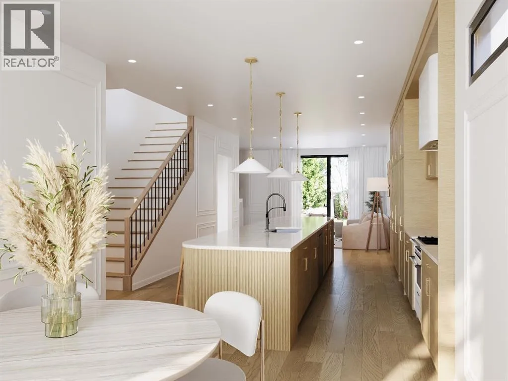 Exclusive pre-sale opportunity in the highly sought-after community of Richmond. This stunning residence, designed by JTA Designs, offers over 2,400 square feet of thoughtfully planned living space. Upon entry, a grand foyer welcomes you into the main level, featuring soaring 11-foot ceilings and elegant hardwood floors throughout. The formal dining area, accented with custom wainscoting, is filled with natural light from expansive windows. The designer kitchen boasts a striking 14-foot fluted curved island with a Taj Mahal countertop, premium appliances, gold and black fixtures, white oak shaker cabinetry, a plaster chimney hood, a black granite sink, and under-cabinet lighting. The spacious great room is anchored by a custom tiered gas fireplace finished with fluted tile, built-in shelving, and cabinetry. A separate mudroom with built-ins and a bench provides ample storage. Upstairs, nine-foot ceilings and hardwood floors continue through the hallways, leading to a beautiful primary suite with vaulted ceilings, wainscoting, and a luxurious five-piece ensuite complete with heated floors and a steam shower rough-in. Two additional bedrooms, one with private access to a three-piece bath, and a convenient laundry room complete the upper level. The fully finished basement includes a large recreation area, an additional bedroom, and a three-piece bathroom. Both units are available. Contact us today to schedule your private tour. (id:27476)