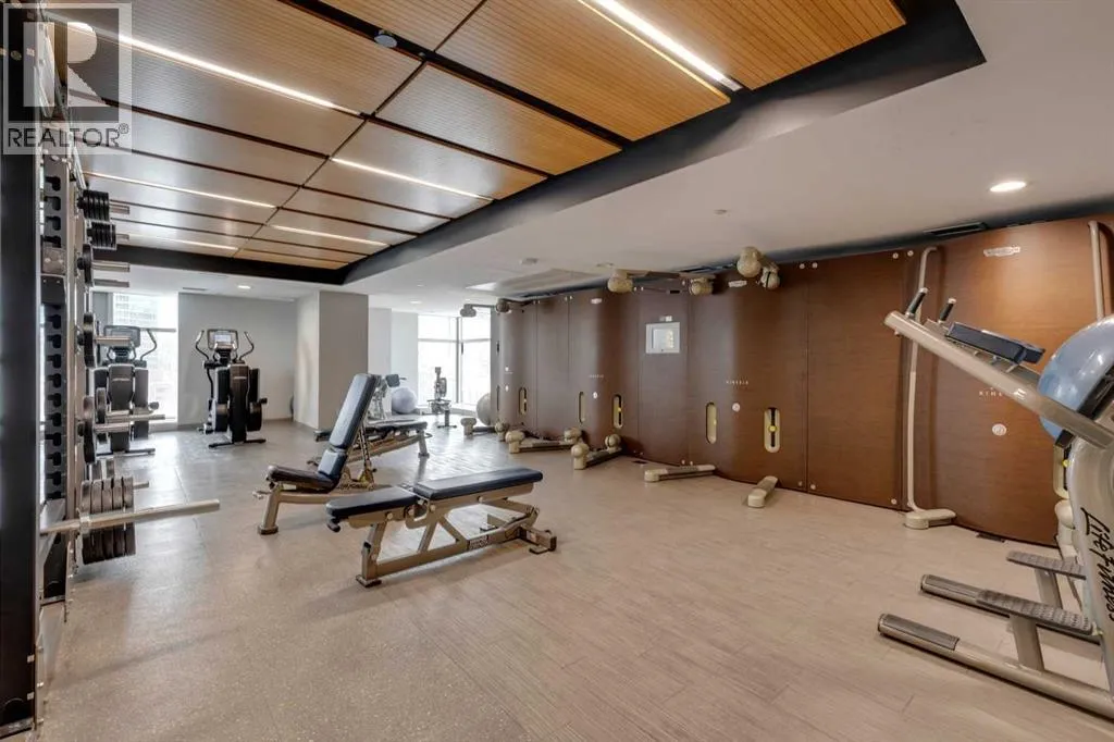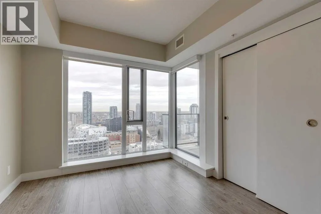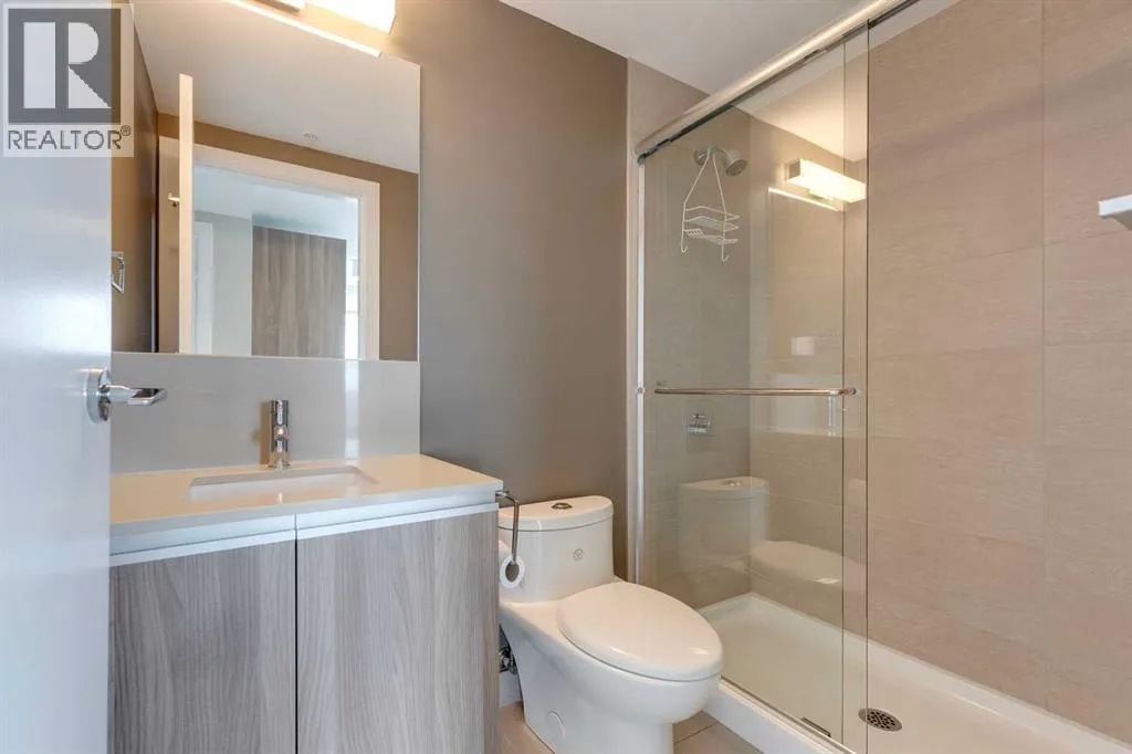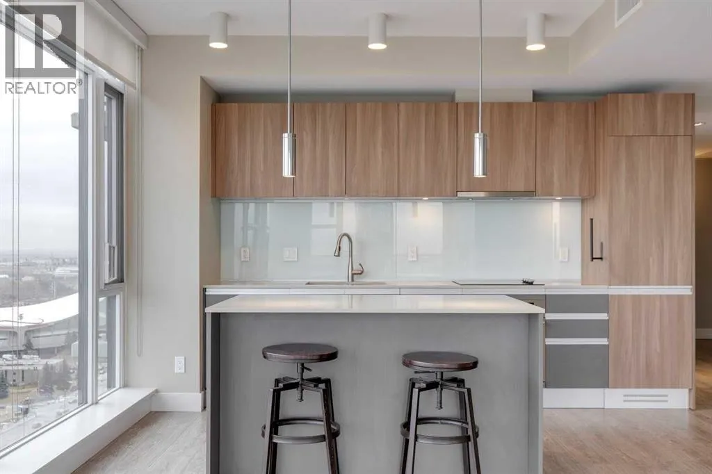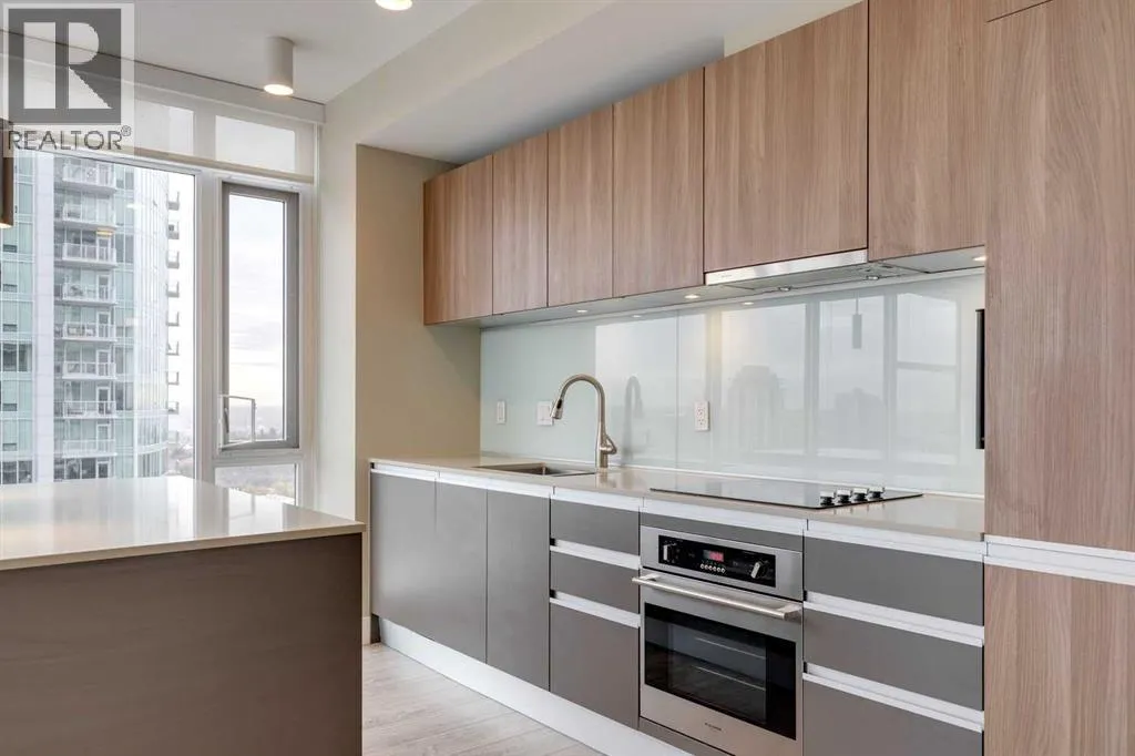Welcome to The Guardian â Where Contemporary Design Meets Urban Sophistication. Perched on the 22nd floor and occupying the coveted northeast corner, this 2-bedroom, 2-bath residence offers panoramic views of downtown Calgary and the vibrant city skyline. Step inside to discover a sleek, European-inspired kitchen featuring integrated appliances, smooth-panel cabinetry, under-cabinet lighting, and a stylish central island that seamlessly connects to the open-concept living area. Expansive floor-to-ceiling windows flood the space with natural light, creating an airy, modern atmosphere ideal for both relaxing and entertaining. Both bedrooms are generously sized, including a primary suite with a 4-piece ensuite featuring a tub-shower combo. The second bedroom is served by a contemporary 3-piece bathroom with a walk-in glass shower. Additional highlights include in-suite laundry, a spacious balcony perfect for morning coffee or evening sunsets, titled underground parking, and assigned storage. As a resident of The Guardian, youâll enjoy access to exceptional amenities: a fully equipped fitness centre, yoga studio, resident lounge, games and social rooms, workshop, garden terrace, secure bike storage, and 24-hour concierge service for ultimate convenience and peace of mind. Ideally located just steps from the Saddledome, East Village, Central Library, Stampede Park, and Calgaryâs best dining, shopping, and entertainment â this is urban living at its finest. Book your private showing today and experience life at The Guardian. (id:27476)