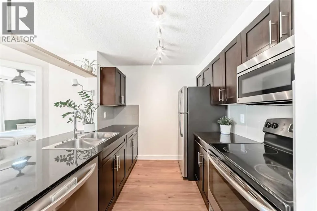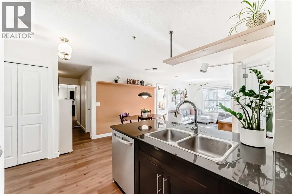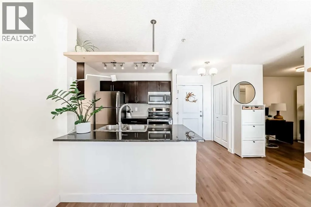 Welcome to this bright and spacious 2-BEDROOM PLUS DEN, 2-BATHROOM apartment featuring TWO UNDERGROUND PARKING STALLS! This beautiful home offers numerous upgrades, including NEW LUXURY VINYL PLANK FLOORING throughout with an EXTRA LAYER OF SONOPAN INSULATION, and NEW VINYL TILE in both bathrooms. The OPEN-CONCEPT layout creates an inviting space for everyday living and entertaining. The kitchen features GRANITE COUNTERTOPS and a BREAKFAST BAR, perfect for meal prep or casual dining. The dining area easily accommodates a larger table, while the cozy living room is ideal for relaxing at the end of the day. The primary suite offers SPACE FOR A KING-SIZED BED, a walk-through closet, and a private ensuite bathroom. The second bedroom is generously sized, and the DEN provides flexibility for a home office, study area, or extra storage. Additional highlights include IN-SUITE LAUNDRY, two titled underground parking stalls, ample visitor parking, and UPDATED COMMON AREAS. Young families will love the NEARBY GREENSPACE and PLAYGROUND. WALKING DISTANCE TO THE FRANKLIN C-TRAIN and minutes from Deerfoot Trail, schools, shopping, and all amenities. Donât miss outâbook your showing today! (id:27476)