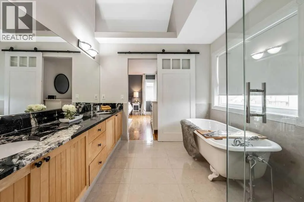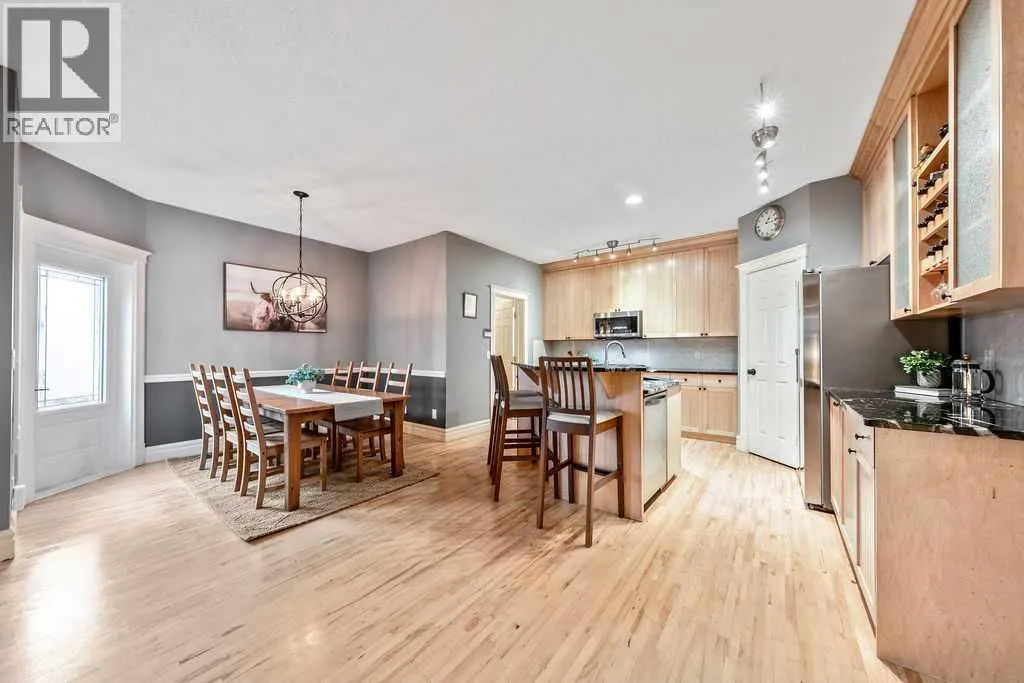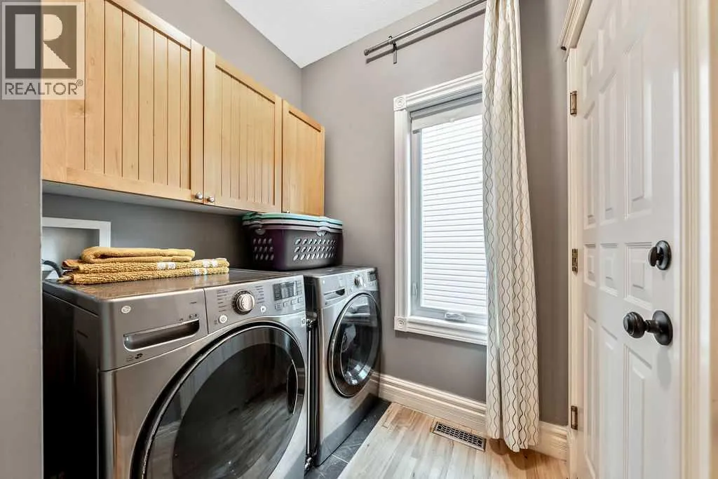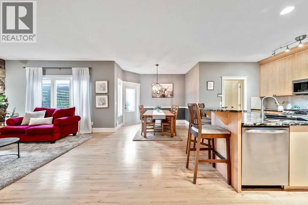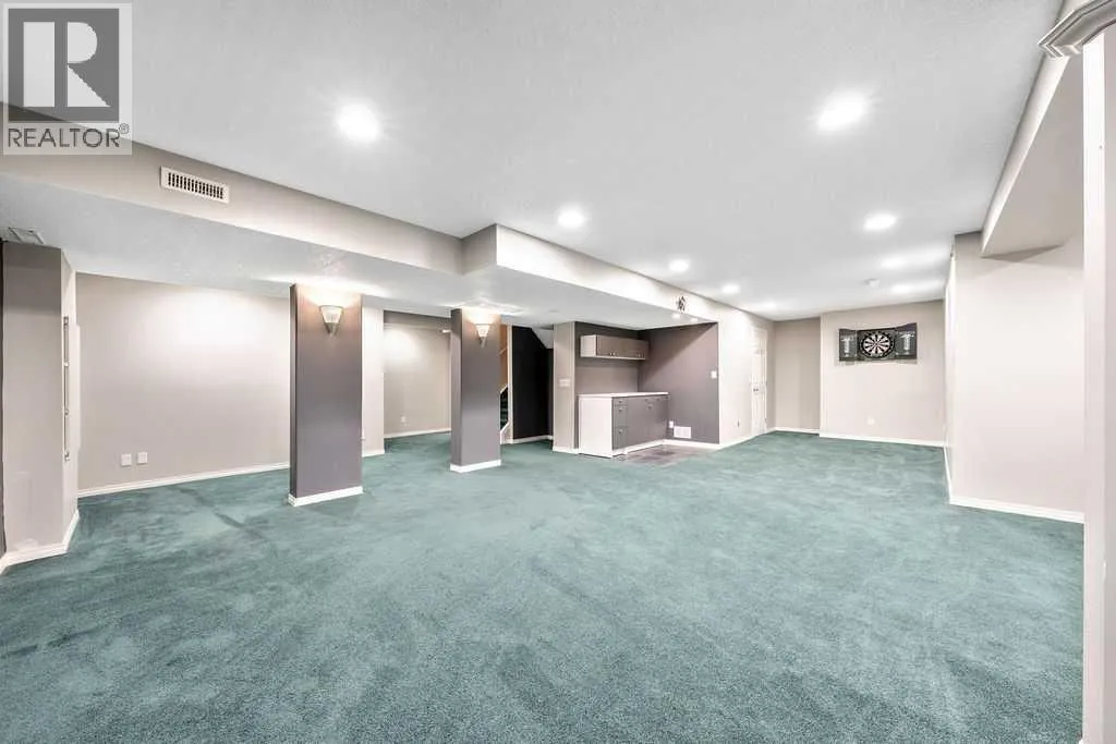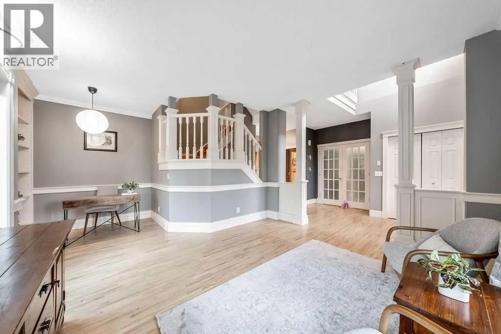 Welcome home to this beautifully updated property designed with family living in mind. From the moment you step into the grand foyer with its vaulted ceilings, youâll feel the warmth and space this home offers. The front living roomâwith custom built-in bookcasesâmakes a perfect spot for reading, relaxing, or working from home. Maple hardwood floors flow throughout the main and upper levels, adding a sense of continuity and timeless charm.The bright, open kitchen is the heart of the home, featuring granite countertops, full-height cabinetry, and stainless-steel appliances. Thereâs plenty of prep space for cooking together or hosting holiday dinners. The adjoining dining area easily accommodates large gatherings, while the family room invites cozy nights by the gas fireplace and stone feature wall. A rear mudroom leads directly to the attached garage. Completing the main level are half bath, laundry area, and private self-contained office with separate entrance -ideal for home-based business or extended family use.Upstairs, the spacious primary suite offers a peaceful retreat with a large walk-in closet and luxurious ensuite featuring a freestanding tub, glass shower, and dual vanities. Three additional bedroomsâeach with its own walk-in closetâprovide plenty of space for growing kids or guests, while a full guest bath serves the family with ease. The third-floor loft is a perfect hangout or study space, complete with new carpeting, built-in bench seating, and mountain views.The fully developed basement is designed for fun and flexibility, featuring a fifth bedroom with ensuite, a large recreation room with dartboard, and a dry bar area for casual entertainingâideal for teenagers, in-laws, or weekend guests.Outside, enjoy a private backyard retreat with a gas line for your BBQ, a built-in hot tub, and a gazeboâperfect for family get-togethers or quiet evenings under the stars.This home has been extensively updated over the past three years, including new shingl es, furnace, hot water on demand, triple-pane windows (above grade), garden doors, garage door, fireplace insert, third-floor carpeting, appliances, front railing, and new siding, eavestroughs, and downspouts on both the north and south sides.A rare opportunity to own a move-in-ready, multigenerational home offering incredible value and lifestyle in one of Calgaryâs premier lake communities. (id:27476)