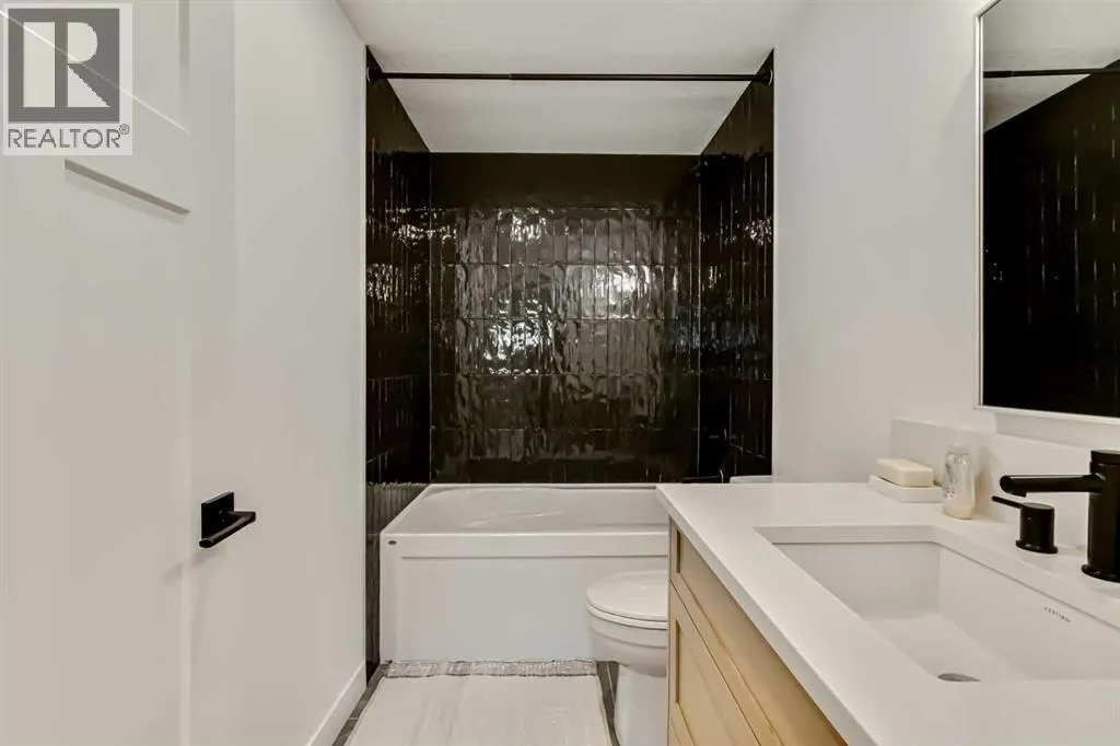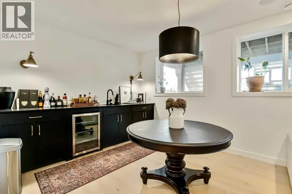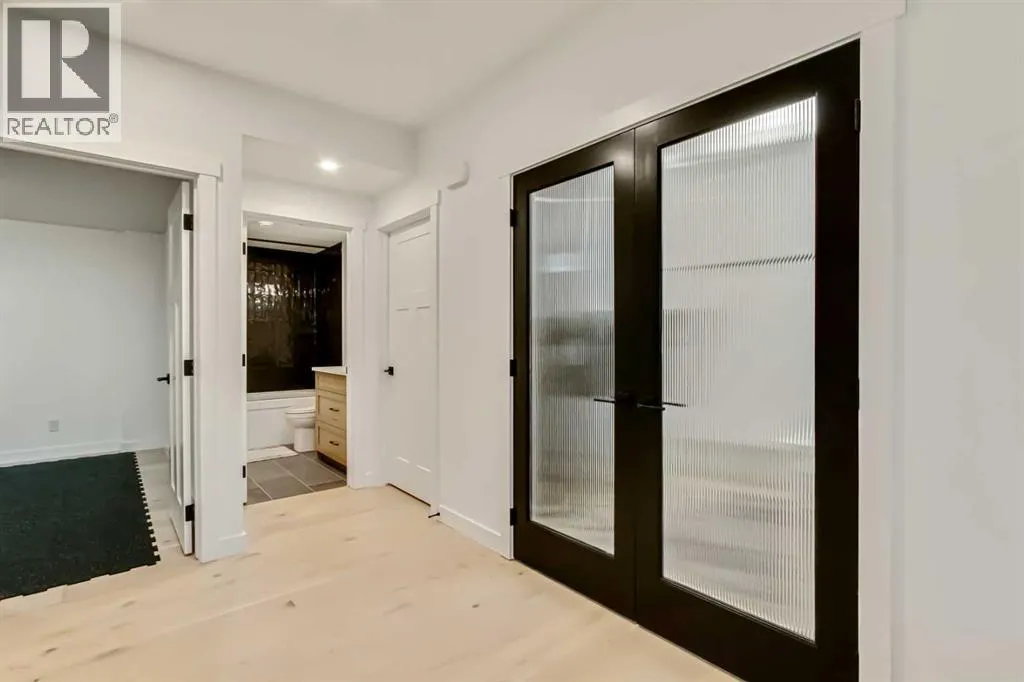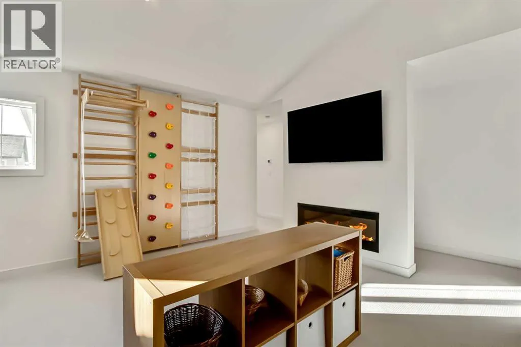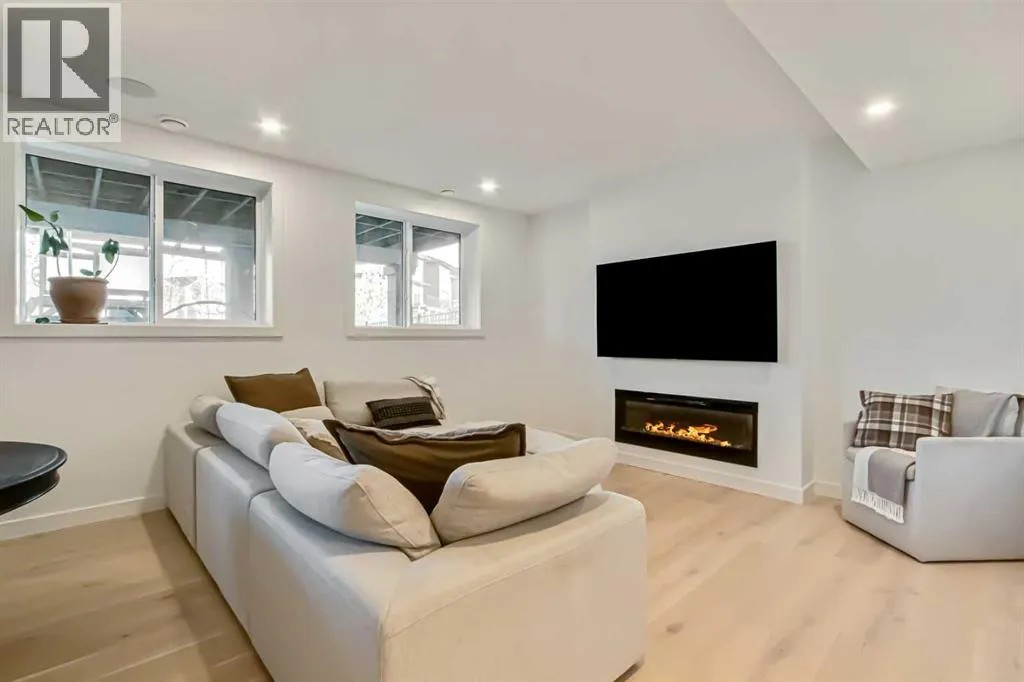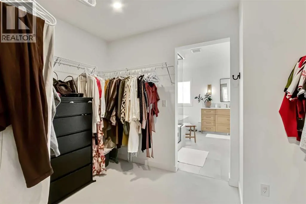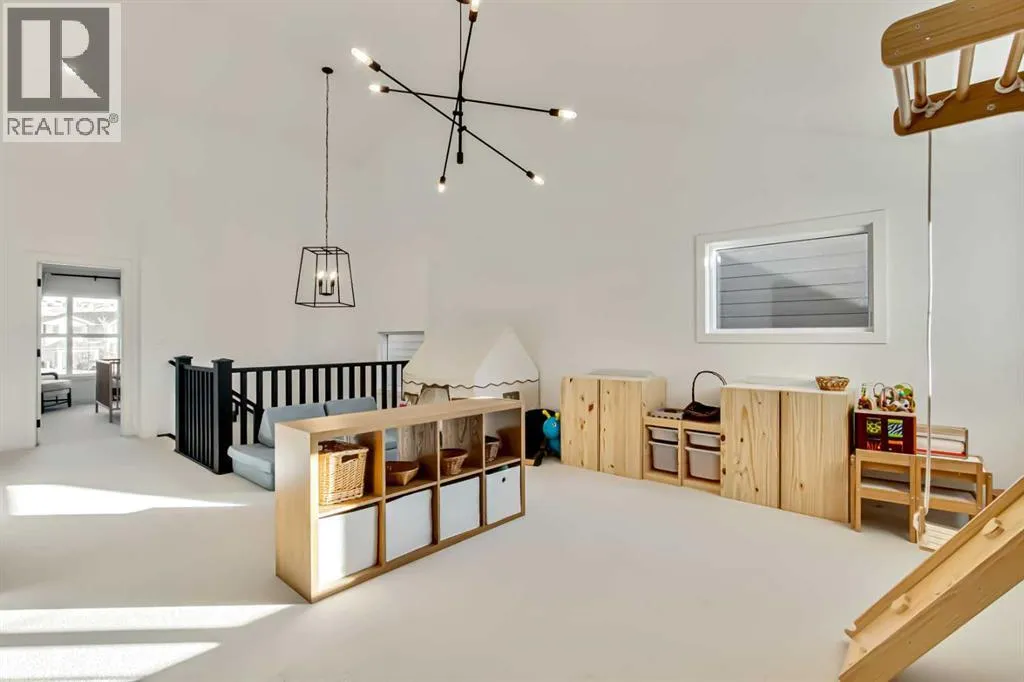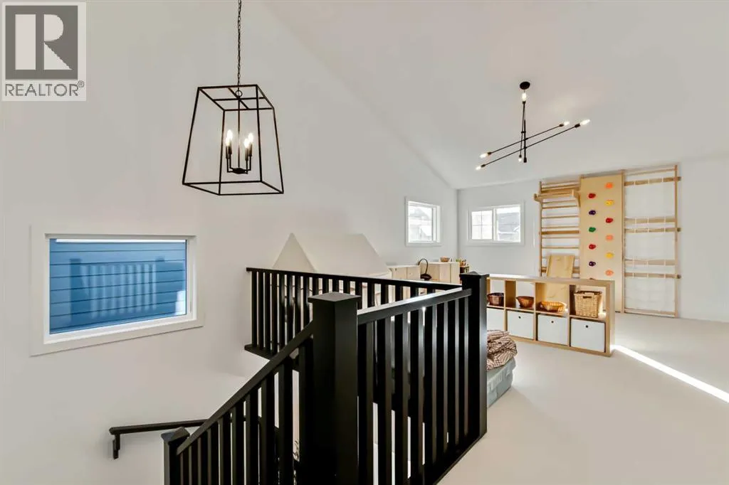 Welcome to this stunning, fully upgraded 4 bedroom, 3.5 bath home in the highly sought after community of Cranstonâs Riverstone. Perfectly positioned backing onto green space and just steps from the river, walking paths and the pond, this 2,402 sq.ft home blends luxury finishes with thoughtful design. The main floor offers an elongated entryway leading to an open concept living area flooded with natural light, a beautiful gas fireplace surrounded by custom built ins, a gourmet kitchen with quartz counters and backsplash, upgraded KitchenAid black stainless steel appliances, gas range with pot filler, custom hood fan, farmhouse sink, dining room, large walk in pantry and designer lighting. A custom mudroom with built in lockers adds everyday convenience. Upstairs features three bedrooms and two full baths, including a secondary bath with double vanities - perfect for sharing. The primary bedroom impresses with vaulted ceilings, a spa like ensuite, complete with a freestanding tub, rain shower with marble and zellige style tile, separate vanities and a large walk in closet connected to a convenient laundry room. A spacious vaulted bonus room completes the upper level. Downstairs, the fully finished basement includes a fourth bedroom, office space, full bath, wet bar with quartz counters/sconces and a cozy living area with an electric fireplace - ideal for entertaining. With over 100k in premium upgrades, including heated floors, custom cabinetry, built in speakers, smart lighting and rough ins for A/C and central vac, this home offers modern comfort and timeless style in a beautiful natural setting. (id:27476)