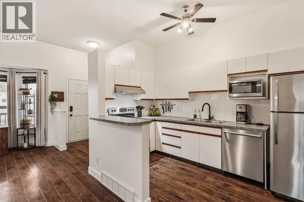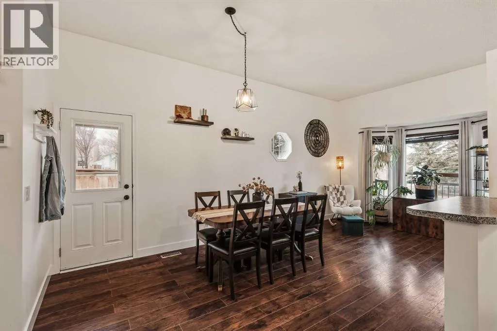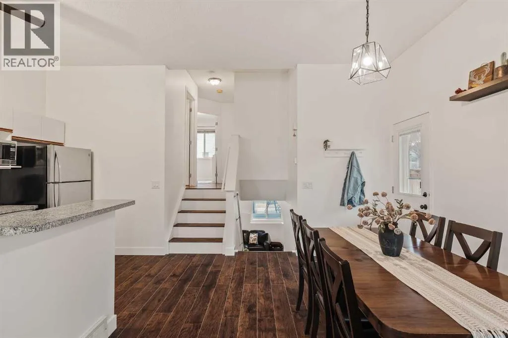 Welcome to this beautifully updated 4-level split townhouse in the established community of Hidden Valley. Offering over 1,500 sq. ft. of developed living space, this home features 2 bedrooms, 2 full bathrooms, and a bright, versatile layout designed for functional living. Enjoy fresh paint, new flooring, and updated baseboards throughout. As an end unit, this home shares only one wall, offering extra privacy and natural light, with parking conveniently located right outside your door.The main level welcomes you with soaring 10-ft ceilings and a large bay window that fills the living area with sunlight. The adjoining kitchen and spacious dining area feature a side entrance to your private yard, creating a seamless flow for both everyday living and entertaining. The open concept design allows flexibility to create a distinct dining area or expanded living space, whichever best suits your lifestyle.Upstairs, youâll find two comfortable bedrooms, including a primary suite with a generous walk-in closet, along with a well-appointed main bathroom. The developed lower level offers a cozy family room complete with a gas fireplace and plenty of natural light â perfect for relaxing or hosting guests.Down one more level, the fully finished basement includes a flexible den or office space, a 3-piece bathroom, laundry and utility room, a dedicated storage room, and an additional 250+ sq. ft. of crawlspace storage. The exterior has been recently refreshed with new roof, siding, and eaves, ensuring peace of mind and lasting curb appeal.Hidden Valley is a sought-after northwest Calgary community celebrated for its natural beauty, peaceful atmosphere, and convenient location. Residents enjoy easy access to Nose Hill Park, scenic pathways, and nearby golf courses â the perfect blend of active outdoor living and suburban tranquility. With quick connections to Stoney Trail, Shaganappi Trail, and Beddington Trail, plus parks, shopping, and amenities just minutes away, Hidden Va lley offers the ideal balance of community, comfort, and convenience. (id:27476)