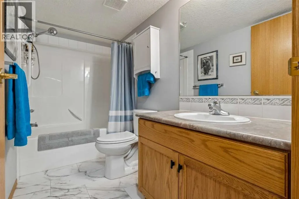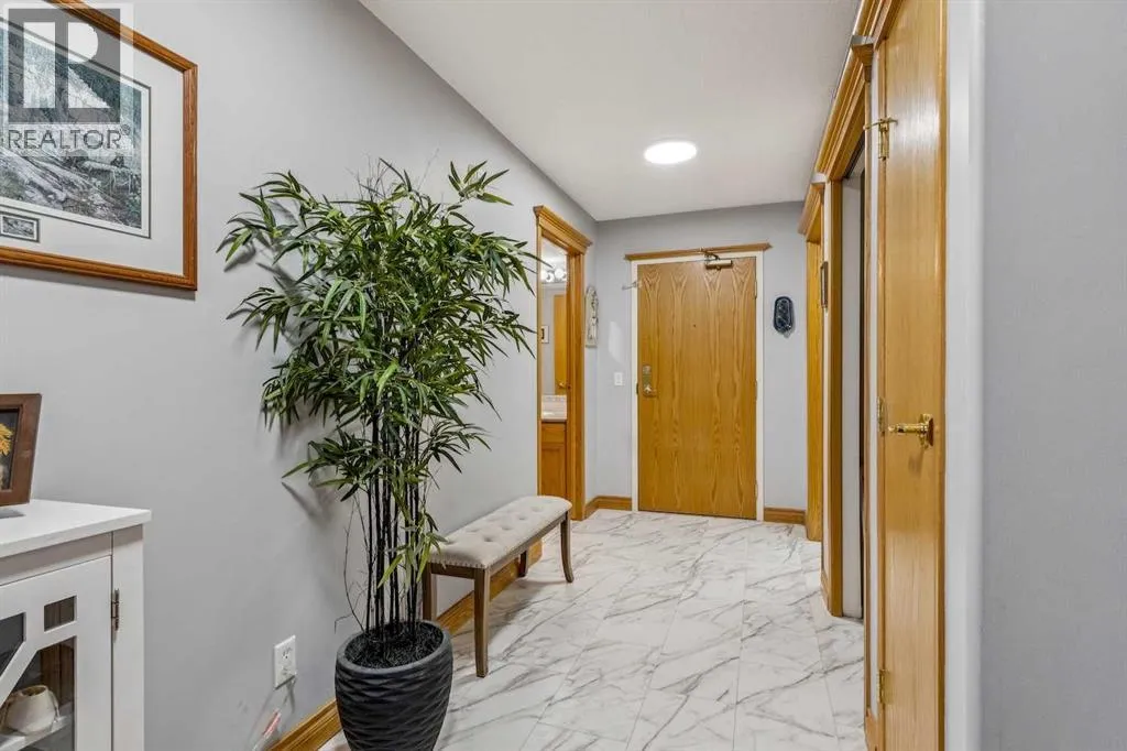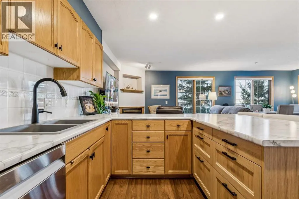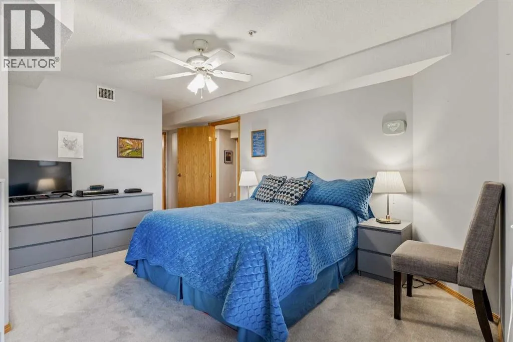 Beautifully upgraded two bedroom, two full bathroom single level lifestyle condo in popular 55+complex of Sierra's of Heritage. Awesome central location. One condo fee includes all utilities. Two assigned underground parking stalls. Storage unit attached to P1 stall. Quality Stainless Steel kitchen appliances. Luxury vinyl waterproof flooring in bathrooms and entrance. Waterproof luxury laminate flooring in living room, kitchen and dining areas. Custom blinds. Air conditioning. Gas fireplace. West facing spacious balcony with gas BBQ outlet. LG washer dryer. Newer carpets in both bedrooms. Recessed lightning in kitchen, newer light fixtures in guest bedroom, front hall and kitchen. Ceiling fan in Master bedroom with walk in closet and 3pce ensuite. Extra large smart diagnosis agitator free washing machine & smart diagnosis dryer in dedicated laundry room. Glass top stove with modern features like Air Fryer convection oven, bake, roast, bread proof and more settings! Oven has both Steam and self clean settings. Two door fridge with separate water door, bottom freezer, auto ice and water line. This unit is close to the elevator for easy access. Fabulous Amenities: secure entry doors to building and underground parking stalls, car wash, wood working shop, hot spot, bicycle racks, exercise room, indoor swimming pool, hot tub, snooker table and two other pool tables, shuffle board, media room with large TV system and hundreds of movies, DVDS & VHS, craft room, common area bathrooms, banquet room, 2 guest suites on each floor, 4 elevators, outdoor courtyard with firepit, plus 15 access to Heritage Square, walking distance to major grocery stores, Heritage LRT, and numerous restaurants and more! Minutes from Rocky View Hospital, Police Station, and centrally located in great community of Acadia. This condo complex is well run and brings more than just a safe place to live, it offers a lifestyle that you can enjoy with all the amenities and social activities available if yo u choose to be part of. Great value here. Easy to view with reasonable notice. (id:27476)