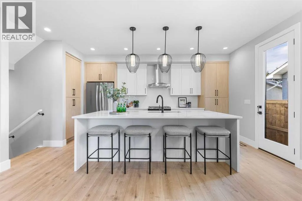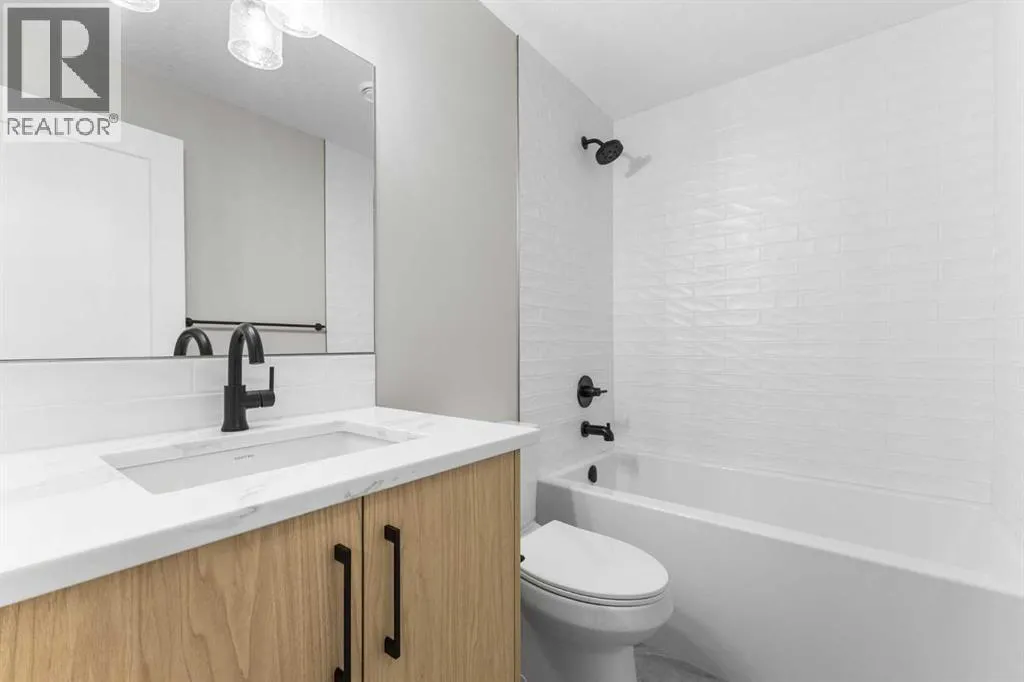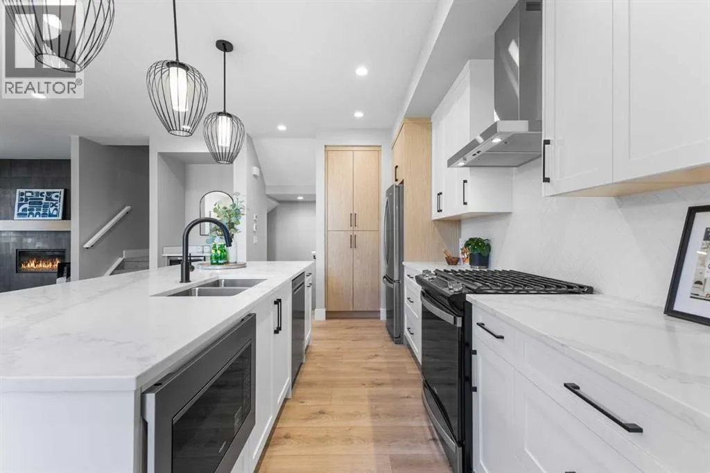 Beautifully designed and brand new, this 3+1 bedroom townhome built by Huber Homes in desirable Westgate offers nearly 2200 sq. ft. of developed living space with high-end finishes and modern comforts throughout! The open main level showcases, recessed lighting and a bright, airy floor plan. The kitchen is a true highlight, featuring a central island with eating bar, contrasting cabinetry, stainless steel appliances and a stylish dry bar. A spacious dining area and inviting living room with gas fireplace complete the main floor â the perfect layout for everyday living and entertaining alike.Upstairs youâll find 3 comfortable bedrooms, including a relaxing primary retreat with walk-in closet and spa-inspired ensuite with double sinks and contemporary finishes. Two good sized bedrooms, a full bath and conveniently located laundry room complete this level.The fully finished basement extends your living space with a generous family/media room, a fourth bedroom and a full bath â ideal for guests, teens or a home office setup.Additional highlights include a front deck with BBQ gas line, a single detached garage, and thoughtful design inside and out. Located just steps from schools, shopping, parks and transit, this home combines style, function and location in one of Calgaryâs sought-after southwest communities. (id:27476)