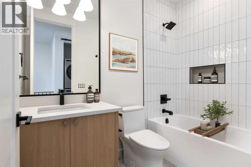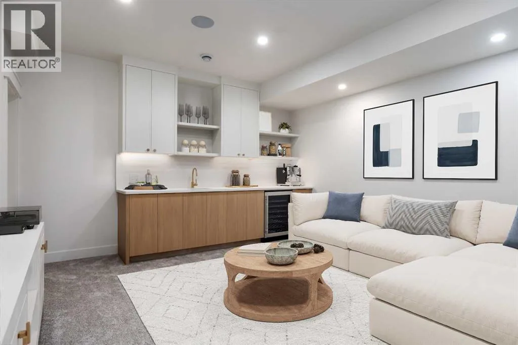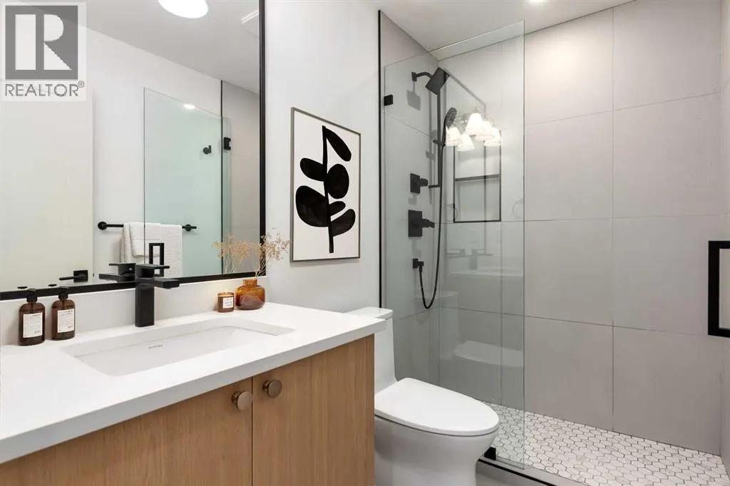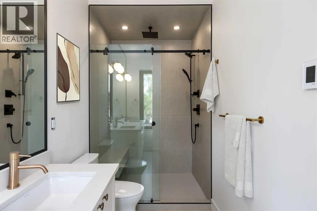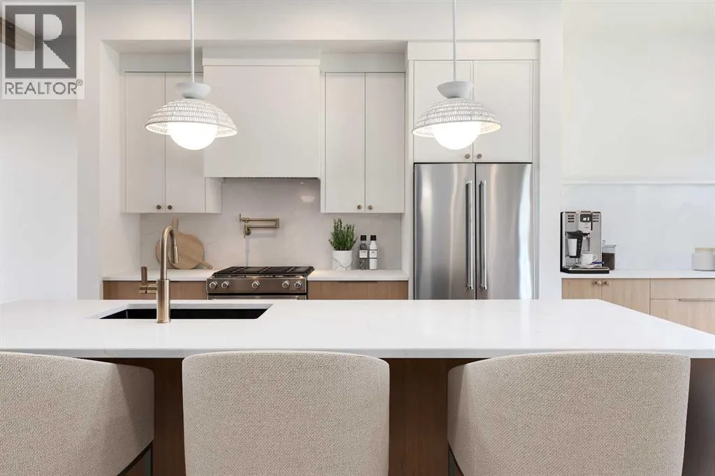 Introducing âThe Jonesâ by A Home Making Company, a boutique builder known for design-driven, meticulously crafted homes in Calgaryâs inner-city communities. Every detail reflects a focus on quality, comfort, and timeless design a combination rarely found in todayâs market. The chef-inspired kitchen features premium KitchenAid stainless steel appliances including a gas range, hood fan, dishwasher, and space-saving drawer microwave. Quartz countertops, a bookmatched backsplash, pot filler, and built-in garbage and recycling drawers combine luxury and function. The main floor offers 10-foot ceilings, exposed beams, and a gas fireplace with AHMCâs signature custom concrete surround. Built-in shelving and a buffet with matching quartz add both storage and style. The front entrance includes a mirror and custom closet organizer, while a vaulted, chic powder room adds architectural detail. Upstairs, the primary suite features vaulted 13-foot ceilings, exposed beams, and oversized windows that fill the space with natural light. A custom walk-in closet with full-length mirror and ample custom storage. Step inside your breathtaking ensuite, heated floors, double vanity, and walk-in shower with floating bench. The second bedroom includes a custom closet organizer and access to a full bathroom, ideal for family or guests. A skylight brightens the landing, complementing the high ceilings throughout. The lower level is designed for entertaining, with a media room, full wet bar, built-in TV wall, under-cabinet lighting, custom shelving, and beverage fridge. A third bedroom and full bathroom offer privacy and comfort, highlighted by sunshine windows and exceptional finish quality. Materials include 7.5-inch oak engineered hardwood, soft-close custom cabinetry, 8-foot doors, and European tilt-and-turn windows with phantom screens. Mechanical features include air conditioning, rough-in in-floor heating, 50-gallon hot water tank, HRV system, sump pump, and programmable Eco B Smart thermostats. The exterior offers a south-facing, low-maintenance yard with BBQ gas line, 7-foot privacy fence and gate and a single detached garage with epoxy floor. The brick and stucco façade with under-mount lighting reflects AHMCâs precision craftsmanship and attention to detail. Modern upgrades include in-ceiling speakers, Telus Fibre Optik, CAT6 wiring, and an epoxy-finished mechanical room with water sensor. Located near top public and Catholic schools, parks, shopping, and major routesâ17th Avenue, Richmond Road, Sarcee Trail, Bow Trail, and Crowchild Trailâthis home offers refined inner-city living without compromise. A Home Making Company doesnât just build houses, they build homes. Experience the difference at The Jones. (id:27476)