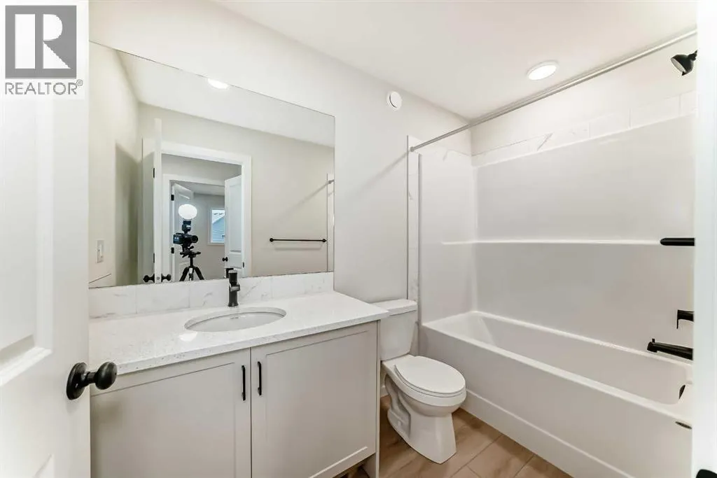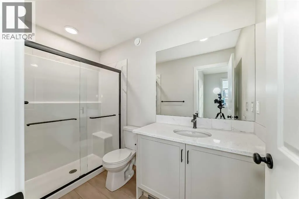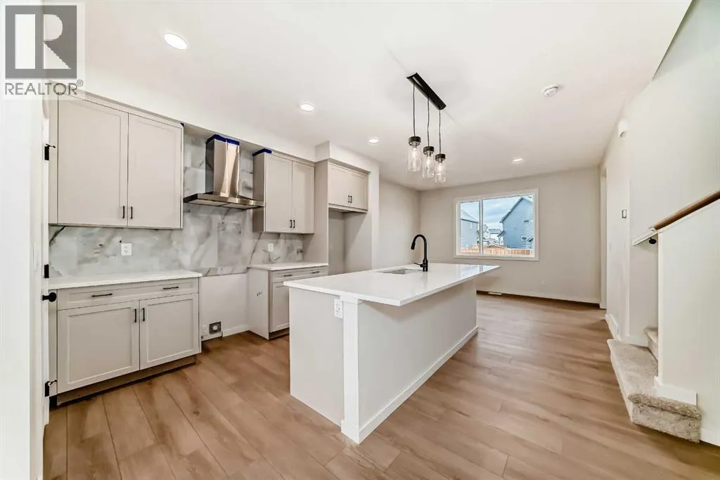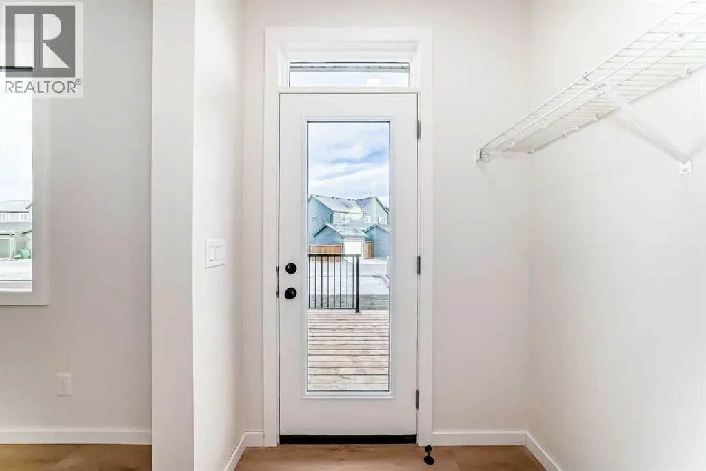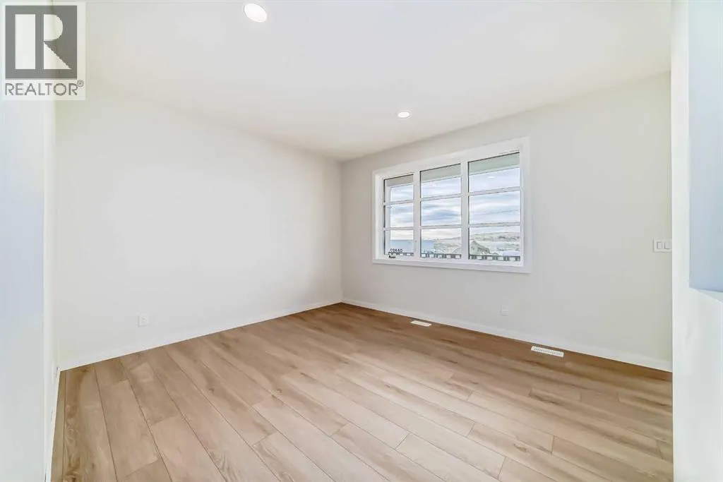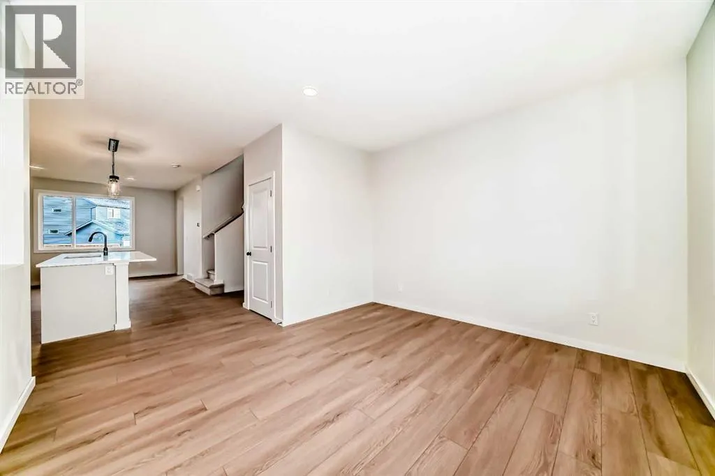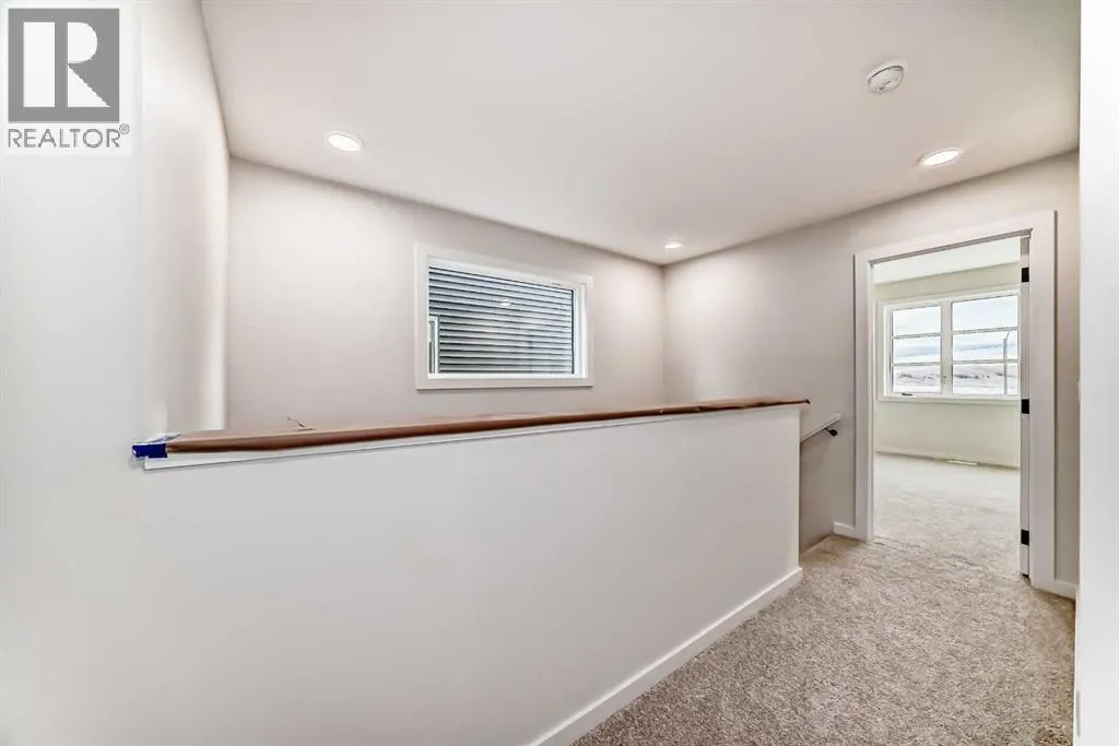 INVEST IN YOUR FUTURE WITH NO CONDO FEES, no yard work to inherit, and no waiting for the right townhome to appearâthis one is already taking shape. BUILT BY HOMES BY AVI - this model puts everyday function first, without sacrificing light, flow, or storage. As the END UNIT in a four-plex, it enjoys extra windows and a quieter side wall while keeping all the efficiencies of shared living. The covered FULL-WIDTH FRONT PORCH opens to a bright main floor that moves naturally from front lounge to dining to kitchenâeach space distinct but connected. The kitchenâs LARGE QUARTZ ISLAND anchors the room, surrounded by clean-lined cabinetry, 42-INCH UPPERS, and a pantry thatâs more âwalk-in closet for snacksâ than cupboard. Stainless appliances include a CHIMNEY-STYLE HOOD FAN, BUILT-IN MICROWAVE, and upgraded refrigerator, with a gas line rough-in ready if you ever trade the included electric range for flame.Upstairs, the layout solves the daily choreography of family life: a central laundry room, two secondary bedrooms that make smart use of their space, and a well-separated primary retreat with a TILE-AND-GLASS SHOWER ensuite plus generous closet storage. The unfinished basement adds room to growâstorage today, gym or hobby space tomorrowâand the rear entry opens to a double parking pad, prepped for future garage potential.Belmont keeps you close to what matters without the sprawl: NEW PARKS AND PLAYGROUNDS ALREADY IN PLACE, the future library and field house on the way, and quick access to both Macleod Trail and the Ring Road. Whether youâre stepping out for coffee or staying in for a quiet weekend, the balance here just worksâmodern, manageable, and ready for the kind of ownership that doesnât come with monthly fees. Come see how naturally this one fits. ⢠PLEASE NOTE: Photos are of a DIFFERENT Spec Home of the same model â fit and finish may differ. Interior selections and floorplans shown in photos. (id:27476)