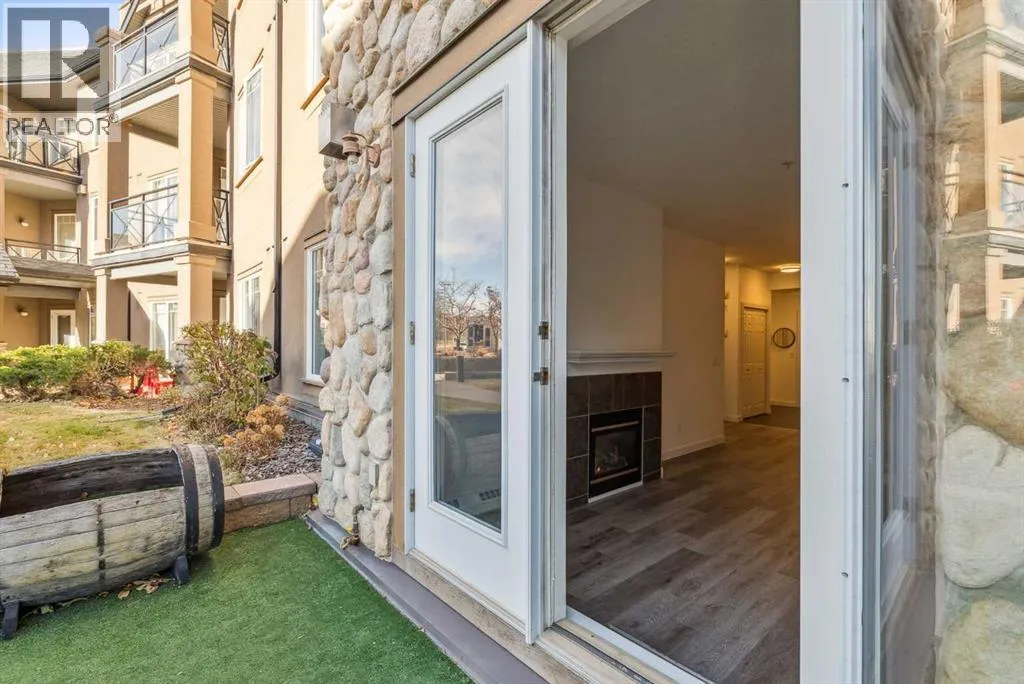 OPEN HOUSE - Sunday, Nov 16 from 100PM to 300PM. Discover a great blend of comfort, style, and convenience in this highly desirable SW location. Step into a home that offers a bright, open-concept layout, creating an inviting atmosphere from the moment you enter. With new paint, newer LVP flooring and pride of ownership discover how this charming 1 bedroom, 1 bathroom apartment can bring peace of mind and joy into your new lifestyle. Located in the sought-after Milestone building, you'll find everything you need just moments away. Start your mornings with coffee, meet friends for dinner at nearby restaurants, enjoy scenic walks with your favourite four legged friend, jump on your bike for a cruise to the river, or hop on the LRT, all just short walks from your door. You are greeted by well kept gardens and buildings suggesting earnest management of this condominium corporation, newly painted walls and newly carpeted hallways offer pride as you take the short walk to your main floor unit from the front door and elevator. You are greeted with a bright floor plan ready for your inspiration featuring large primary rooms. The living room is anchored with a warm gas fireplace, perfect for late fall nights as the leaves change colours outside of your garden doors. The primary bedroom is generous with a ceiling fan and large walk-in closet. Your clothes neatly aligned for you to take on your day ahead. The four piece bath offers additional storage and room for your necessities. Lastly, you have a large laundry area. This unit includes a titled parking stall and storage locker. A perfect blend of location, warmth and functionality. Book your tour today. (id:27476)