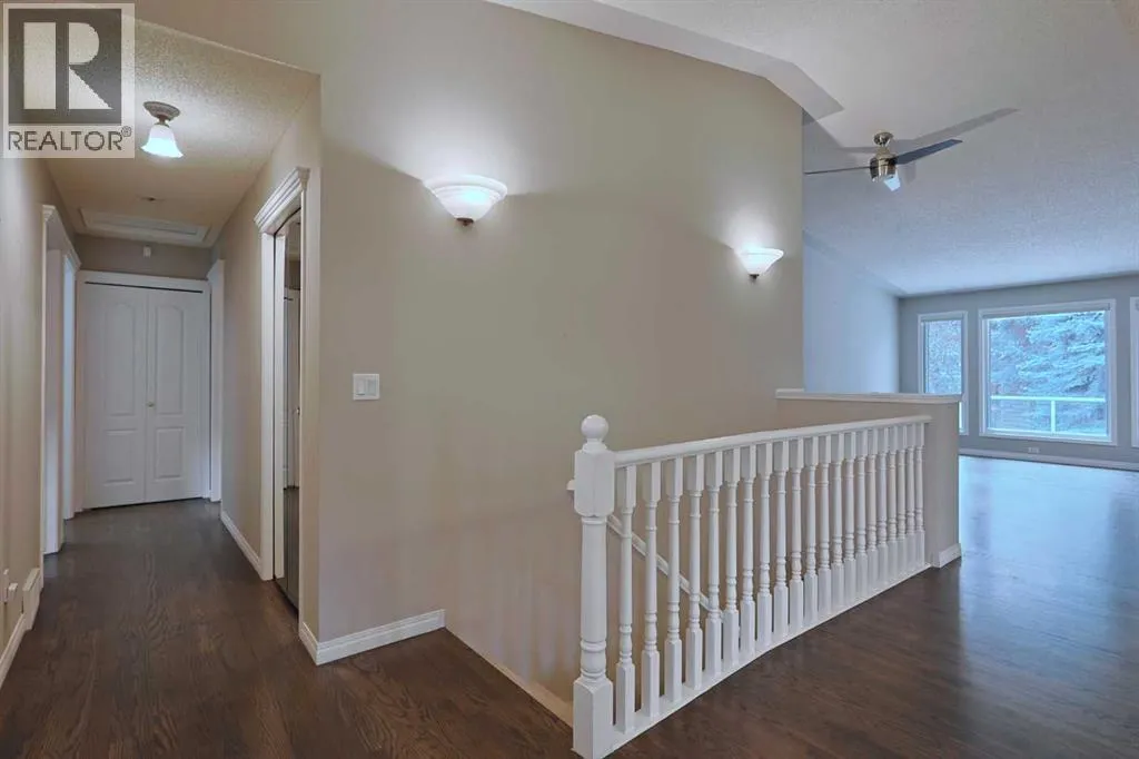 Tucked away in the exclusive SILVER SPRINGS VILLAS project is where youâll find your next homeâ¦this beautifully updated bungalow in this collection of 32 lovely homes in the highly-desirable established community of Silver Springs. Walking distance to Silvercreek Park & just minutes to neighbourhood shopping, this fully finished villa enjoys central air & hardwood floors, 3 bedrooms + den, quartz countertops & is available for quick possession. You will love the bright & expansive feel of the main floor with its soaring vaulted ceilings, wonderful living room with wall-to-wall windows, formal dining room with alcove for your china cabinet & dining nook with bay window & French door to the big backyard deck. The galley-style kitchen has been beautifully updated & features quartz counters & subway tile backsplash, loads of cabinet space & stainless steel appliances. Main floor has 2 bedrooms including the primary bedroom with vaulted ceilings, large walk-in closet & ensuite with skylight & vaulted ceilings, quartz counters & tile floors, soaker tub & separate shower. The lower level is finished with a big rec room with stone-facing gas fireplace, huge 3rd bedroom with walk-in closet, another full bathroom & an office/library/exercise room with built-in shelving. Main floor laundry with built-in cabinets & side-by-side Kenmore washer & dryer. Dedicated main floor home office with wainscotting & French door. Lower level also has 2 great storage rooms/workshop with built-in shelves. New hot water tank in 2020 & roof shingles in 2019. Nearby Silvercreek Park connects to the Bow River Pathway system - which leads to Bowmont Park & its 164 hectares of winding trails, sports fields, picnic sites & off-leash area overlooking the Bow River. And to top it off...you won't need your lawn mower or snow shovel because mowing the lawn & shoveling the snow is taken care of for you with the monthly maintenance fees. Neighbourhood shopping & schools are all within easy reach, & with t he convenience of its prime location close to Nose Hill Drive, Crowchild & Stoney Trails means you are only minutes to popular Crowchild Twin Arenas, Crowfoot Centre & LRT, major retail centers, University of Calgary, hospitals & downtown. (id:27476)
