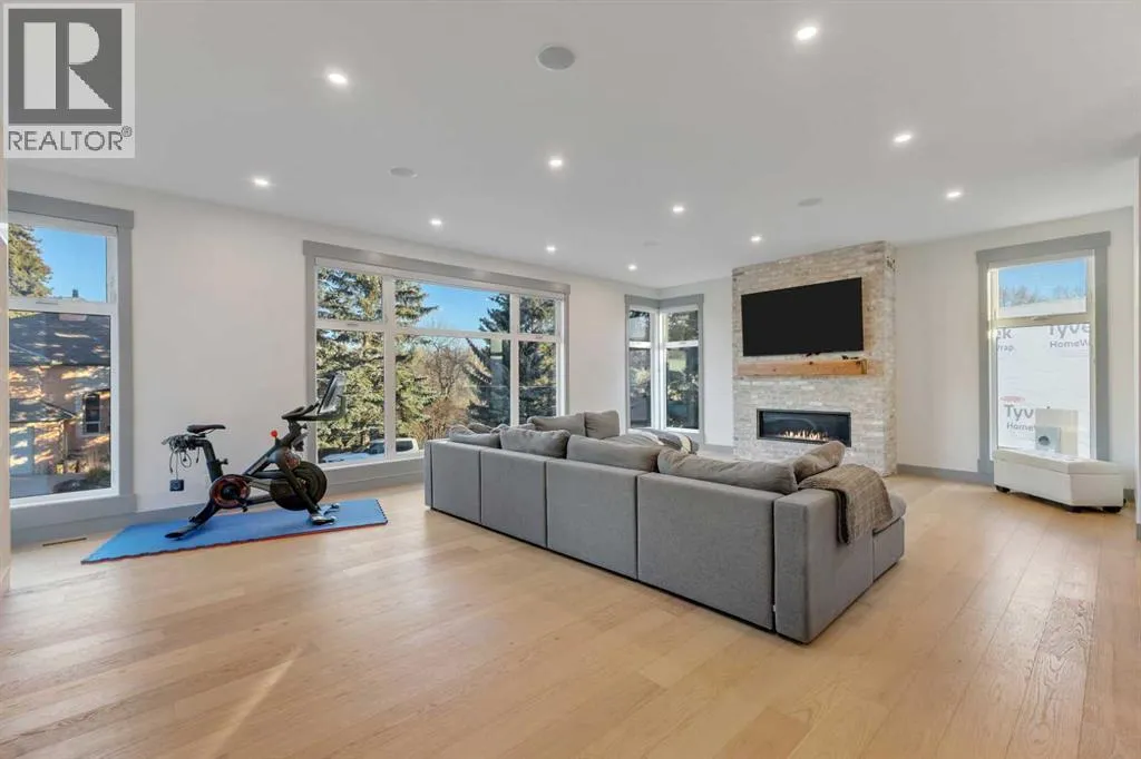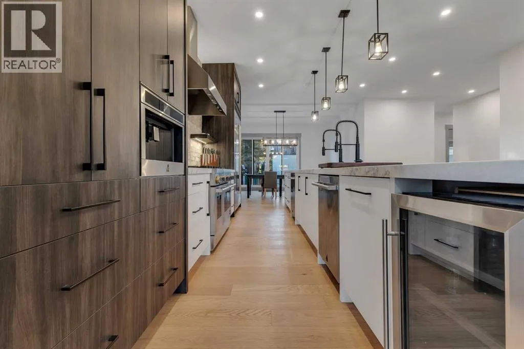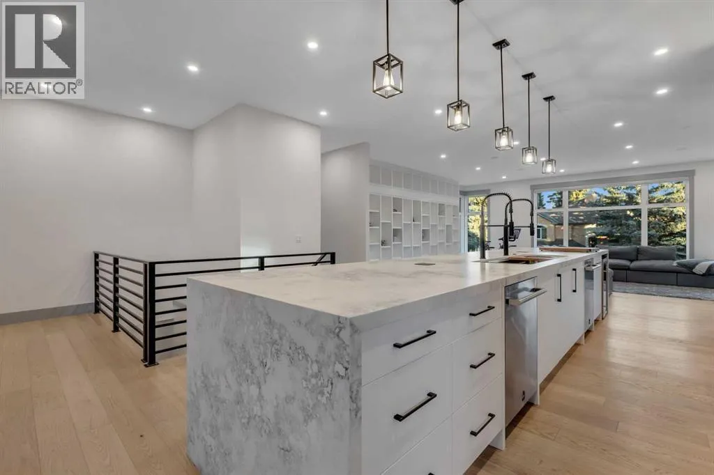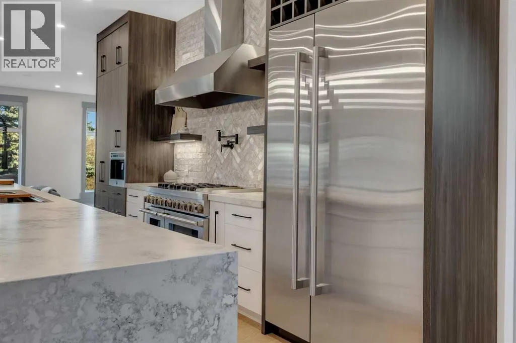 OPEN HOUSE SUNDAY ! (NOV 16 12PM-3PM) Welcome to your dream home in the heart of Rosemont, a stunning front drive-under bungalow located directly across from Confederation Park. This newly built, custom-designed residence combines modern luxury, thoughtful craftsmanship, and the best of Calgaryâs inner-city lifestyle. Enjoy breathtaking park views from your front windows, stroll across the street to the walking paths, or relax in your own private backyard retreat featuring a sports court for pickleball or basketball and professional landscaping. With parkland in front and recreation in back, this home offers an unmatched blend of serenity, space, and sophistication.Step inside and youâll immediately feel the quality. The grand foyer opens to a bright, open floor plan with 10-foot ceilings, expansive windows, and rich hardwood floors flowing throughout. Natural light fills every space, creating an airy and inviting atmosphere. The spacious living room is a statement of design, complete with a custom library wall and incredible park views, perfect for both relaxation and entertaining.At the heart of the home is the chef-inspired kitchen, showcasing a spectacular 18-foot island, JennAir appliances, a massive walk-in butlerâs pantry, duel kitchen sink faucets and a handcrafted stone backsplash that adds warmth and character. Whether youâre preparing family meals or hosting friends, this kitchen is designed to impress. The dining area opens through large glass doors to a sun-filled deck, the perfect spot for morning coffee, outdoor dinners, or quiet evenings overlooking the park.The main level offers three spacious bedrooms, each designed for comfort and privacy. The primary suite is a true retreat, featuring a walk-in closet and a spa-inspired ensuite with a freestanding tub, oversized glass shower, and double vanity. Two additional full bathrooms and a powder room provide comfort and convenience for guests and family alike. The main floor also includes a large, b eautifully designed laundry area with custom cabinetry and plenty of workspace to make daily living effortless.Downstairs, the fully finished lower level continues the homeâs thoughtful design with a spacious recreation area, and direct access to the oversized drive-under garage. Youâll also find a large additional bedroom with a generous closet, perfect for guests, teens, or extended family. Set on a quiet, tree-lined street, this home offers the perfect balance of nature and city living. Youâre just minutes from downtown, SAIT, the University of Calgary, shopping, schools, and transit, all while enjoying peaceful park-front living in one of Calgaryâs most desirable neighbourhoods.This is more than a home; itâs a lifestyle. Experience luxury, comfort, and timeless design across from Confederation Park in the heart of Rosemont. (id:27476)