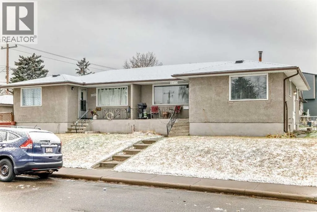 DEVELOPER ALERT/ H-GO Zoning. Corner lot. City allows up to 8 living units on this parcel. Building has been well maintained and generates income, while you wait for permits. Both sides have hardwood flooring in living and dining rooms, 6805 has a 4 piece and 3 piece bath down and a partially finished basement and use of the the detached garage, 6803 has a four piece bath up and an unfinished basement, Both sides have two bedrooms up and are large and have had long term tenants, This area is close to LRT, Chinook Mall and is rapidly being developed with higher density housing. (id:27476)