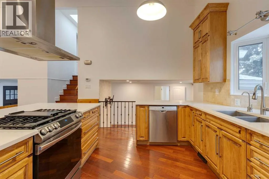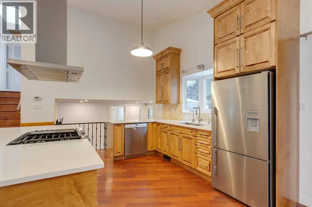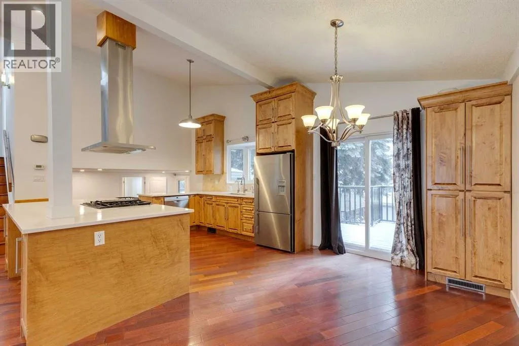 Welcome to this stunning detached home nestled in the family-friendly neighborhood of Charleswood, where mature trees and excellent amenities create a welcoming atmosphere. Boasting over 2,400 sqft of developed living space, this residence sits on an extra-large lot with a perfect slope for future walkout development, making it an ideal investment opportunity. As you enter, you're greeted by a spacious foyer and beautiful stairs leading to the main level. The main floor features HARWOOD FLOORING throughout, creating a warm and inviting ambiance. The bright living area showcases a VAULTED CEILING, a large kitchen with a kitchen island, and NEWER STAINLESS STEEL APPLIANCES, complemented by NEW CABINETS and QUARTZ COUNTERTOPS. The living room is enhanced by a NEWLY INSTALLED GAS FIREPLACE surrounded by a stunning stone backsplash, while the large dining area opens up to a generous deck, perfect for outdoor entertaining. Also on the main level, you'll find a cozy family room with access to the mudroom, a large office that can double as a game room for kids, and a 2-PIECE UPGRADED POWDER ROOM. Theconvenience of laundry on the main floor adds to the home's functionality. Upstairs, there are three good-sized bedrooms, including a primary suite with an UPGRADED 3-PIECE BATHROOM, alongside another upgraded bathroom. The basement offers a large recreation room, an additional bedroom, and yet another 3-PIECE UPGRADED BATHROOM. The beautifully landscaped backyard features a large deck, paved multi-level patios, and a NEWLY BUILT DOUBLE GARAGE with a spacious storage room, perfect for a workshop or extra storage. Additional highlights include a HIGH-EFFICIENCY FURNACE, a TANKLESS HOT WATER TANK, NEW WINDOWS, an upgraded ELECTRICAL PANEL, NEW AC, a newly installed IRRIGATION SYSTEM, and a NEW SKYLIGHT. The home also boasts a NEWER ROOF, vinyl siding, and stone veneer for an attractive exterior. With easy access to public transit, shops, and excellent schools, this home not only offers modern comforts and stylish upgrades but also the perfect setting for family living. Don't miss this opportunity to make it yours! (id:27476)
