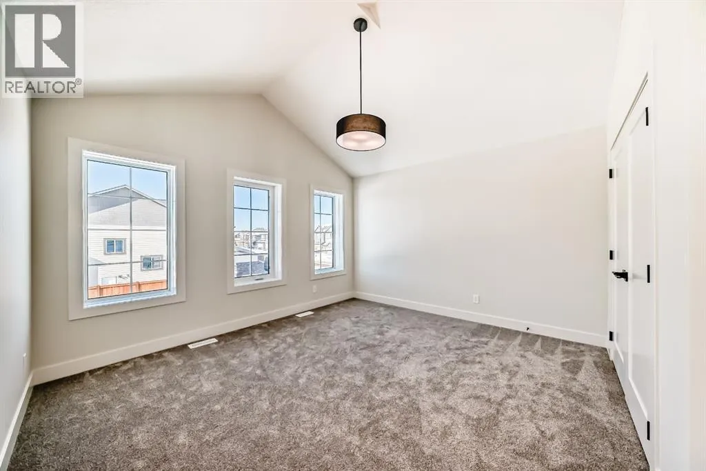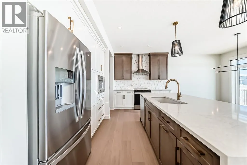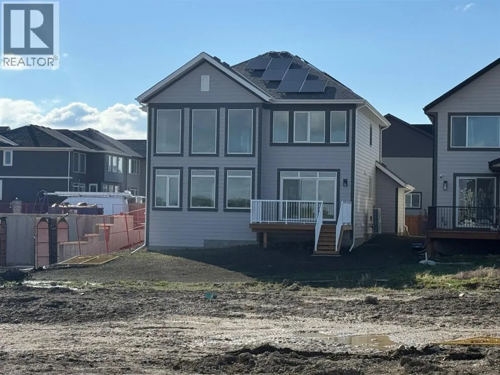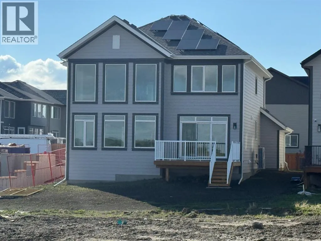 Introducing ECO-PATH by Morrison Homes, your trusted custom home builder is at the forefront of eco-friendly NET ZERO home construction. This ESTATE home is built with high performance insulation, energy efficient windows and advanced HVAC systems to minimize energy consumption. Solar panels and Energy Star appliances further reduce the carbon footprint, while low flow fixtures conserve water. Morrison Homes also prioritizes the use of sustainable, non-toxic building materials, such as recycled wood and low VOC paints, ensuring a healthier indoor environment. Incorporating Smart Home Technology, this home optimizes energy use, providing both comfort and environmental stewardship. * Efficient Electric Heat Pump for Heating & Cooling * 36 Solar Panels to Generate Electricity * R60 Attic Insulation to Reduce Energy Loss * Air Barrier to Improve Homes Energy Retention * Triple Pane Argon Filled Windows with Sunstop Coating * 80 Gallon Heat Pump Hot Water Tank * Heat Recovery Ventilator to Minimize Heat Loss * XPS Rigid Insulation Beneath Basement Foundation * Enjoy the award winning Ellsworth model featuring over 2700 square feet of perfectly planned living space. Enter the home to a sun filled, main floor den which is open to a gorgeous living space with floor to ceiling windows and a soaring 18' open to above. More natural light to be enjoyed with 3 panel sliding door to the South backyard and deck. The kitchen is a warm and inviting space with crafted cabinets, waterfall stone counter on the island and rich Champagne Bronze hardware. Flow through to the servery/beverage centre to the spacious pantry. The large mudroom with closet is a space where everyone can easily walk in from the Triple attached garage. Upstairs features beautiful open loft to soak up all the natural sunlight, a large laundry room with storage cabinets and 2 folding counters, 2 great sized bedrooms...one with a vaulted ceiling and one with a walk in closet. The primary bedroom is perfectly sized a nd comes fitted with a custom tiled shower, stand alone tub, 2 separate vanities and a sizeable walk in closet. The basement is a blank slate for future development. Live in and create your Legacy! Built on a premium lot, walk to the Pine Creek Ridge, minutes away from shopping, schools, parks and playgrounds - this community has it all. (id:27476)