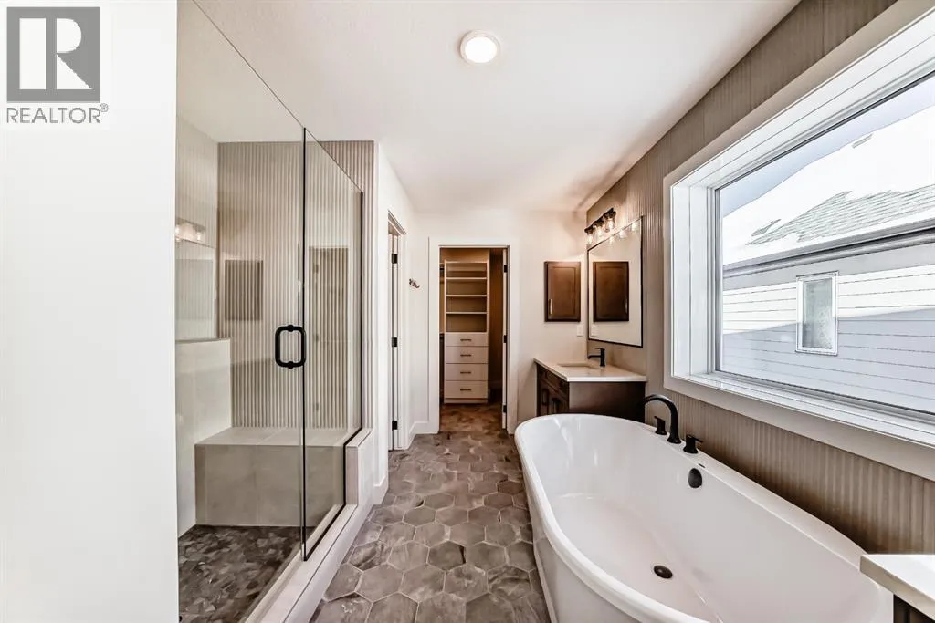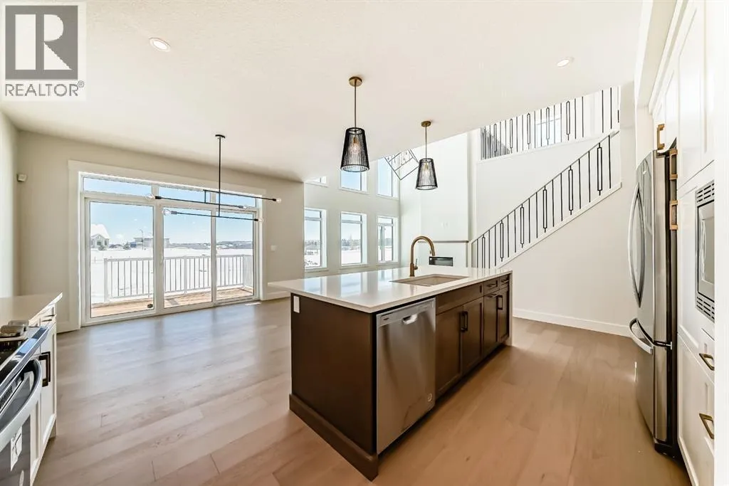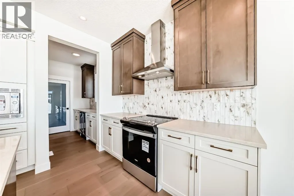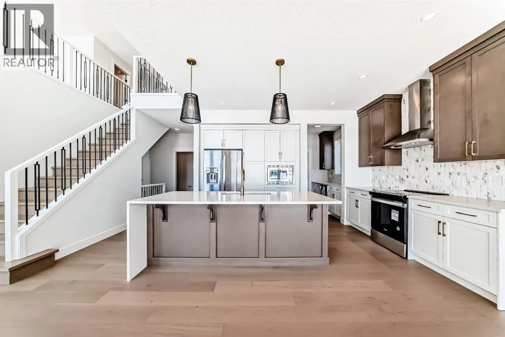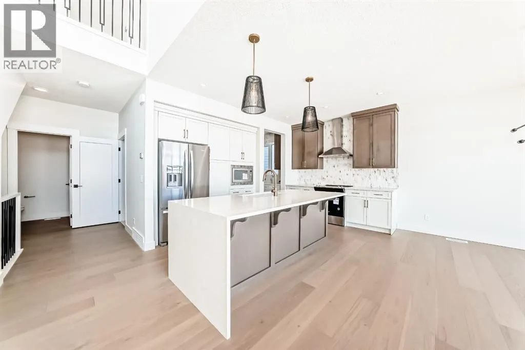 Introducing ECO-PATH by Morrison Homes, your trusted custom home builder is at the forefront of eco-friendly NET ZERO home construction. This ESTATE home is built with high performance insulation, energy efficient windows and advanced HVAC systems to minimize energy consumption. Solar panels and Energy Star appliances further reduce the carbon footprint, while low flow fixtures conserve water. Morrison Homes also prioritizes the use of sustainable, non-toxic building materials, such as recycled wood and low VOC paints, ensuring a healthier indoor environment. Incorporating Smart Home Technology, this home optimizes energy use, providing both comfort and environmental stewardship. * Efficient Electric Heat Pump for Heating & Cooling * 36 Solar Panels to Generate Electricity * R60 Attic Insulation to Reduce Energy Loss * Air Barrier to Improve Homes Energy Retention * Triple Pane Argon Filled Windows with Sunstop Coating * 80 Gallon Heat Pump Hot Water Tank * Heat Recovery Ventilator to Minimize Heat Loss * XPS Rigid Insulation Beneath Basement Foundation * Enjoy the award winning Ellsworth model featuring over 2700 square feet of perfectly planned living space. Enter the home to a sun filled, main floor den which is open to a gorgeous living space with floor to ceiling windows and a soaring 18' open to above. More natural light to be enjoyed with 3 panel sliding door to the South backyard and deck. The kitchen is a warm and inviting space with crafted cabinets, waterfall stone counter on the island and rich Champagne Bronze hardware. Flow through to the servery/beverage centre to the spacious pantry. The large mudroom with closet is a space where everyone can easily walk in from the Triple attached garage. Upstairs features beautiful open loft to soak up all the natural sunlight, a large laundry room with storage cabinets and 2 folding counters, 2 great sized bedrooms...one with a vaulted ceiling and one with a walk in closet. The primary bedroom is perfectly sized a nd comes fitted with a custom tiled shower, stand alone tub, 2 separate vanities and a sizeable walk in closet. The basement is a blank slate for future development. Live in and create your Legacy! Built on a premium lot, walk to the Pine Creek Ridge, minutes away from shopping, schools, parks and playgrounds - this community has it all. (id:27476)