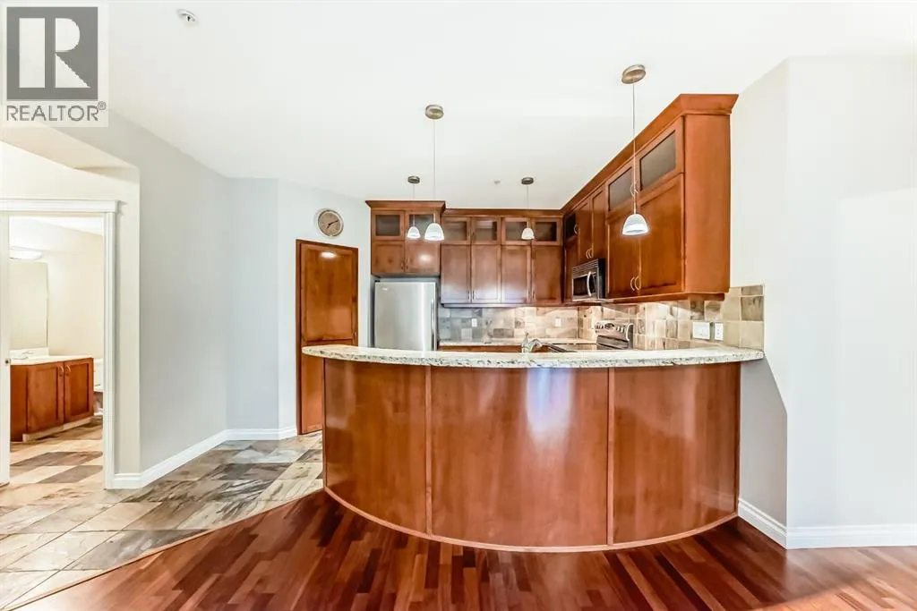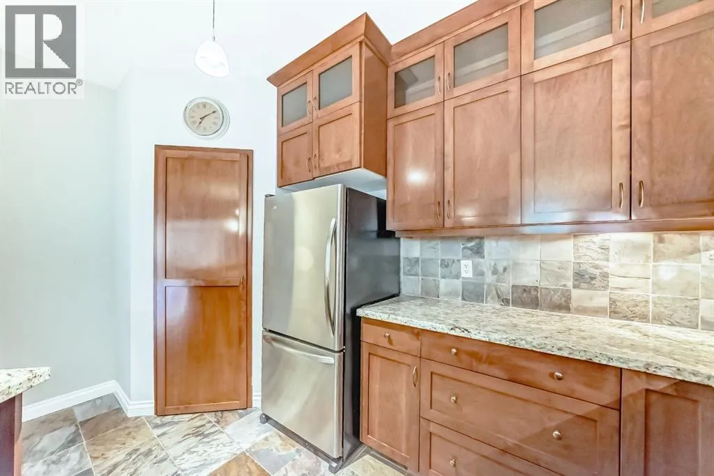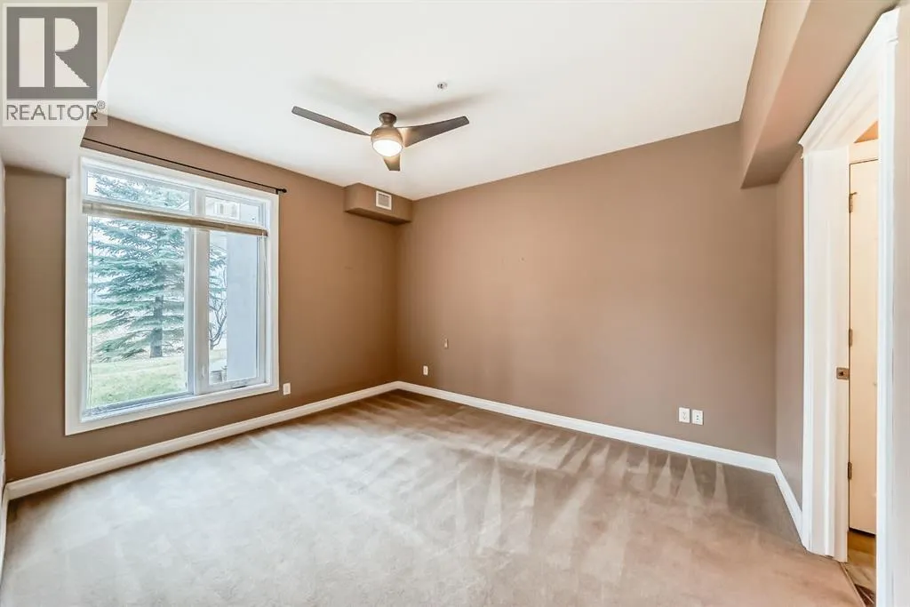 Main floor condo featuring two spacious primary suites! This ground-level unit offers exceptional accessibility with direct access from your private covered patio to the greenspace behind the building. Each primary bedroom includes its own luxurious 5-piece ensuite with a soaker tub and double sinks, making it ideal for guests or shared living. The open-concept kitchen features granite countertops, slate flooring, a breakfast bar, pantry, and stainless steel appliances, flowing seamlessly into the dining and living areas. A versatile flex room provides space for an office, den, or extra storage, while the laundry area is conveniently tucked into the powder room. Two titled underground heated parking stalls and an additional storage unit are included. Residents also enjoy access to fantastic amenities including a fitness center, car wash bay, guest suite, and clubhouse. With Shaganappi Golf Course, the LRT, and Westbrook Shopping Centre just minutes away, this home offers the perfect mix of comfort, convenience, and maintenance-free living. (id:27476)