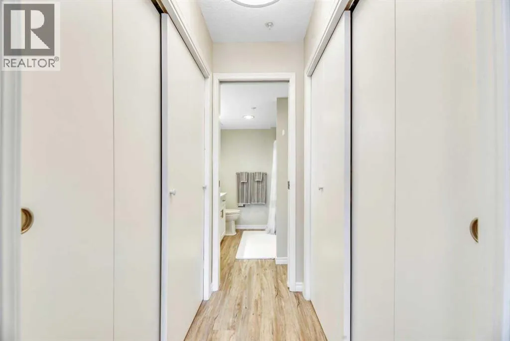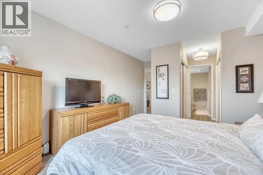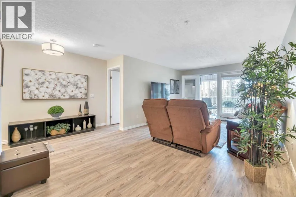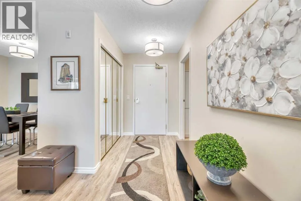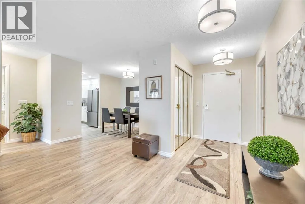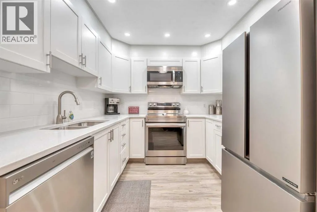 Welcome to The Sierrasâa highly regarded adult living community perfectly positioned just steps from shops, restaurants, and everyday amenities in the heart of Signal Hill. This fully renovated two-bedroom, two-bathroom suite shines from top to bottom and is priced to sell, offering exceptional value for those seeking style, comfort, and convenience. Available for immediate possession, with furniture negotiable for anyone looking for a turnkey move-in!Step inside and youâll immediately notice the thoughtful updates throughout: newer luxury vinyl plank flooring, fresh paint, stylish lighting, quartz countertops, updated hardware, a chic backsplash, and a full suite of stainless-steel appliances. The primary bedroom features dual closets leading to a beautifully upgraded ensuite with quartz counters, new fixtures, and a modern tub/shower combo. The second bedroom sits next to the equally refreshed main bathâperfect for guests or a hobby space.Enjoy year-round comfort with air conditioning, in-suite laundry (complete with extra cabinetry), and an enclosed, sunroom-style balcony that captures lovely mountain views.Residents of The Sierras enjoy resort-style amenities, including a library, coffee lounge, fitness room, games room, craft and woodworking spaces, four guest suites, a vehicle wash bay, and the impressive Presidentâs Roomâideal for hosting gatherings with its own kitchenette, fireplace, bathrooms, and balcony with barbecue.Your titled underground parking stall comes with a storage locker conveniently located at the back of the space. Condo fees include nearly everythingâelectricity, heat, water, sewer, recycling, garbage, building insurance, landscaping, snow removal, amenity upkeep, reserve fund contributions, and professional managementâso you can truly lock and leave with confidence.This stunning home has been completely refreshed and is ready when you are. Donât miss outâschedule your showing today! (id:27476)