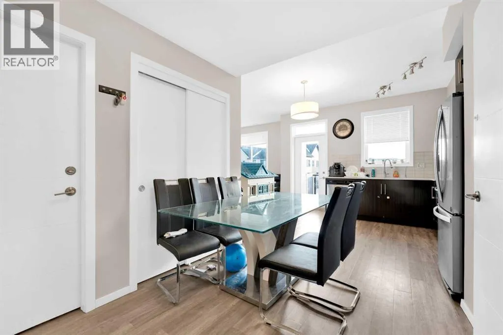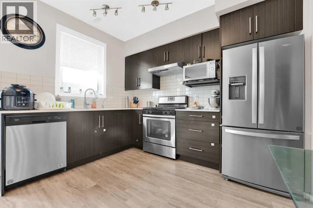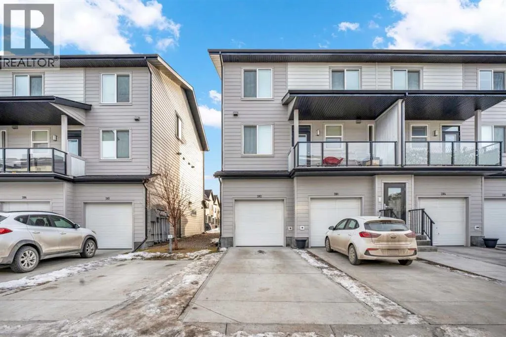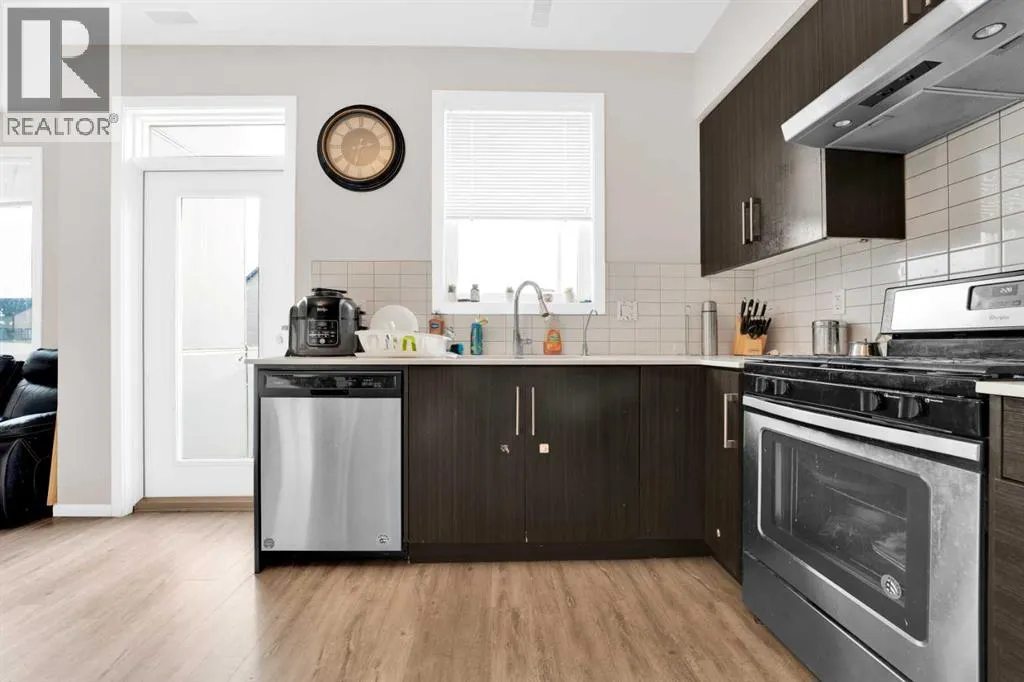 Welcome Home to #202, 135 Redstone Walk, Calgary. Imagine stepping into a home where modern elegance meets unparalleled comfort. Nestled in the vibrant community of Redstone, this stunning end unit, built in 2018, is one of the last to be completed in the complex, offering exclusivity and a fresh start in a lightly lived in home. As you enter, you're greeted by an open-concept main floor that radiates warmth and sophistication. The kitchen, a chefâs delight, is bright and airy with ample cupboard space, stainless steel appliances, and modern finishes. Espresso cabinetry paired with a pristine subway tile backsplash and polished quartz countertops create a space that is both functional and beautiful. Picture yourself preparing a gourmet meal in this stylish setting, with every detail designed for both convenience and aesthetics. The kitchen flows seamlessly into the inviting living area, perfect for cozying up with a movie after a delightful dinner. The natural light pouring in through the large windows enhances the sense of space and comfort, making every moment spent here feel special. Venture upstairs to find 3 spacious bedrooms, one 4-piece washroom and laundry. The property also features a large, double attached tandem garage, providing ample space for your vehicles and storage needs, ensuring everything has its place. (id:27476)